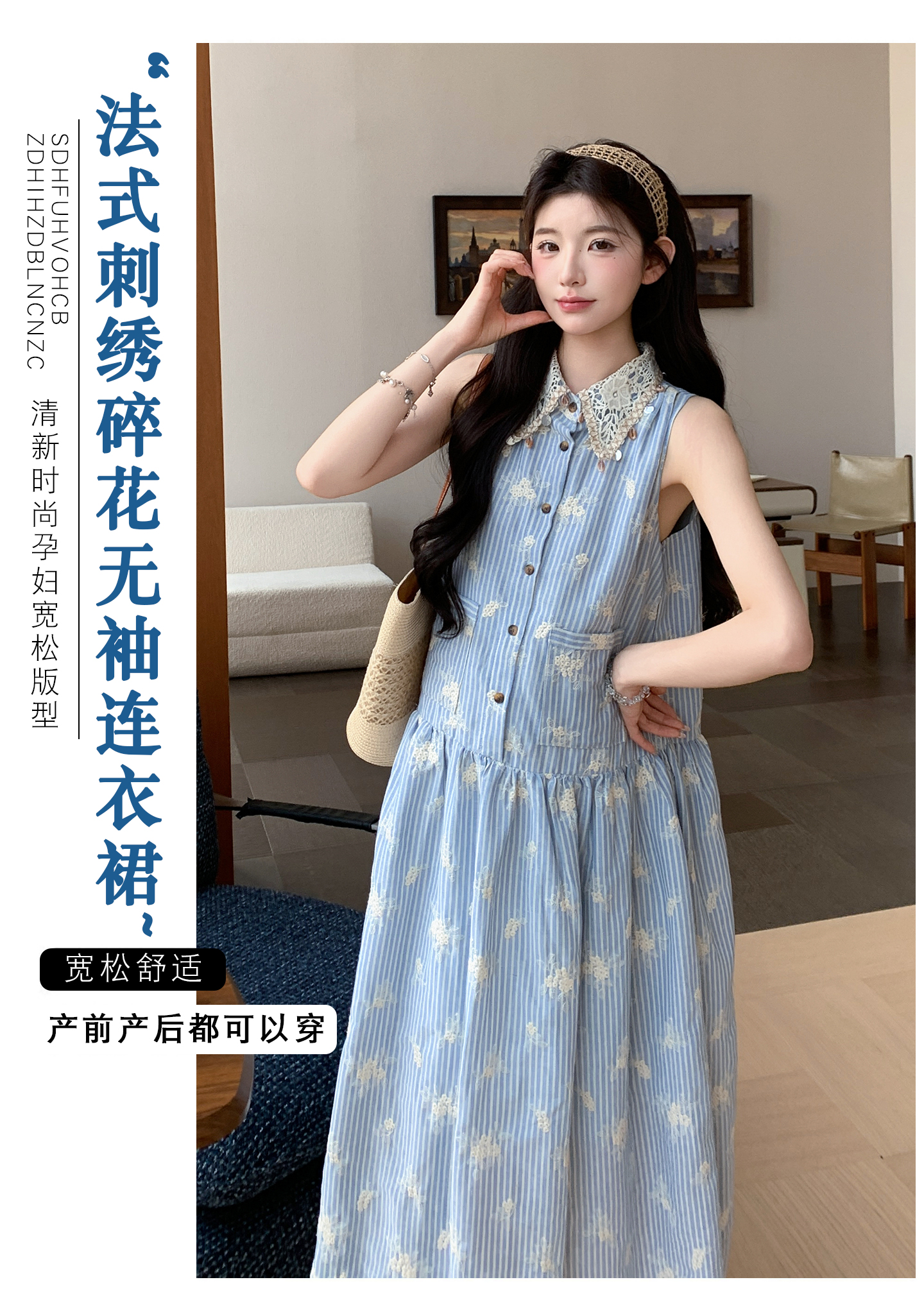 지금 임산부 여름 드레스 드레스 외국 가스 착용 가져 가라. 품격 확실하지 않음 임신 한 자수 연령 감소 꽃밭 조끼 스커트