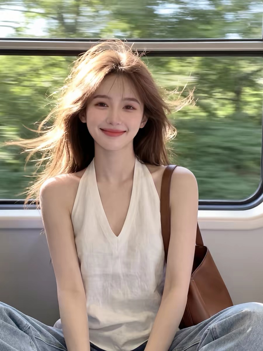 태국 아름다운 민소매 작은 슬링 조끼 여성 여름 튀김 거리 고유 한 아름다운 외출용 화이트 행침 목 아름다움 뒤쪽에 의류