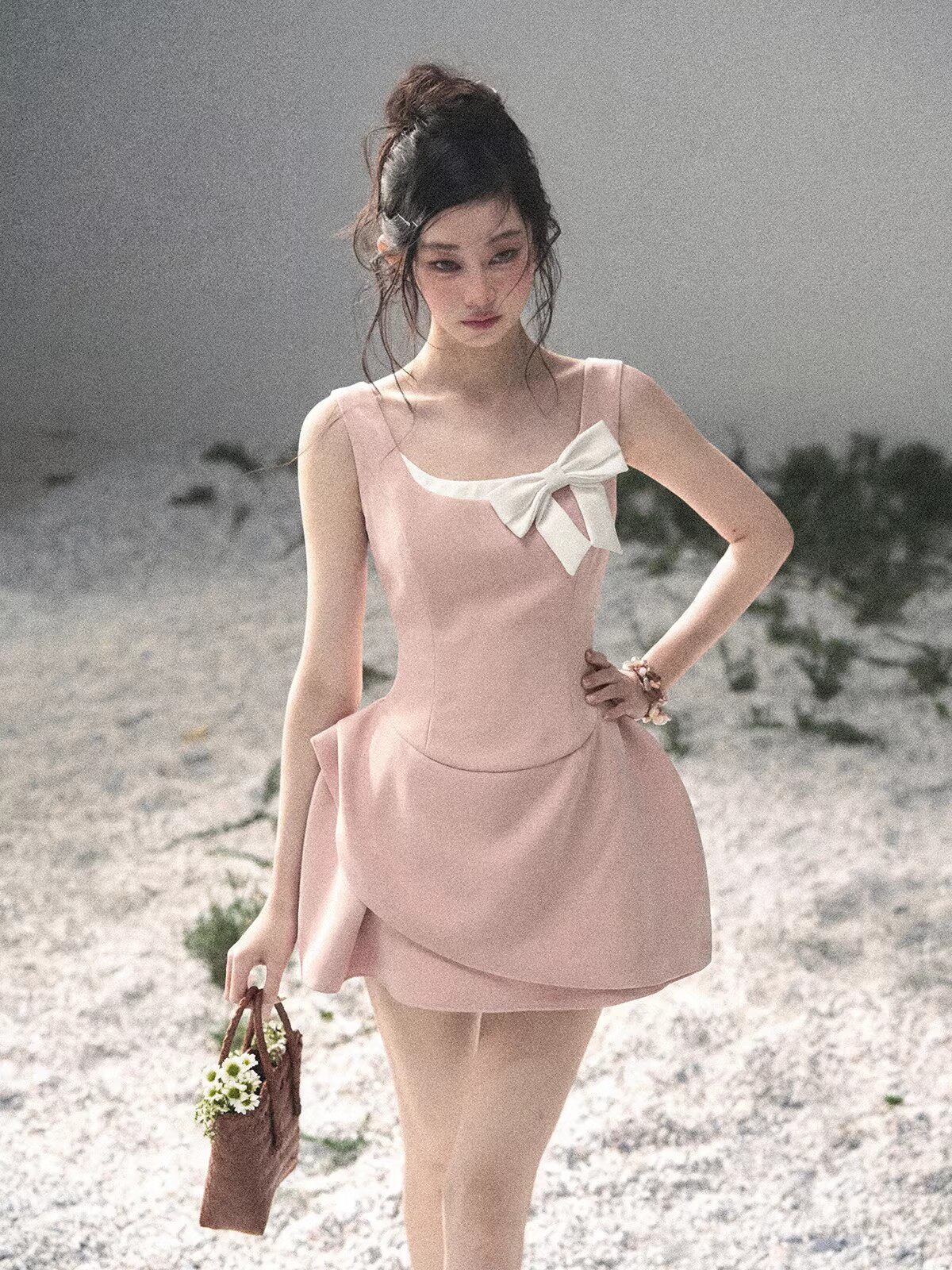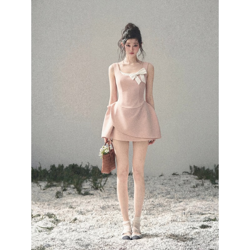 작은 키 해변가 휴가 슬립 여성 드레스 프랑스식 순수한 욕망 바람 달콤함 루즈핏 슬림해 보이는 민소매 조끼 미니 스커트