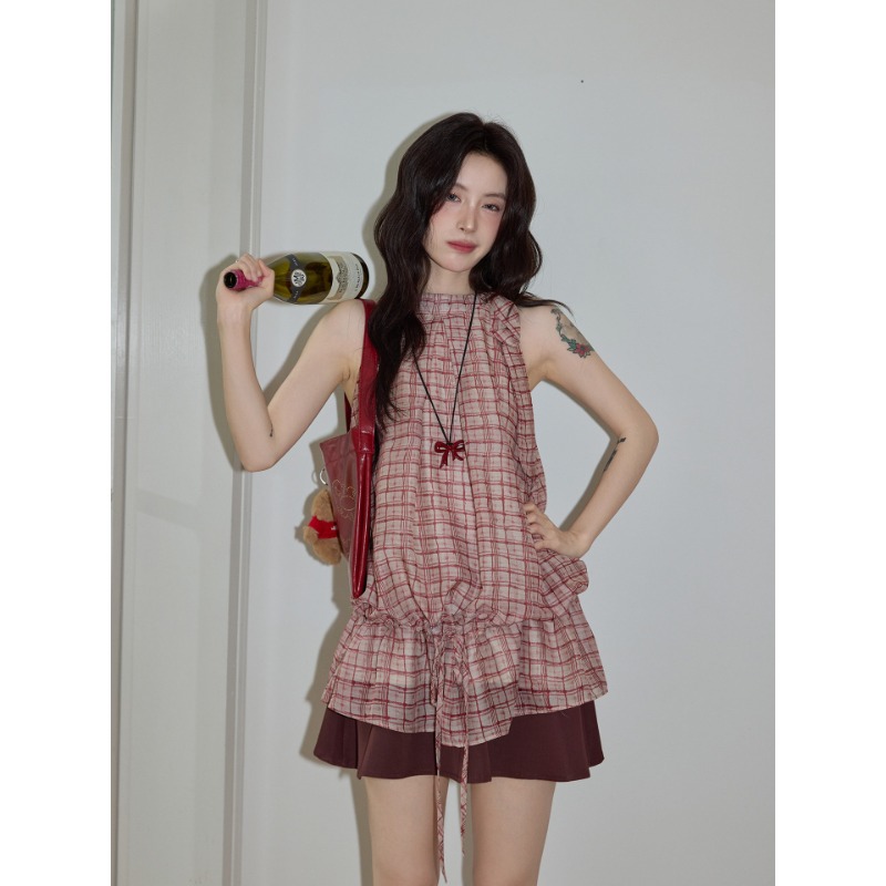 작은 키 해변가 휴가 슬립 여성 드레스 프랑스식 순수한 욕망 바람 달콤함 루즈핏 슬림해 보이는 민소매 조끼 미니 스커트