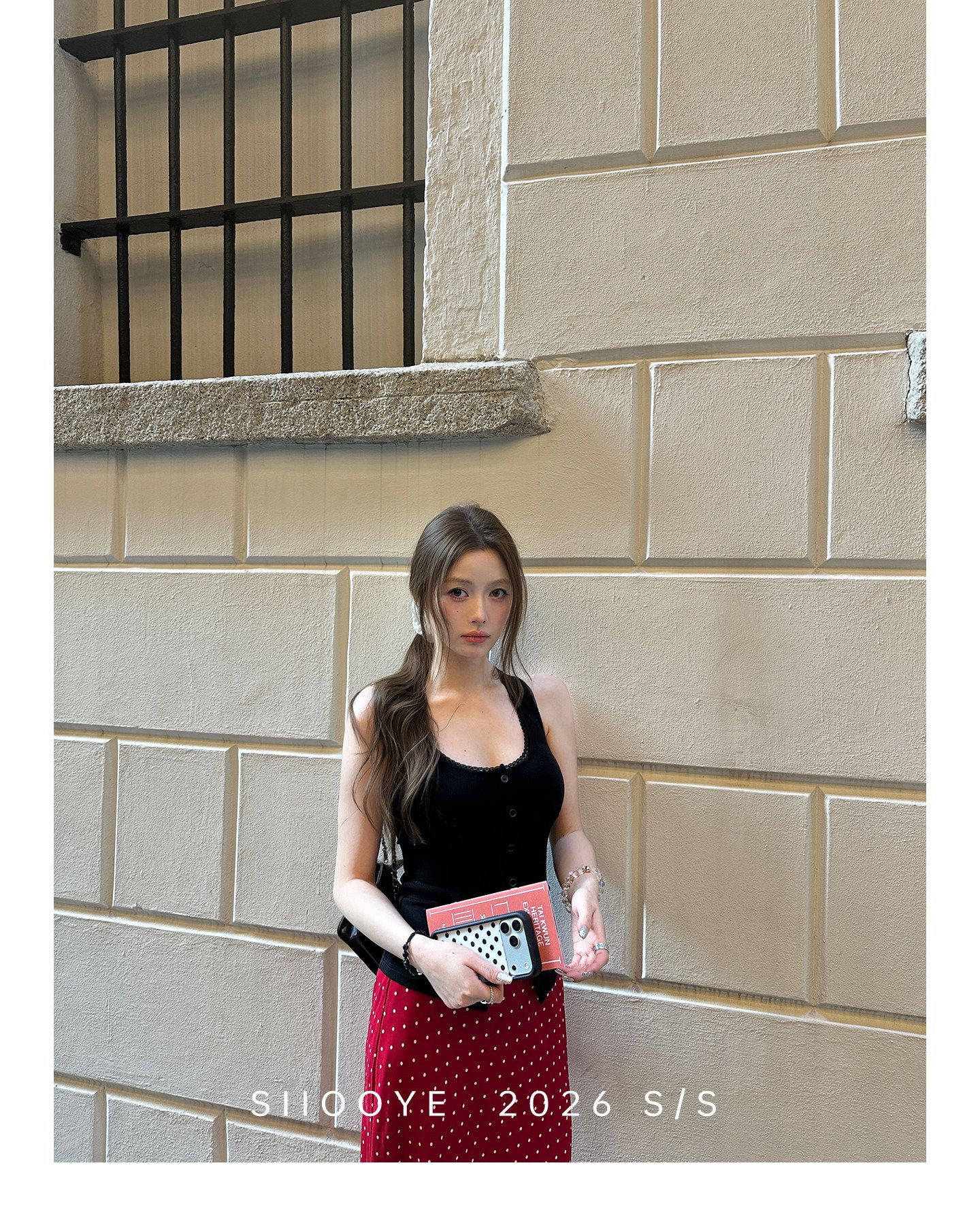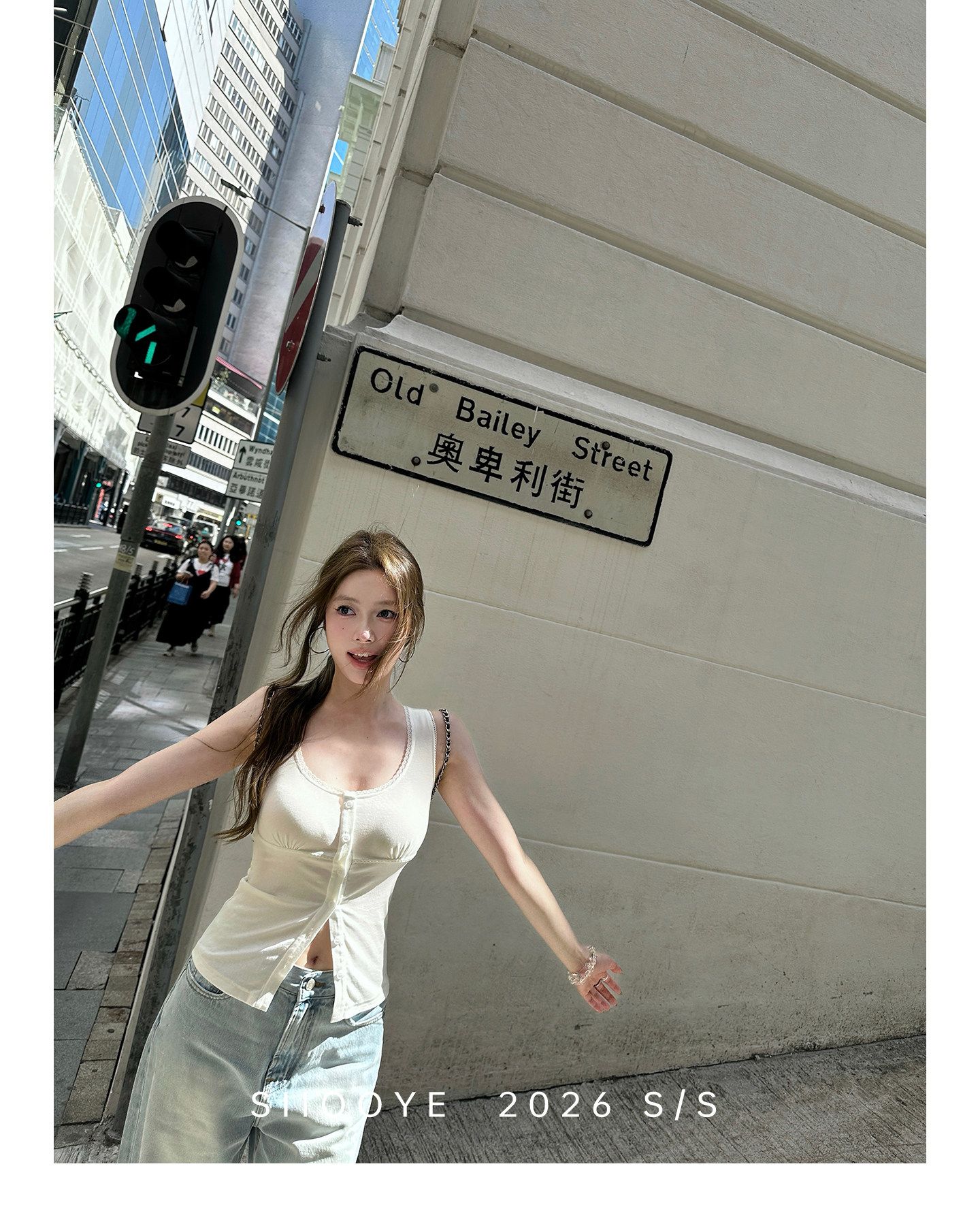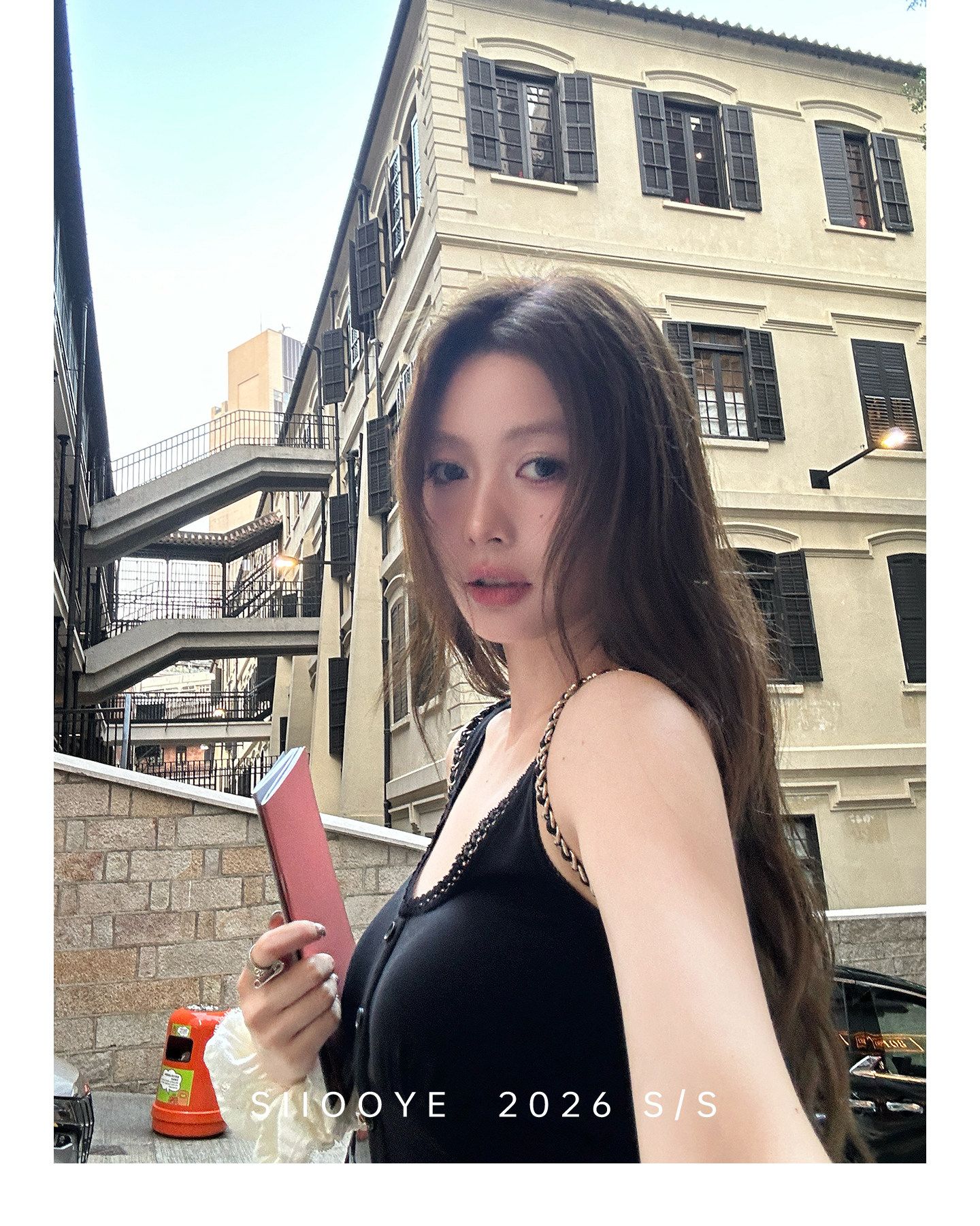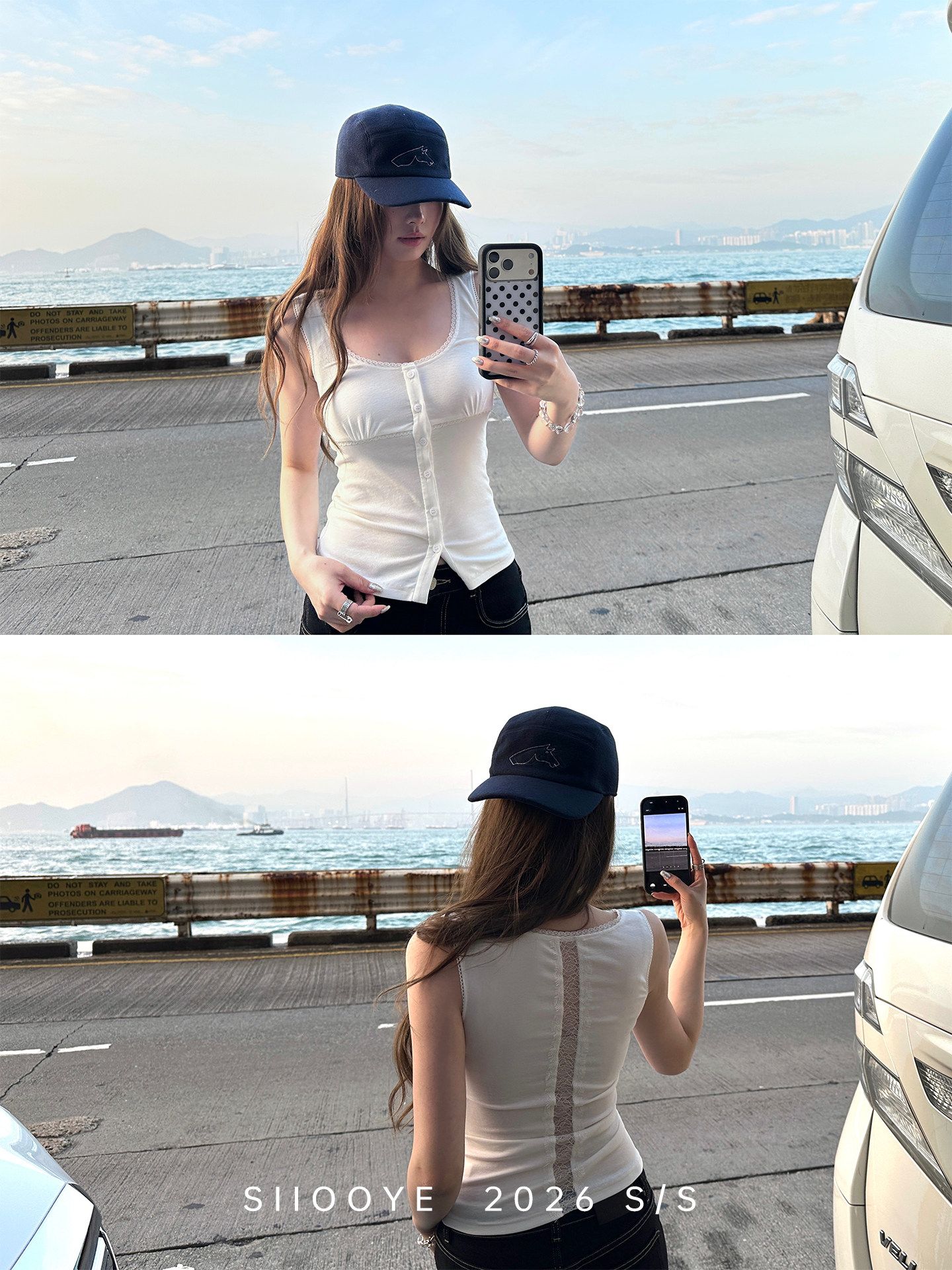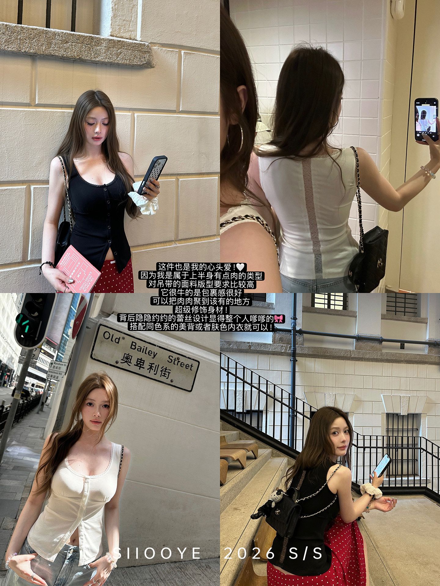 라이 경기 서울 레이스 캐미솔 여름 섹시함 u 칼라 허리 수축 백리스 디자인 센스 단추 트임 몸매 가꾸기 맨위