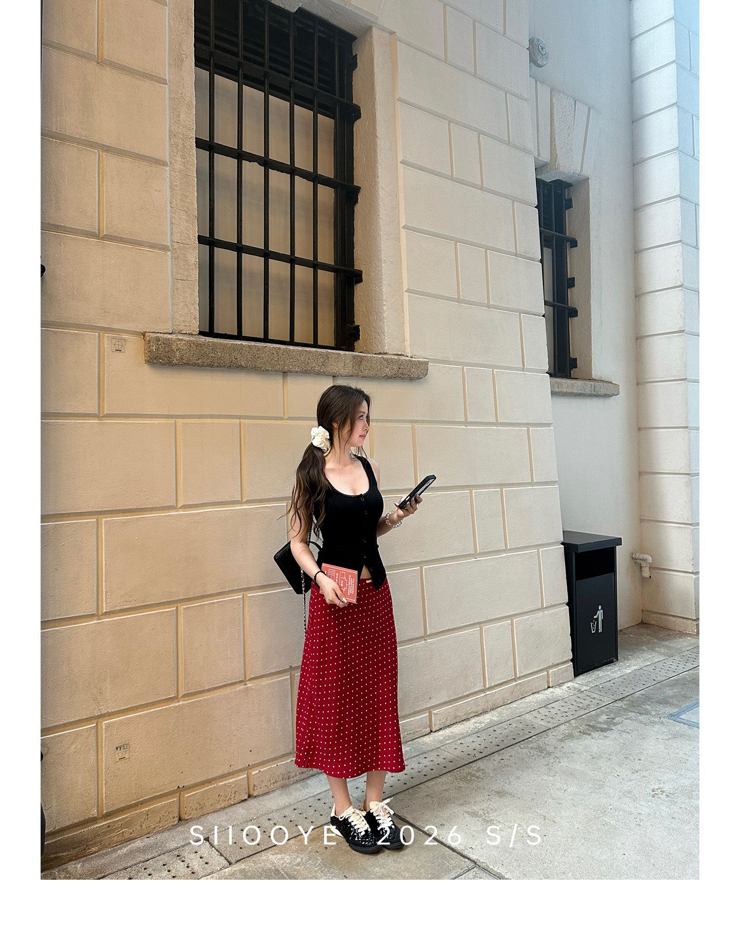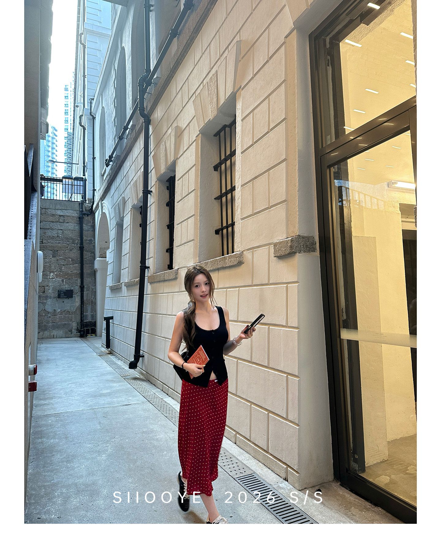 2026 검정색 티셔츠 패치워크 도트 무늬 여성 드레스 여름 한 부서 패션 품격 느슨함 센스 루즈핏 캐주얼 롱 스커트