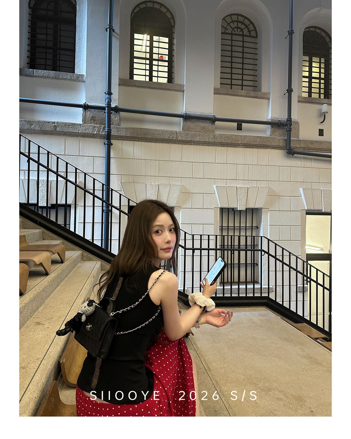 2026 여름 새로운 민소매 패치워크 진자 루즈핏 인형 여성 드레스 디자인 센스 미니멀리즘 라운드 넥 작은 검은 드레스