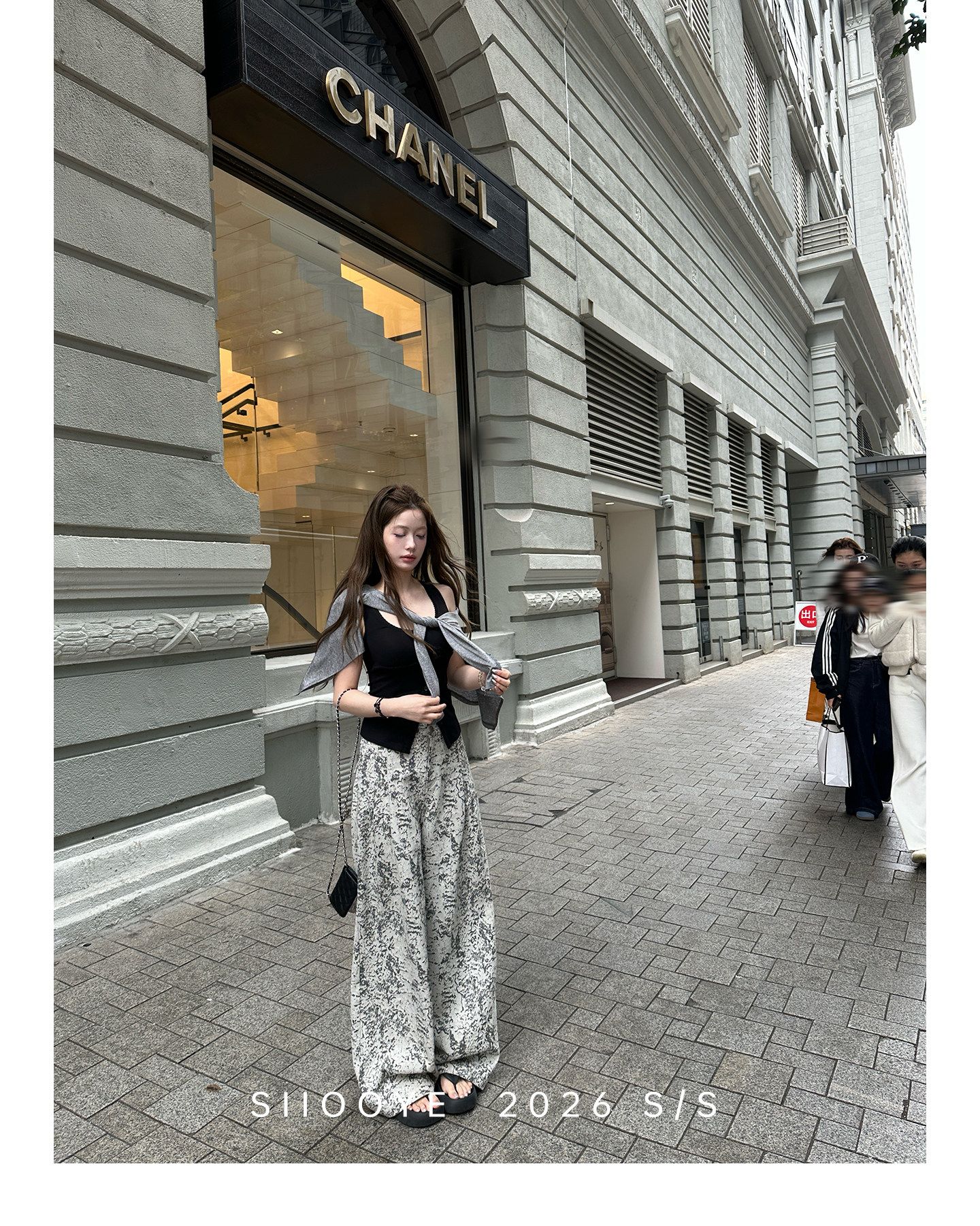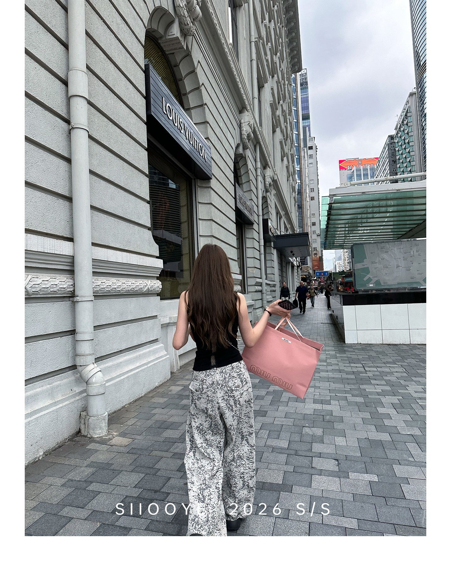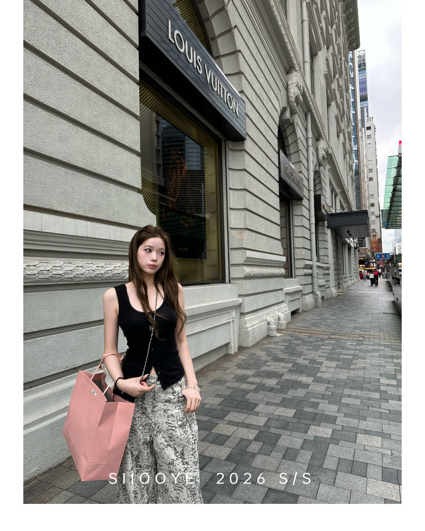 정가 재고 있음 여름 바람 몸매 가꾸기 달콤한 매운맛 쇼트 스타일 민소매 맨위 여성 하이웨이스트 슬림해 보이는 와이드 레그 팬츠 패션 세트