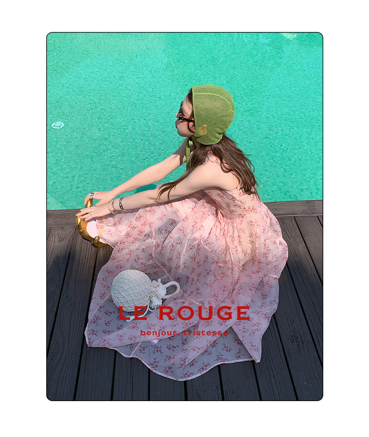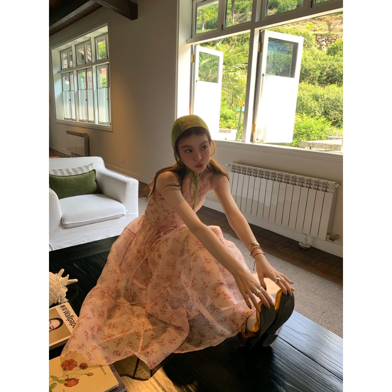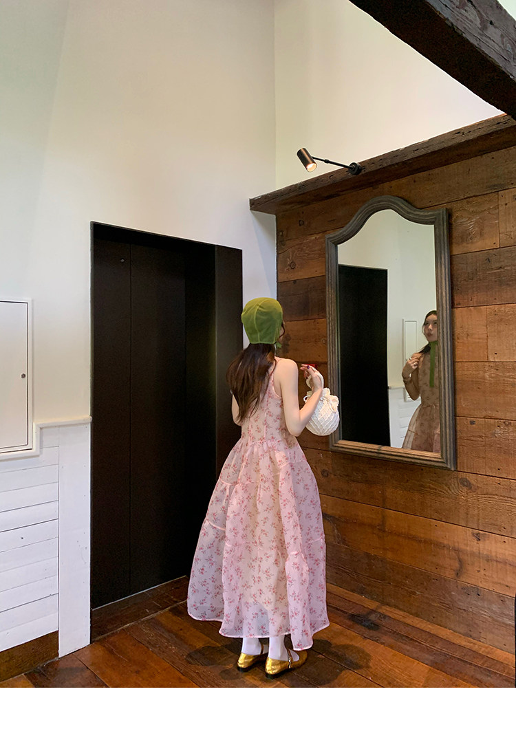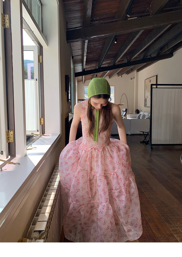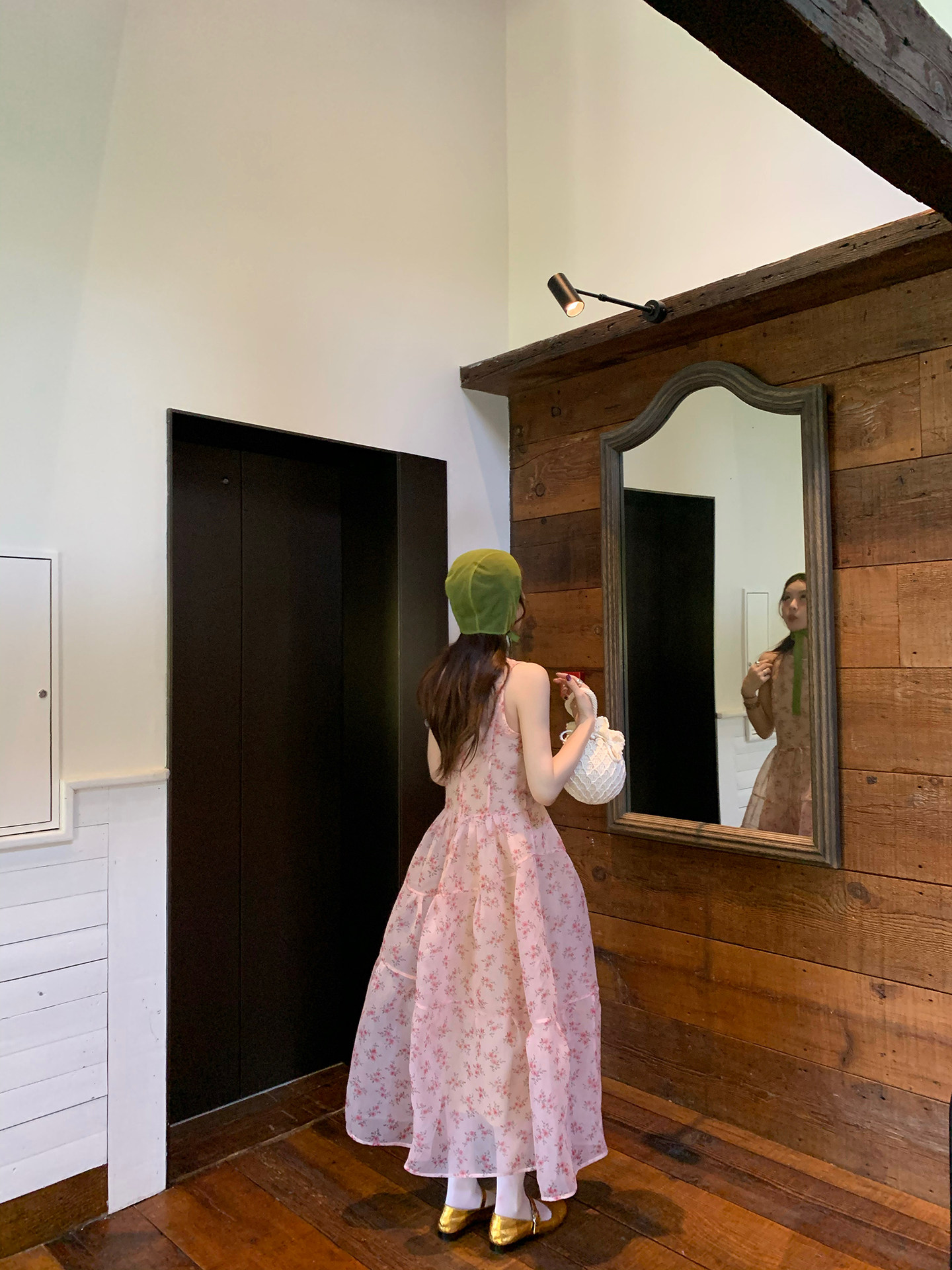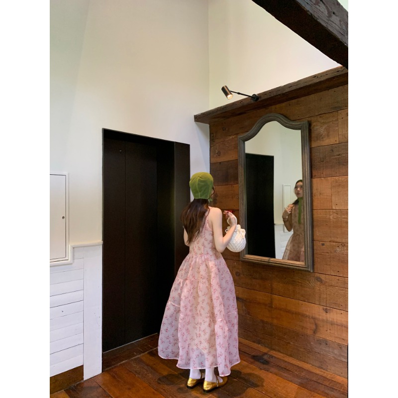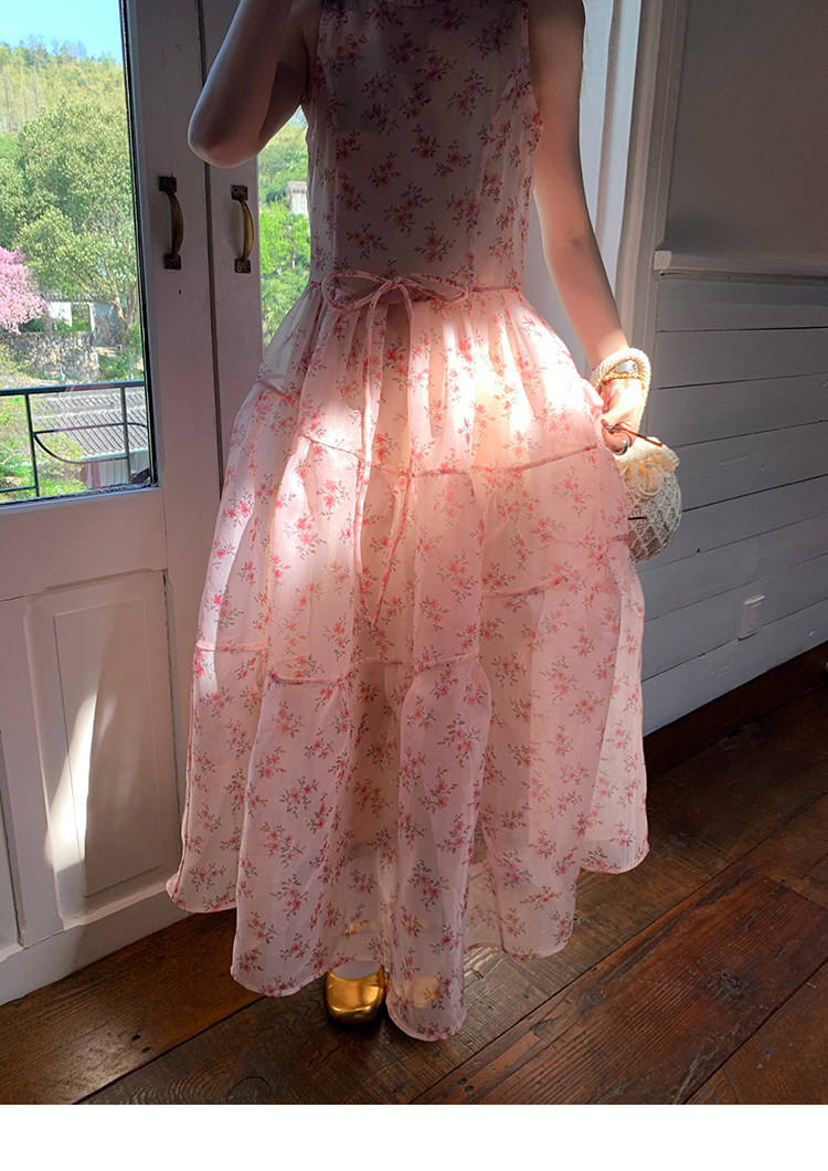 le rouge 주 아름다움 안개 실 잉 꿈 소녀 몽환 핑크색 꽃무늬 유럽 오간자 조끼 원피스