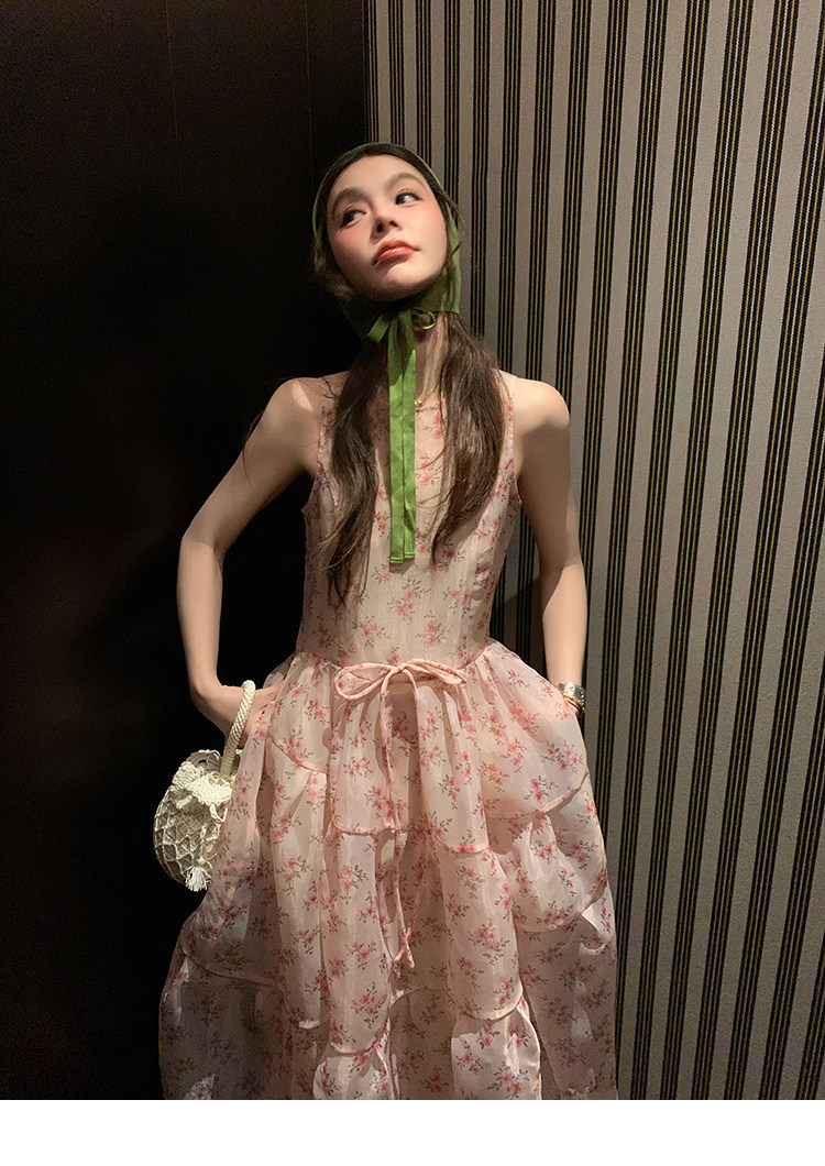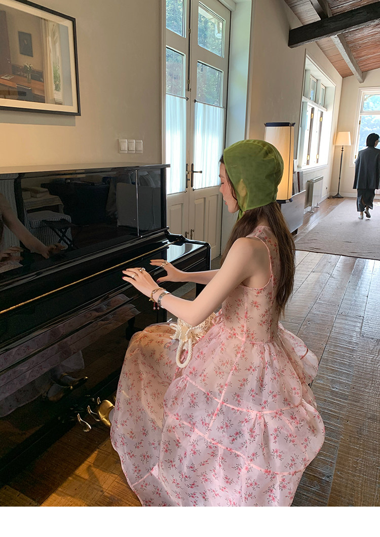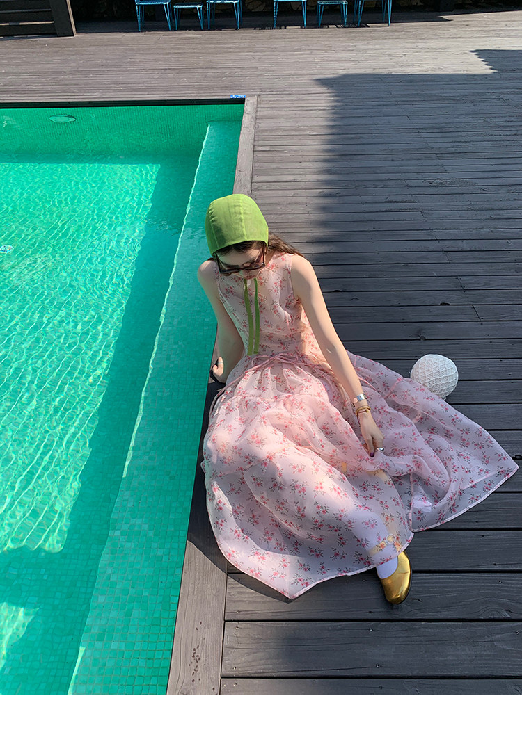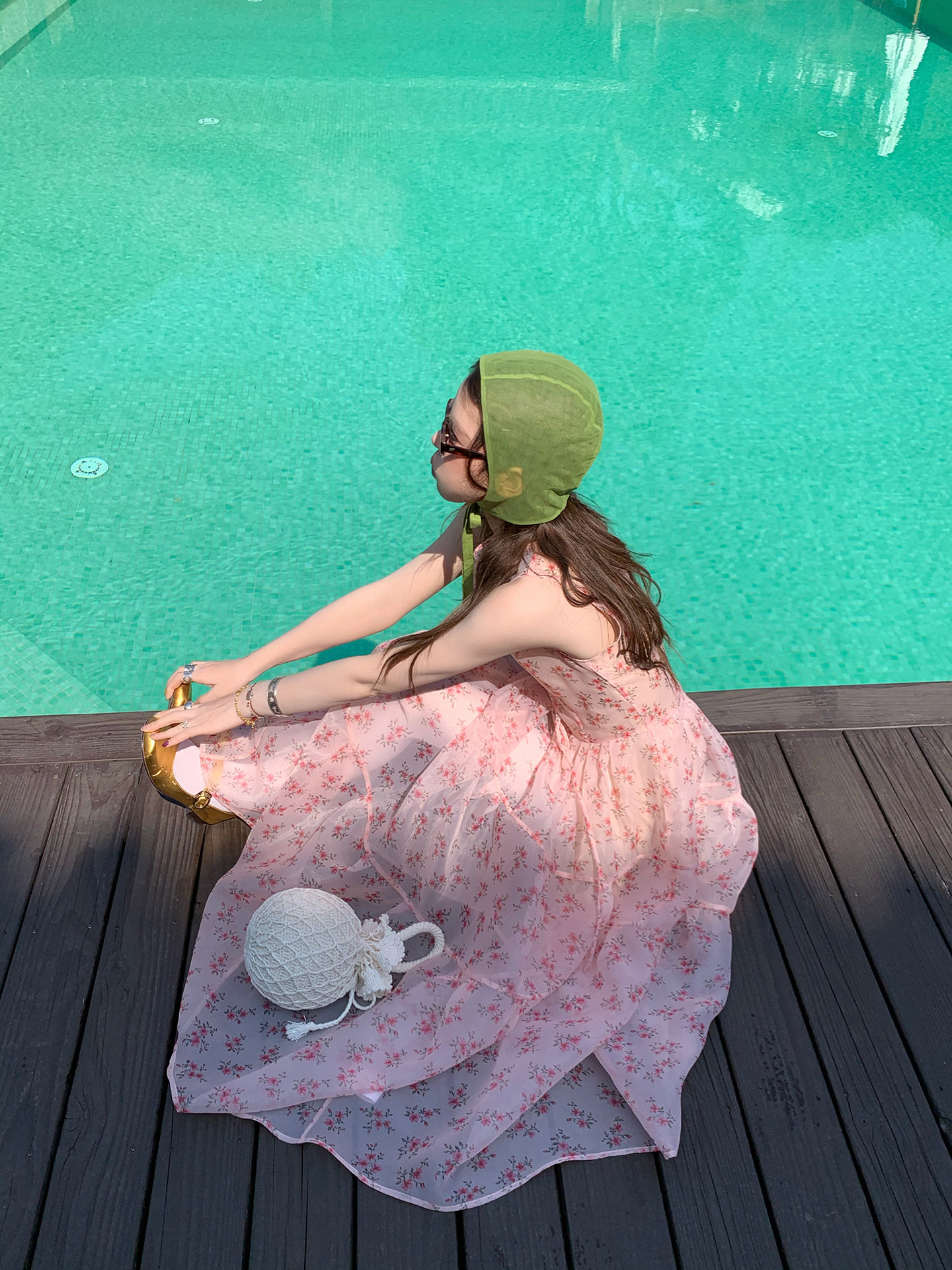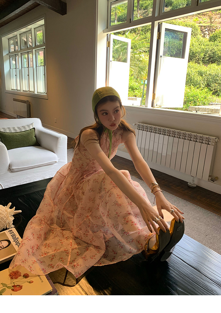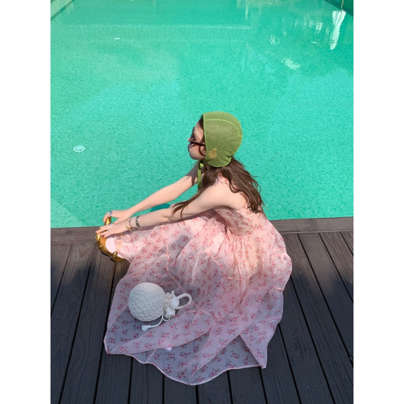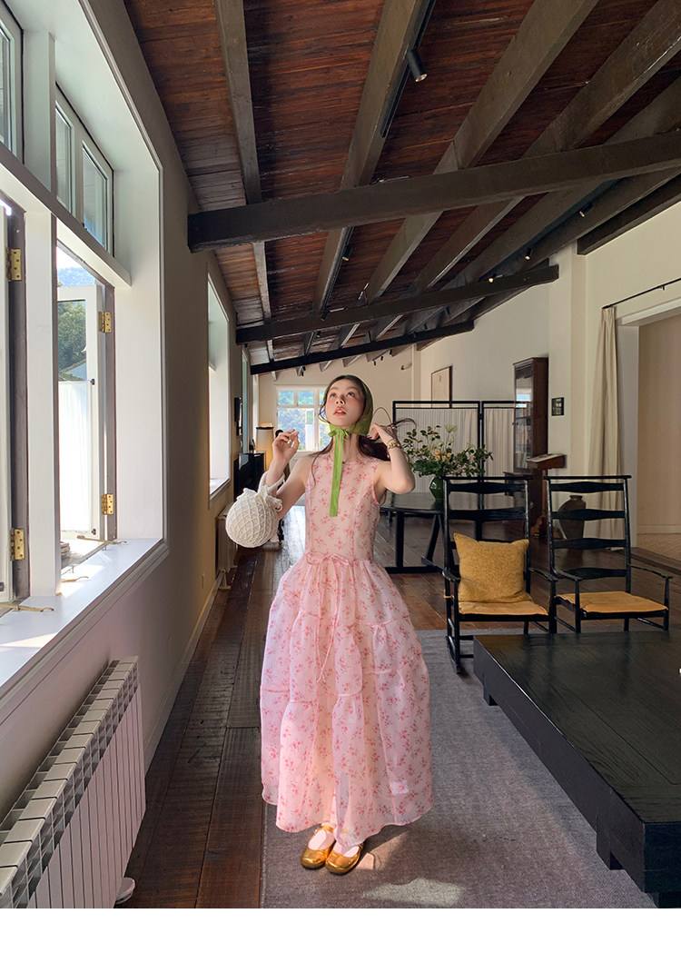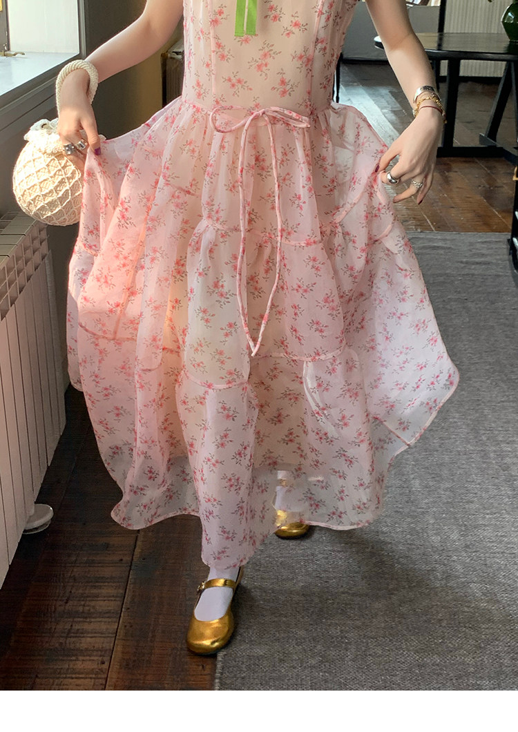 le rouge 주 아름다움 안개 실 잉 꿈 소녀 몽환 핑크색 꽃무늬 유럽 오간자 조끼 원피스