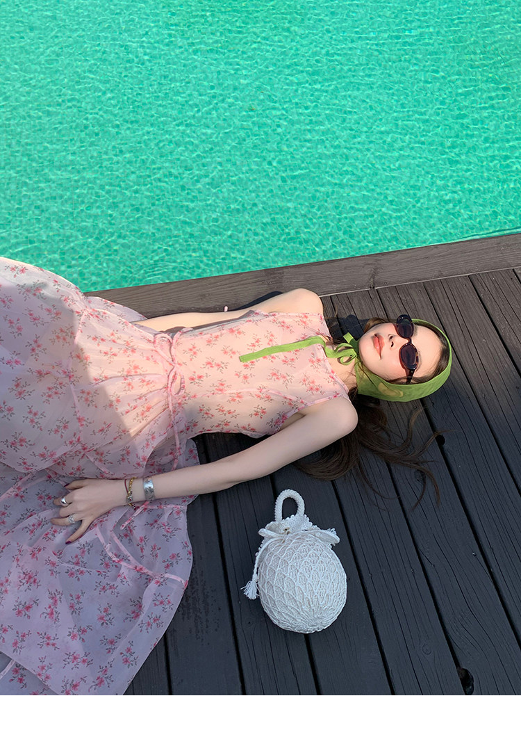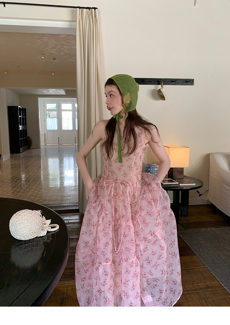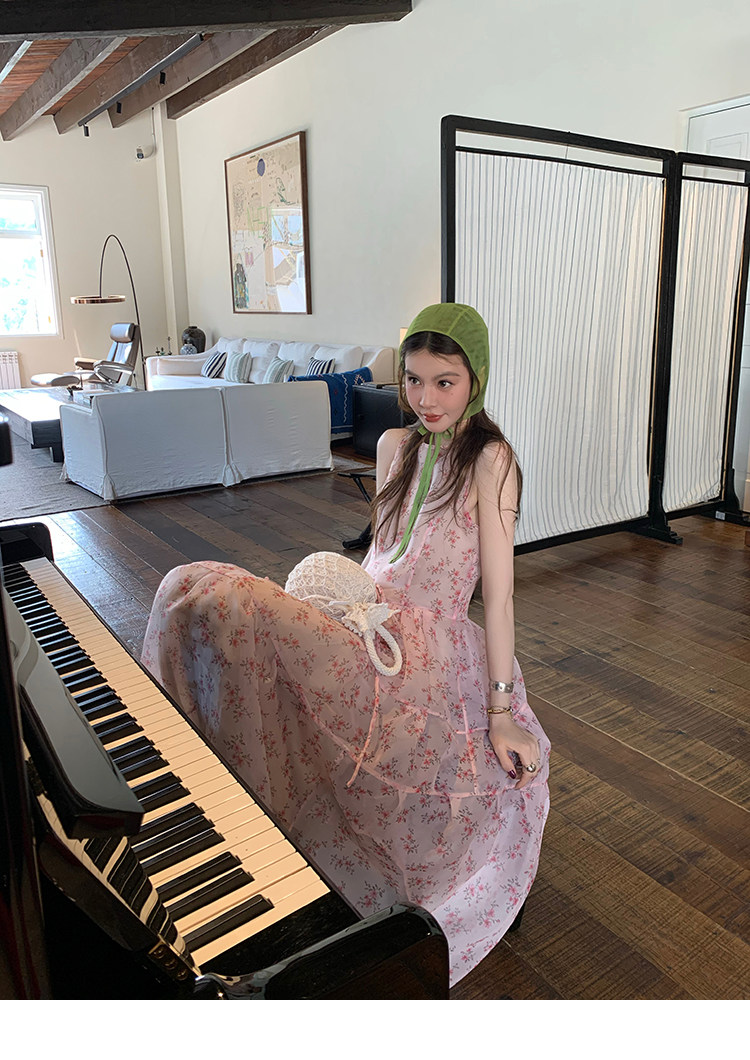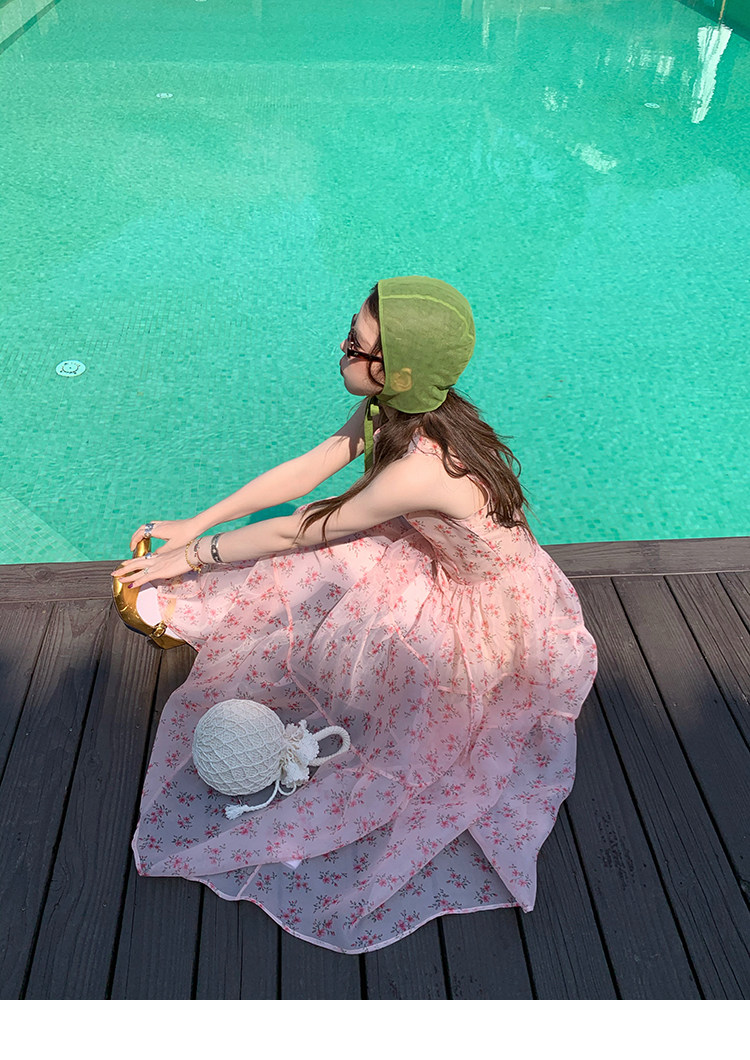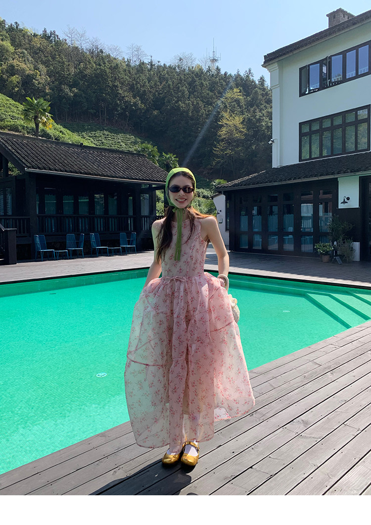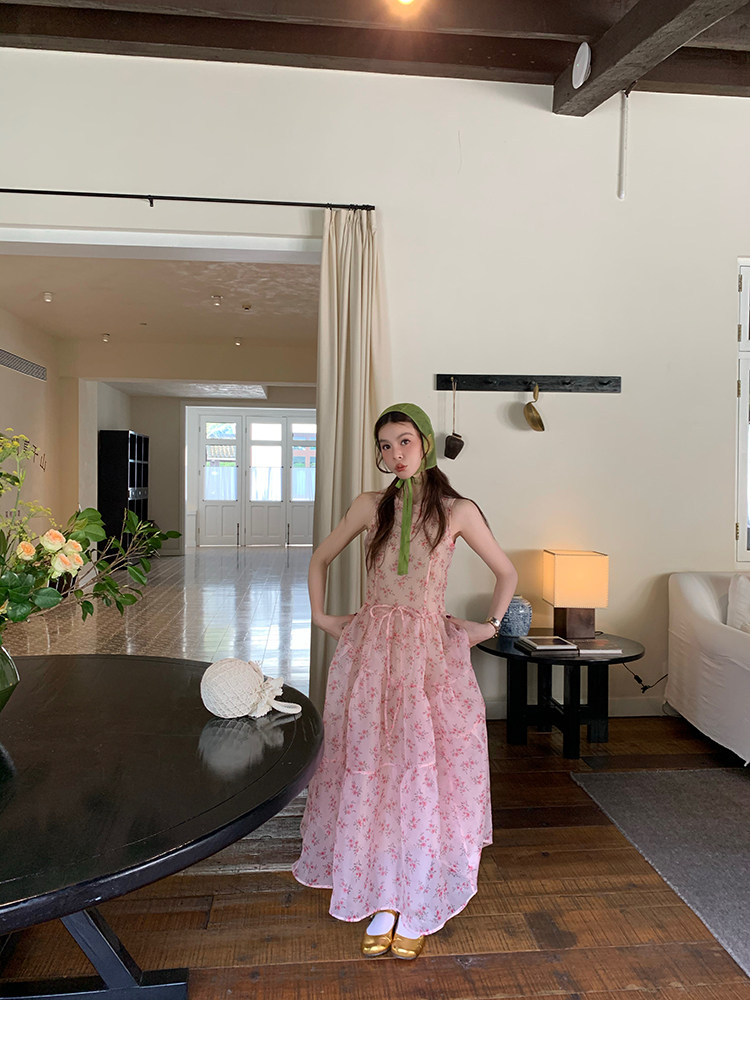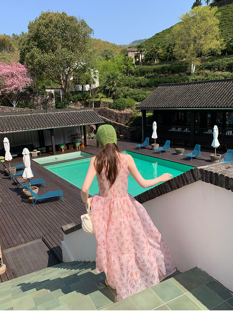 le rouge 주 아름다움 안개 실 잉 꿈 소녀 몽환 핑크색 꽃무늬 유럽 오간자 조끼 원피스