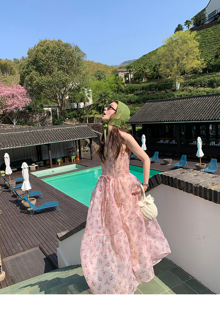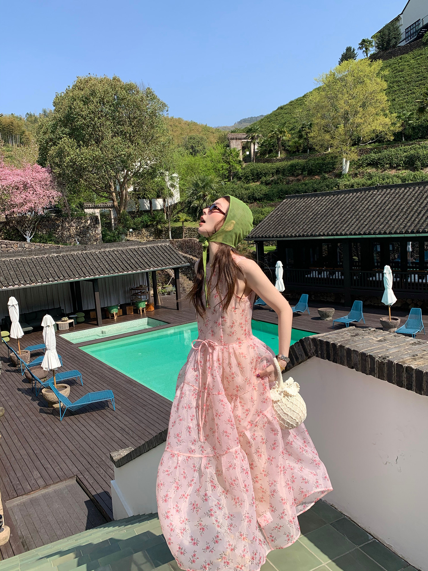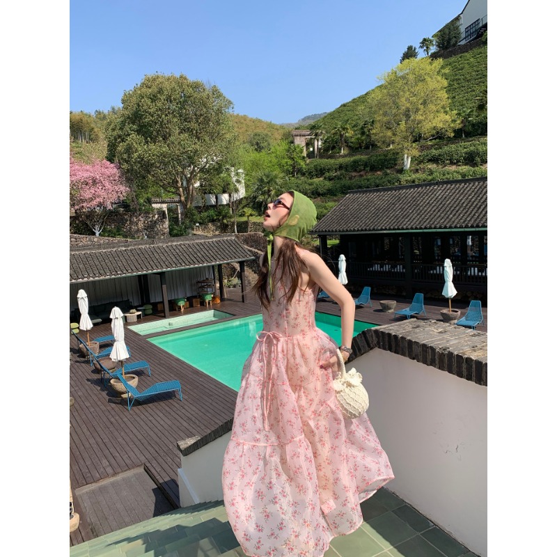fart shop 꽃 리플 꽃 바다 V넥 스트랩 백리스 슬립 여성 드레스 봄 여름 레이스 수정 치마