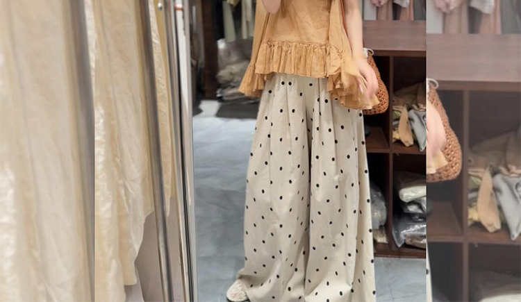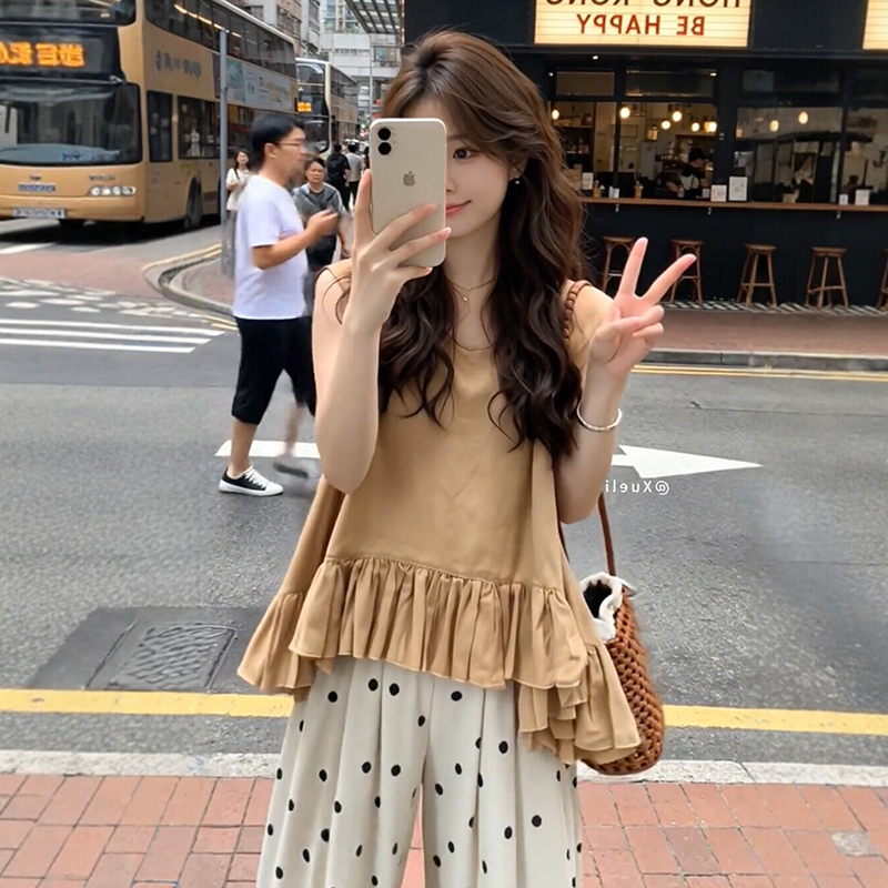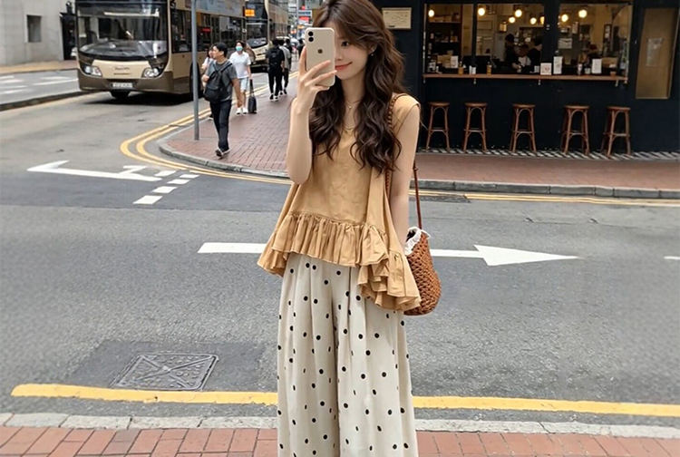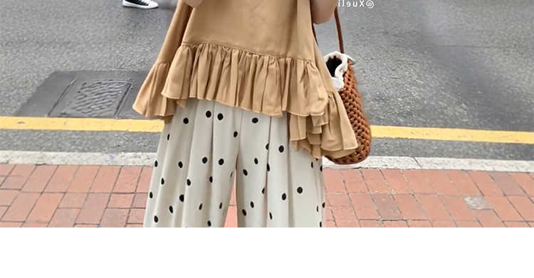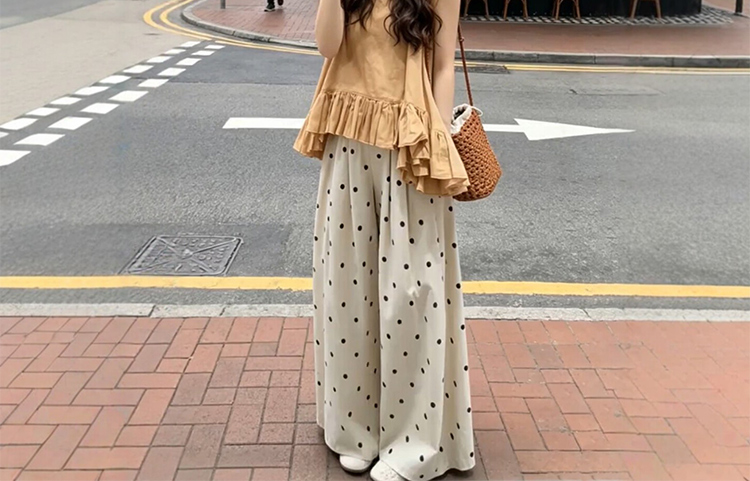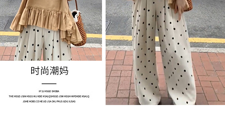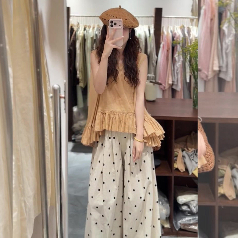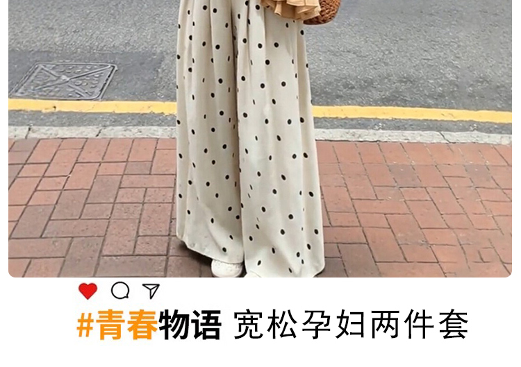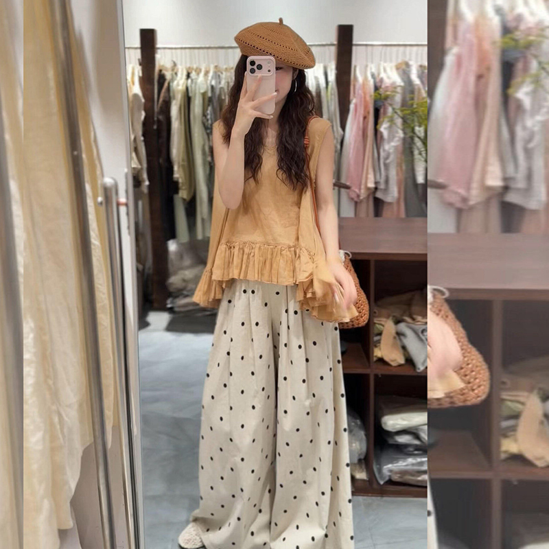 임산부 여름 드레스 전체 집합 느슨함 착용 가져 가라. 한 부서 프릴 조끼 맨위 도트 무늬 와이드 레그 팬츠 세트 여성