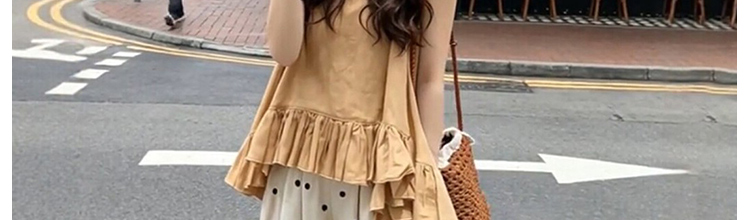 실사 디자인 센스 작은 대중 라운드 넥 벌룬 소매 여성 여름 새로운 단색 루즈핏 표지 배 반소매 맨위