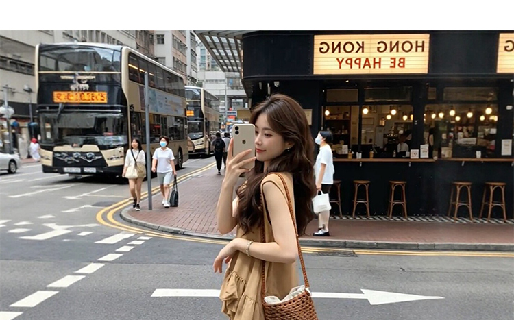 임산부 반팔 여성 드레스 여름 프랑스식 품격 디자인 센스 몸매 가꾸기 슬림해 보이는 V넥 타이트 스커트 롱 스커트 여성