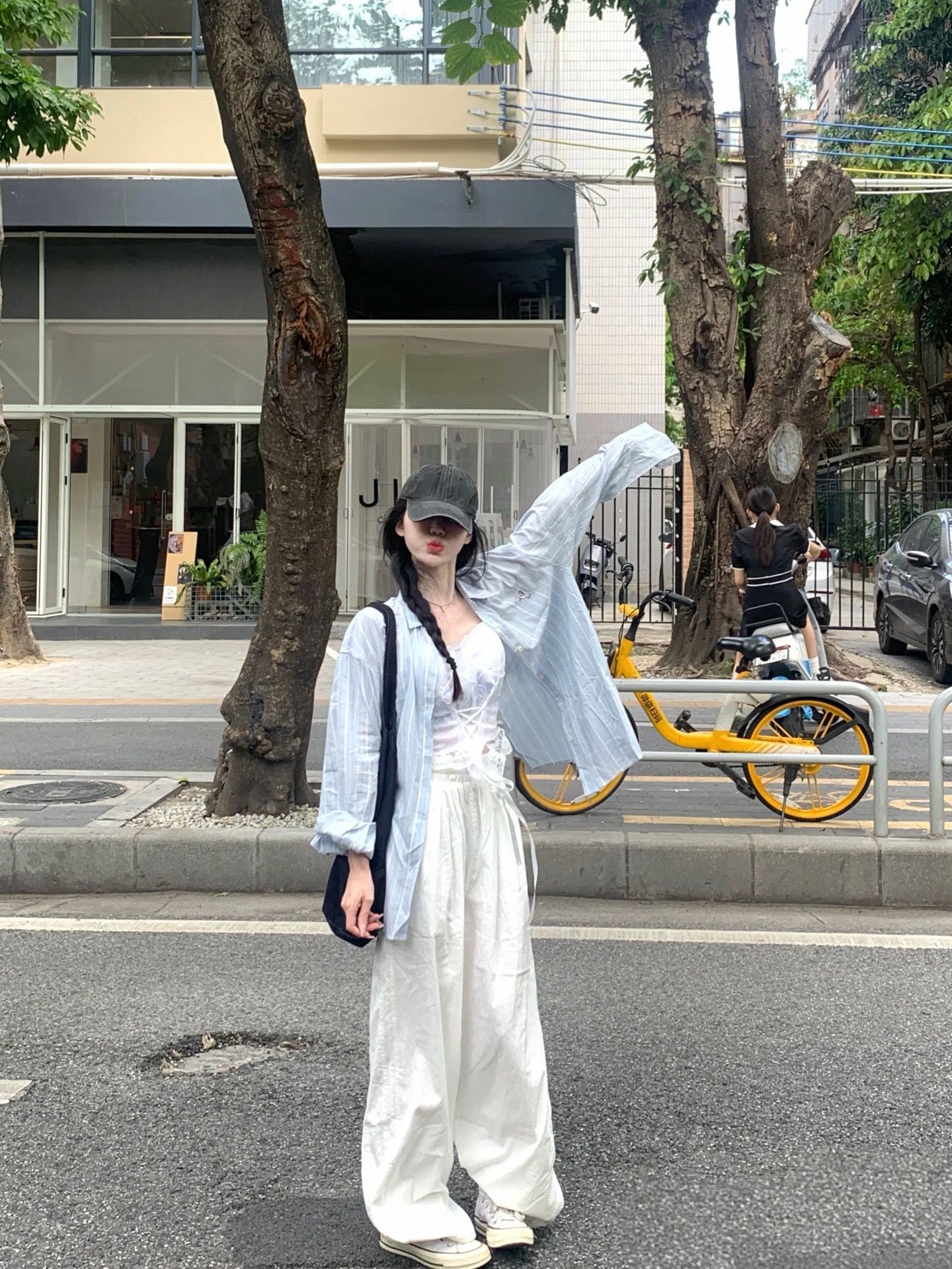 4.3 신제품 westayone 니트 자외선 차단 오픈 가디건 꽃무늬 슬립 드레스 맨위 모방 데님 와이드 레그 팬츠