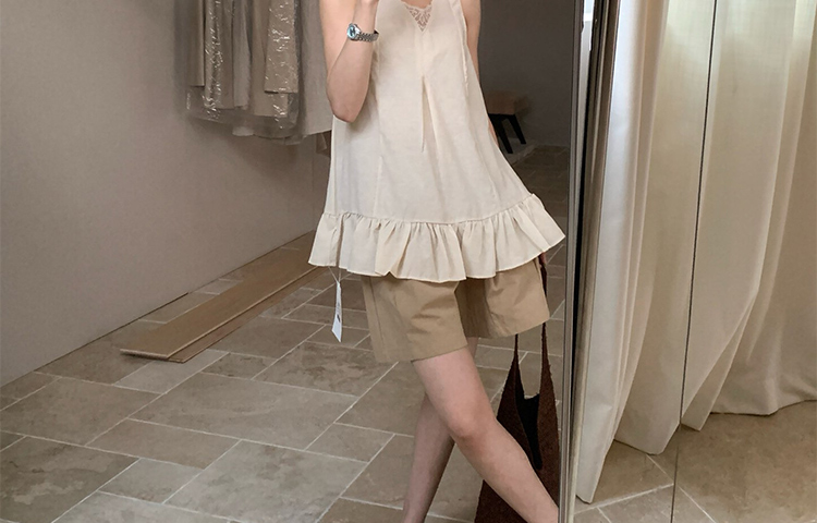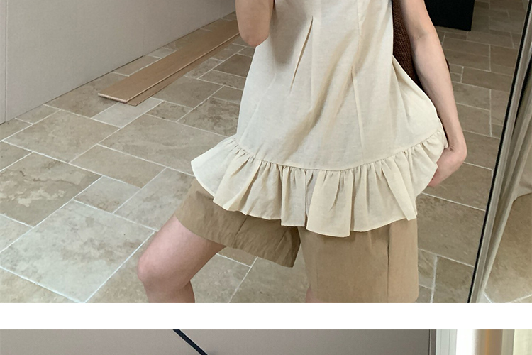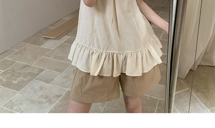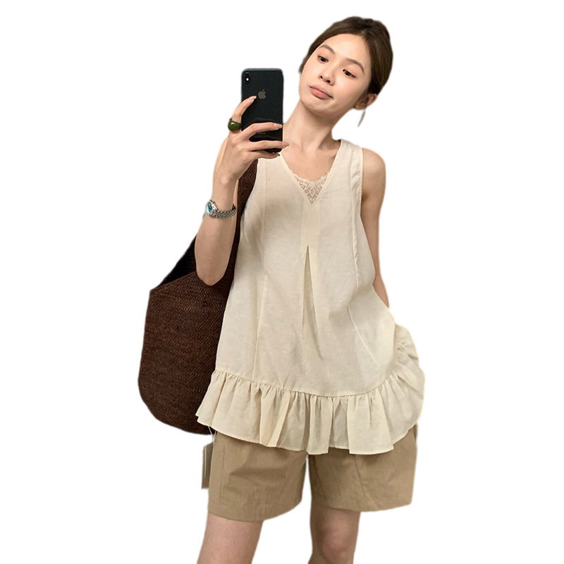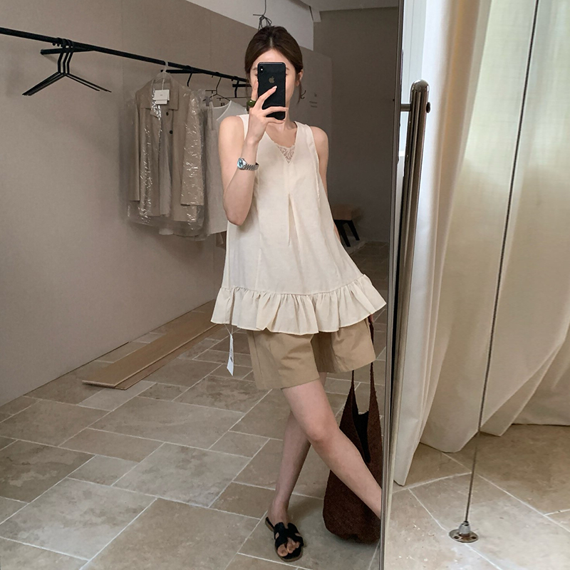 임산부 V넥 민소매 작은 셔츠 2026 여름 캐주얼 바람 미니멀리즘 맨위 반바지 세트