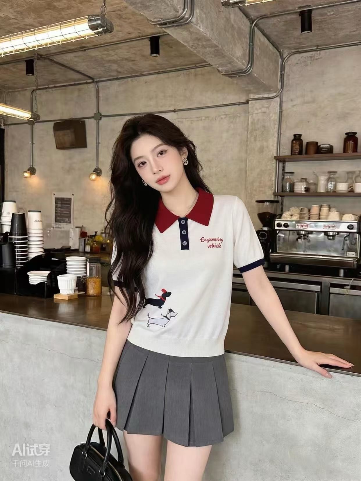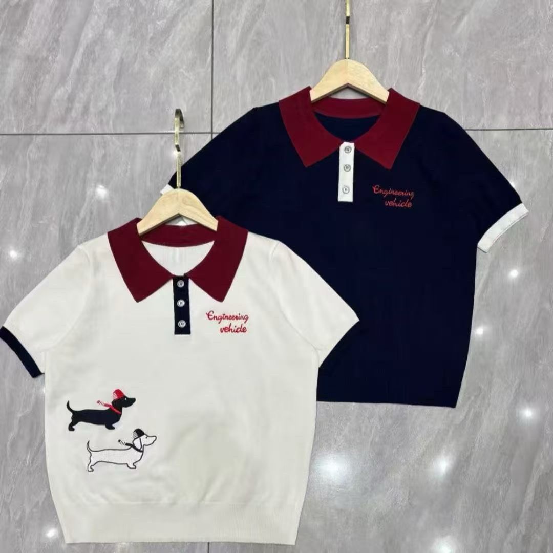 여름 새로운 스트라이프 강아지 자카드 니트 반팔 한국 스타일 학원 스타일 POLO 칼라 품격 맨위