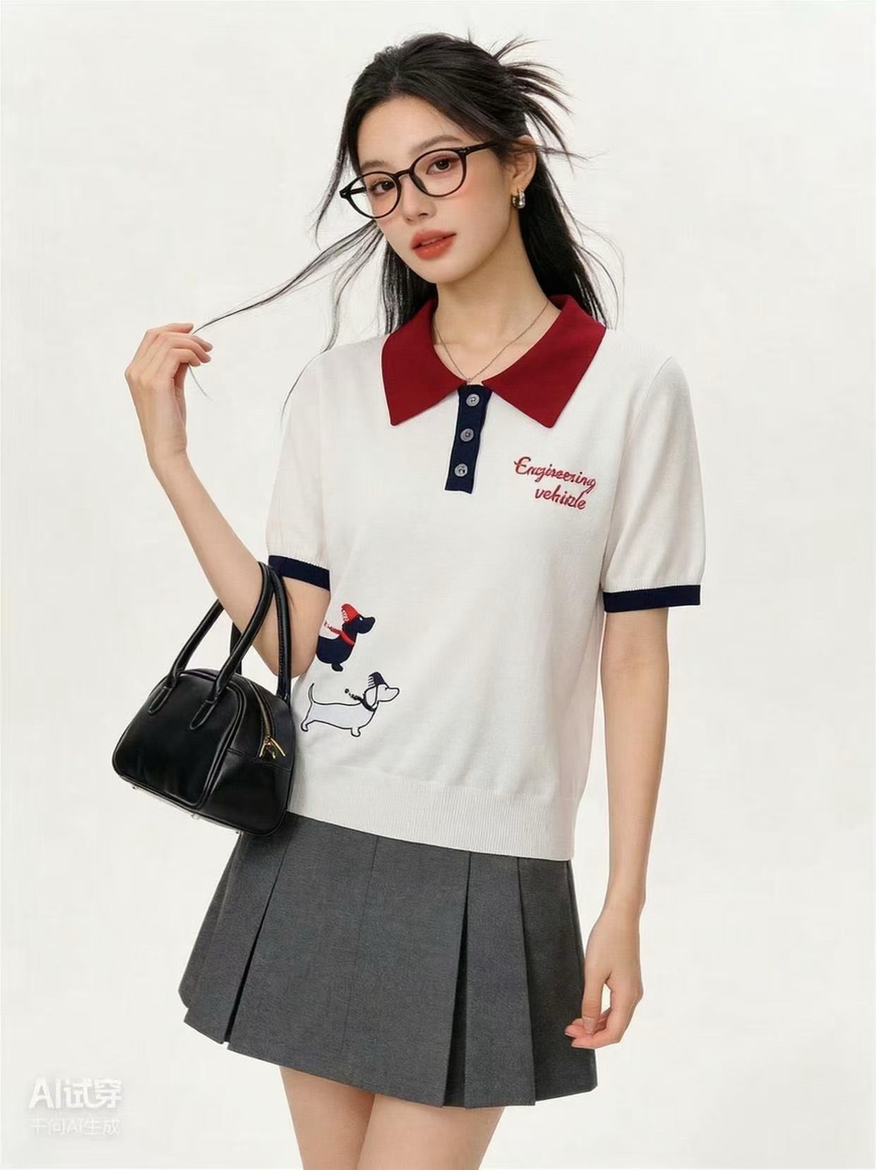 2026 새로운 학원 스타일 폴로 칼라 수건 개 자카드 알파벳 두 장 니트 스웨터 반팔 맨위 티셔츠 여성