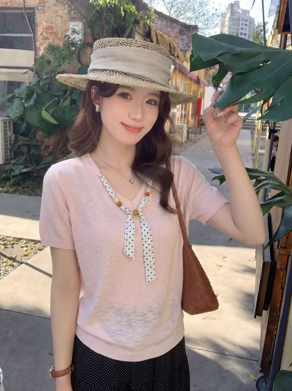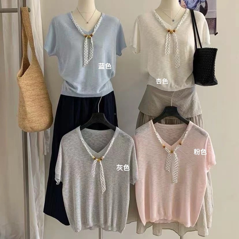 여름 새로운 한 부서 달콤한 자매 미니멀리즘 고급 센스 슬림해 보이는 반팔 니트 스웨터 여성 루즈핏 얇은 스타일 맨위