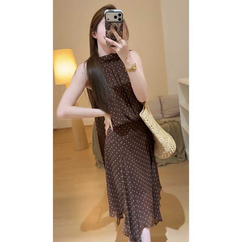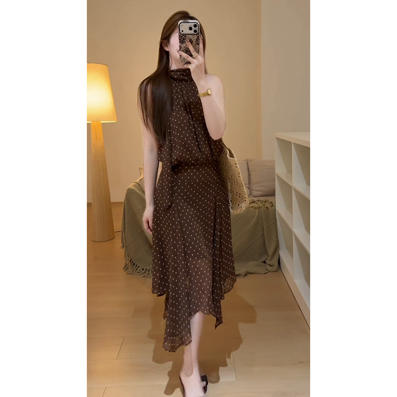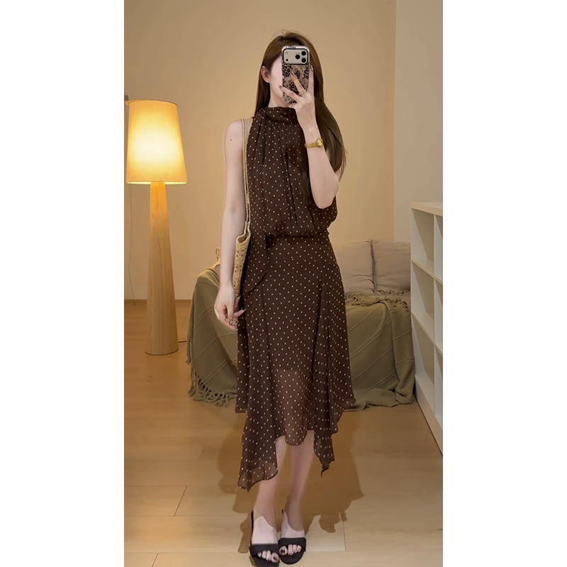 정가 재고 있음 한 부서 도트 무늬 리본 민소매 조끼 맨위 여성 여름 새로운 불규칙 반신 치마 세트