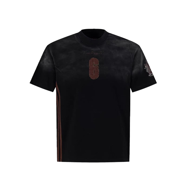 원본 솜씨 원본 원단 아메리칸 레트로 V넥 올리브 저지 티셔츠 패치워크 운동 반팔 여름 남녀