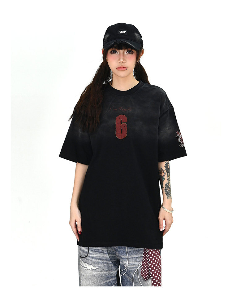 40s 더블 실 원본 솜씨 아메리칸 점차적으로 더러운 염색 마 오래된 반팔 티셔츠 여름 라운드 넥 맨위 남녀 커플
