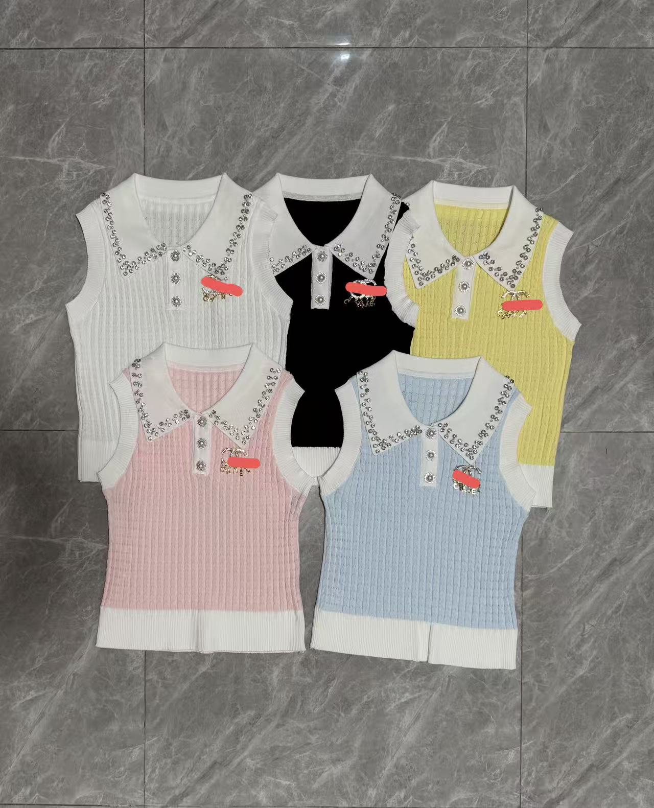 lym studio 학원 스타일 miu 부서 배색 폴로 칼라 니트 스웨터 반팔 몸매 가꾸기 다용도 품격 쇼트 스타일 맨위