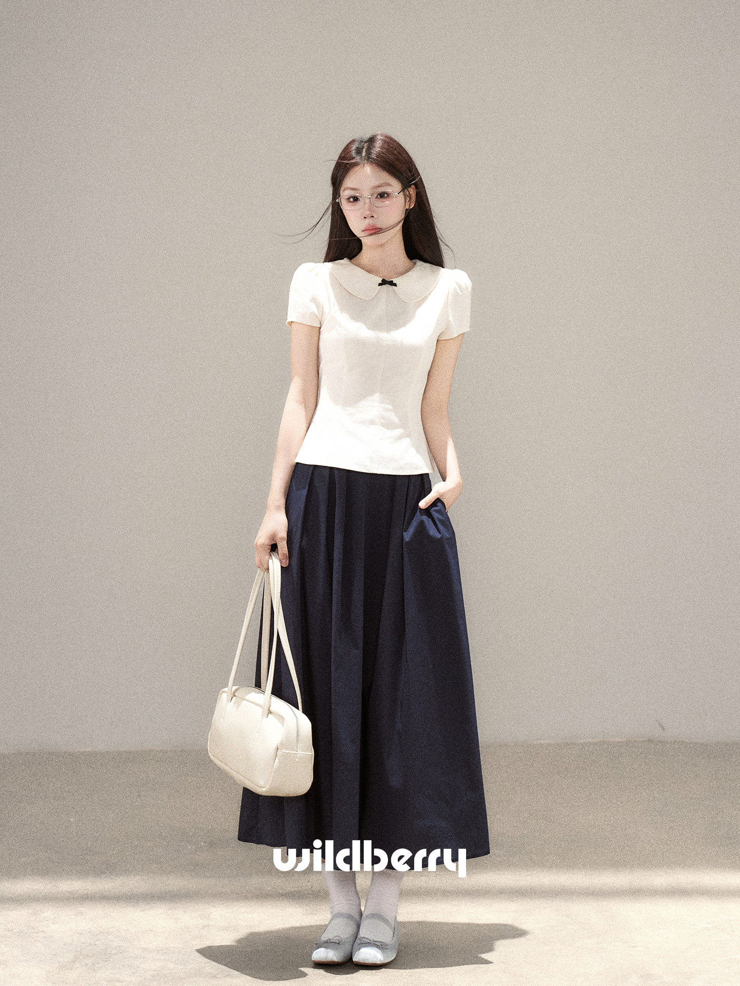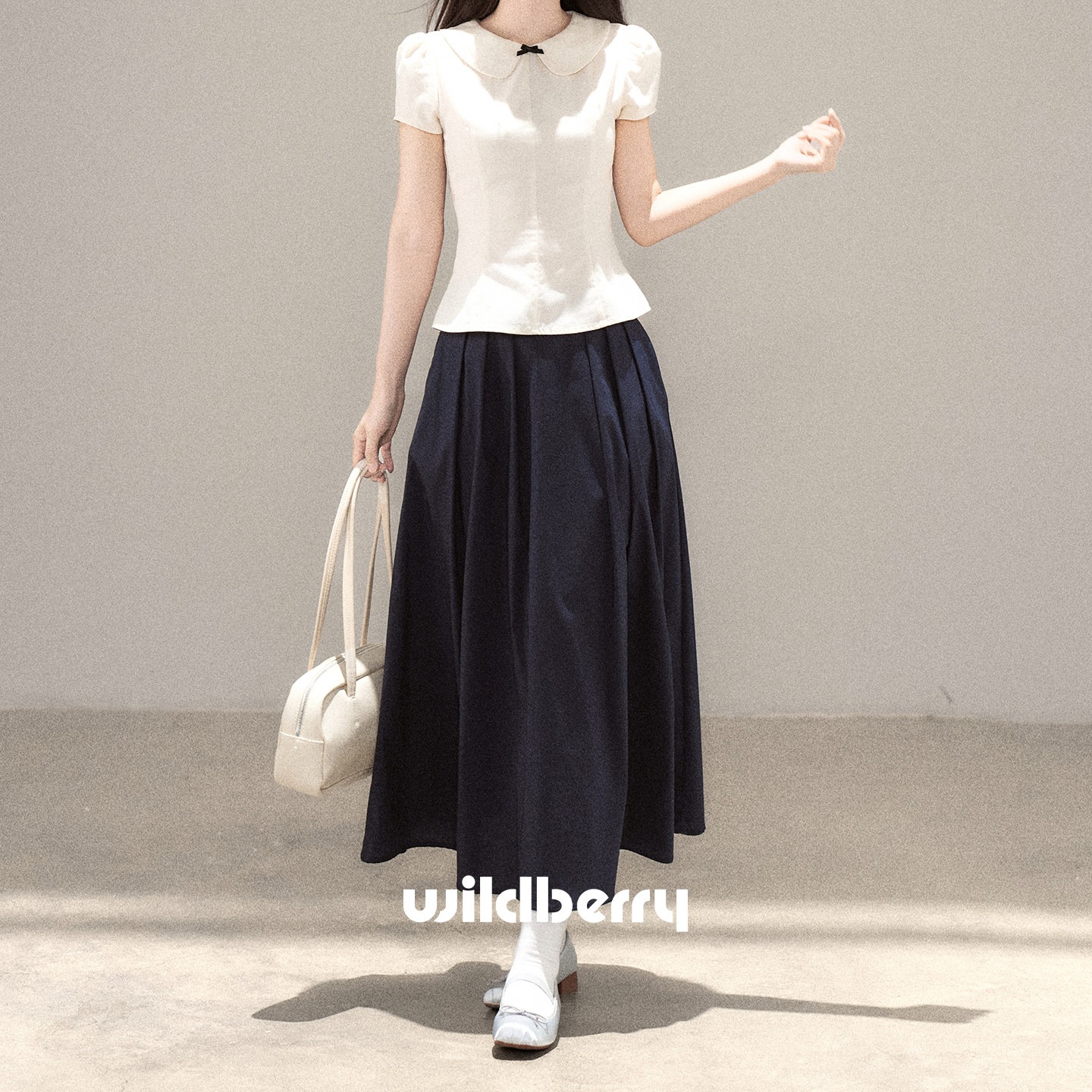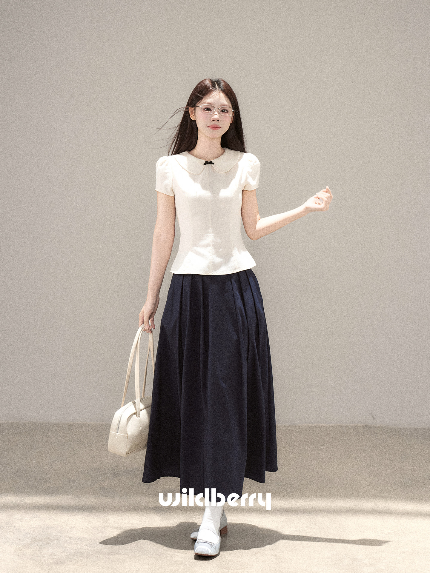 화이트 베이비 칼라 반팔 셔츠 여성 의류 여름 새로운 셔츠 달콤함 디자인 센스 몸매 가꾸기 맨위
