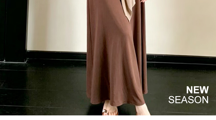 실사 지금 2026 여름 라미 드레스 루즈핏 우아한 단색 큰 진자 롱 스커트 소매 얇은 스타일 인형 치마