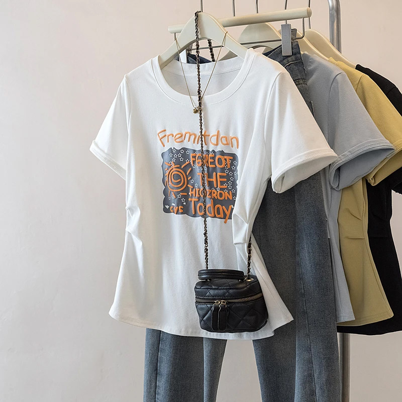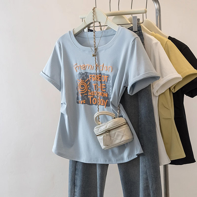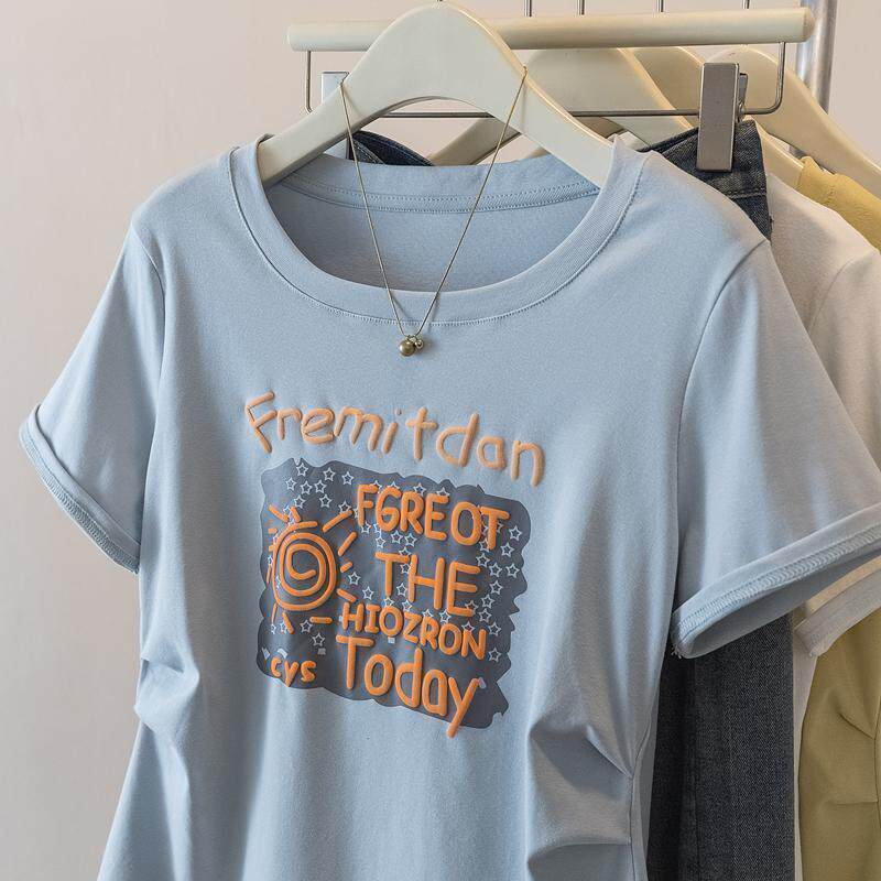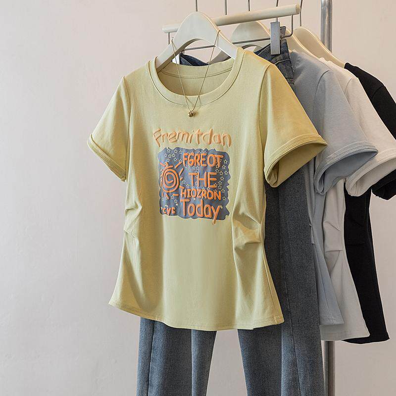 경관 그림 21 순면 210 그램 여름 드레스 한 부서 반팔 티셔츠 여성 한국 스타일 루즈핏 빅 사이즈 프린트