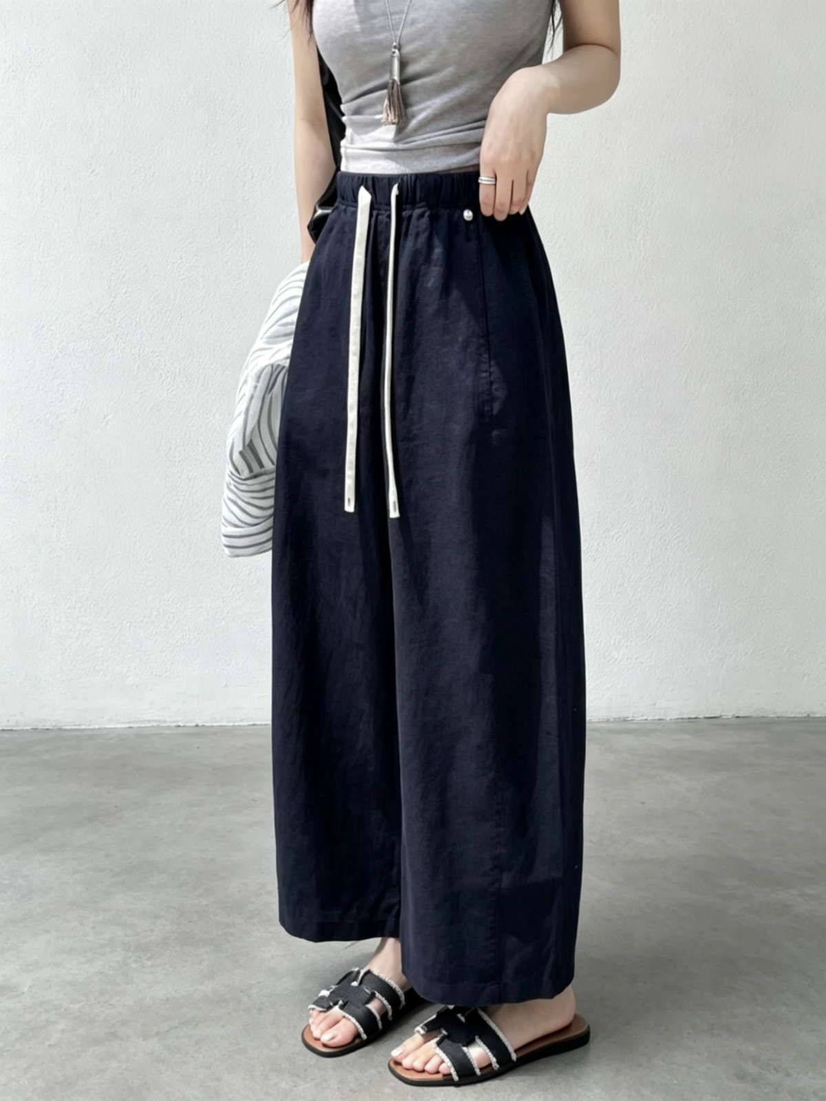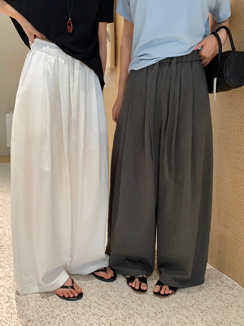 여름 켜기 새로운 미니멀리즘 단색 펌프 로프 하이웨이스트 루즈핏 와이드 레그 팬츠 캐주얼 바지