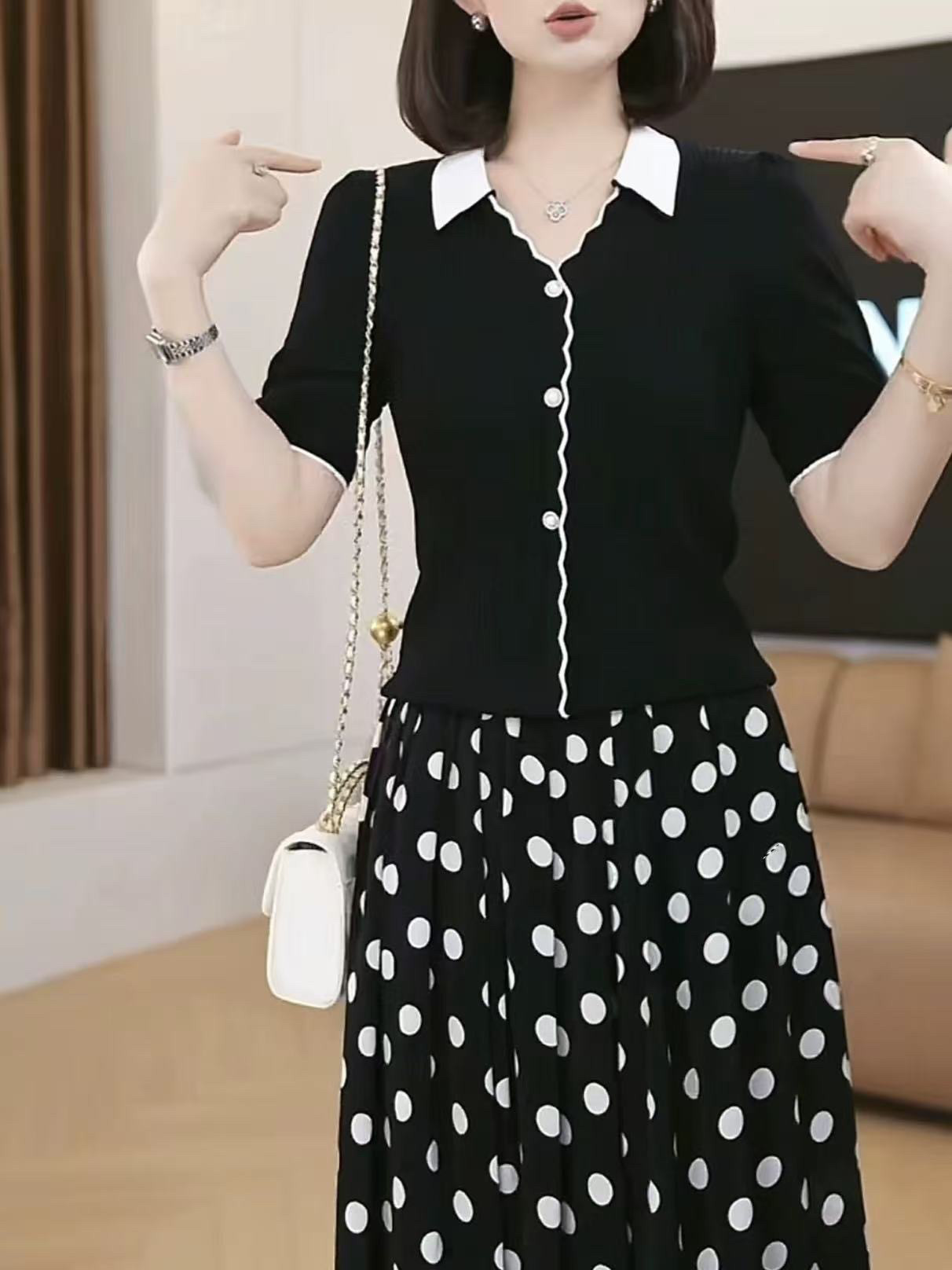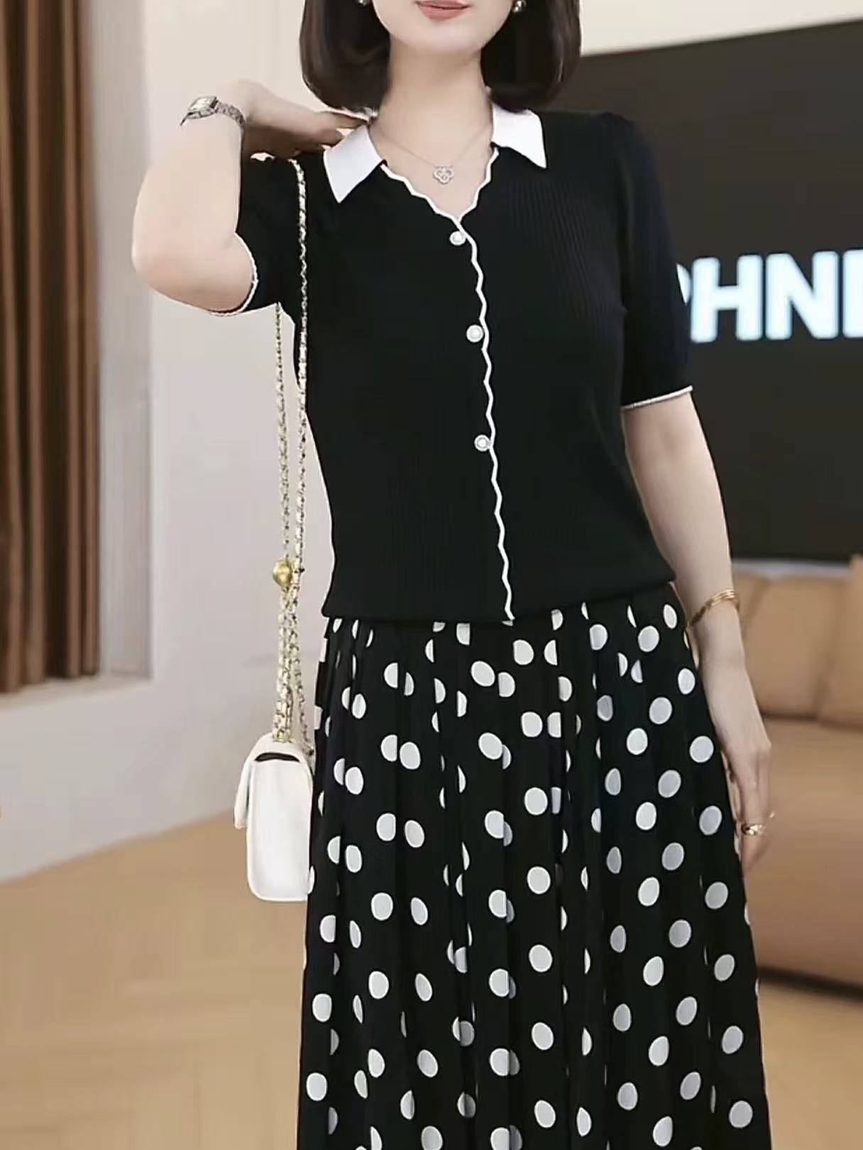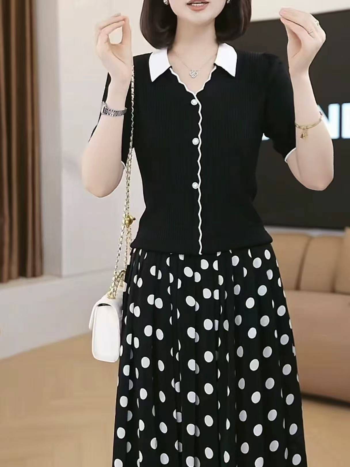 한 부서 부드러운 배색 POLO 칼라 반팔 티셔츠 여성 여름 새로운 올해 인기 품격 얼음 실크 니트 맨위