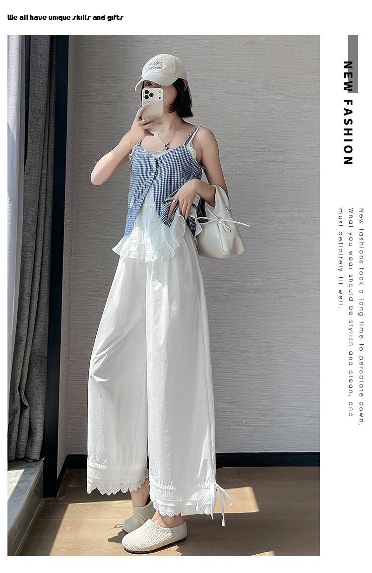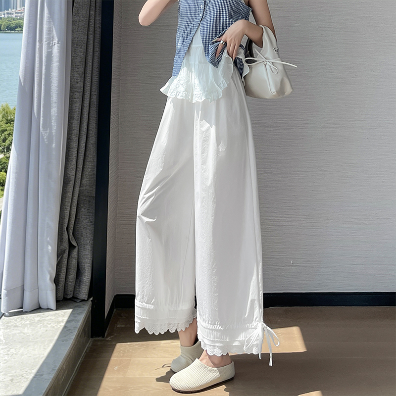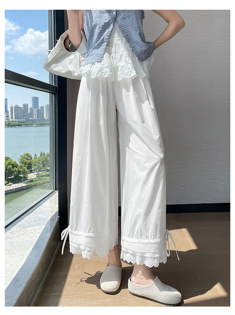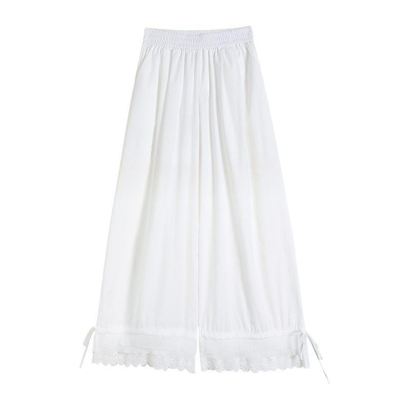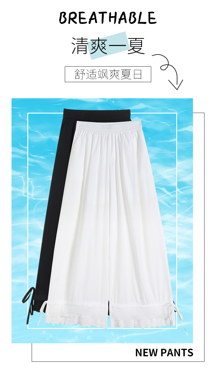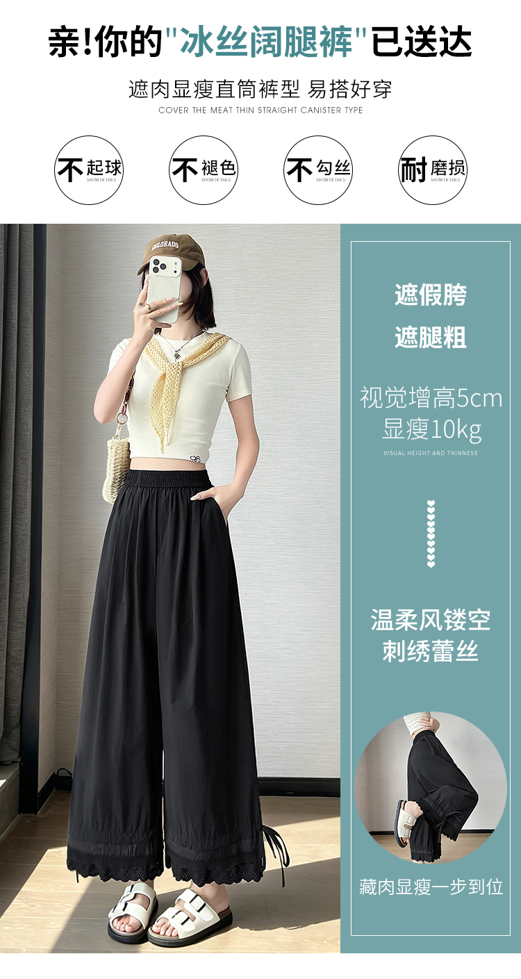 실사 화이트 얼음 실크 레이스 와이드 레깅스 바지 여름 하이웨이스트 도루 센스 루즈핏 스트레이트 9 포인트 캐주얼 꽃밭 바지