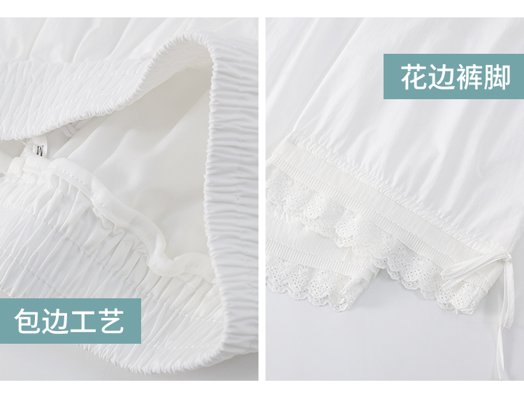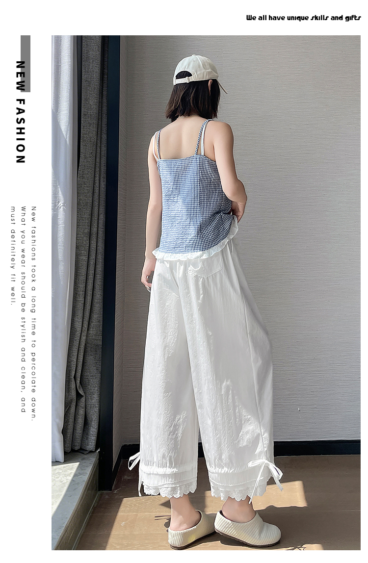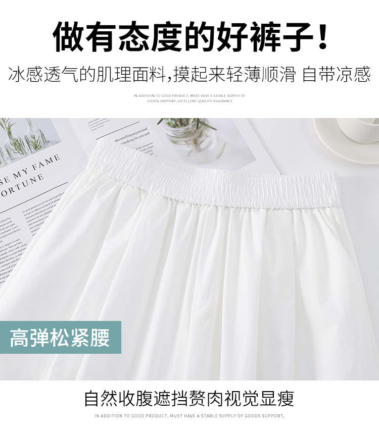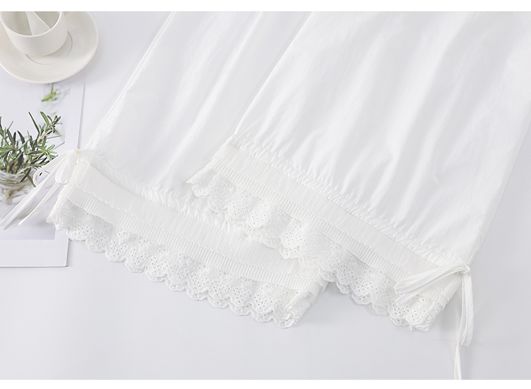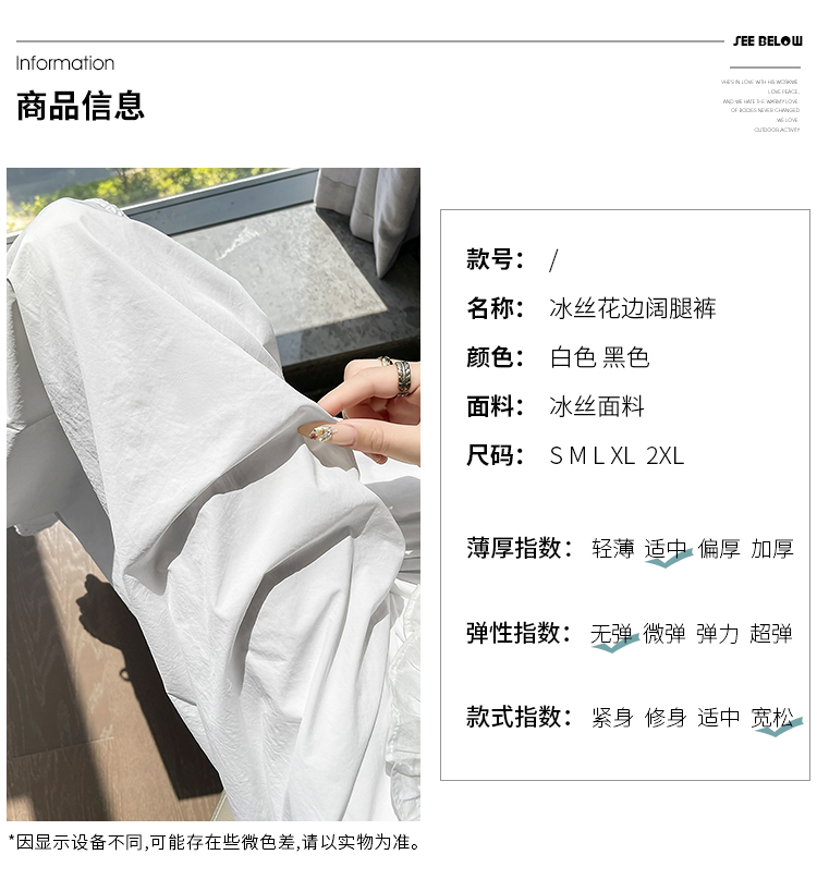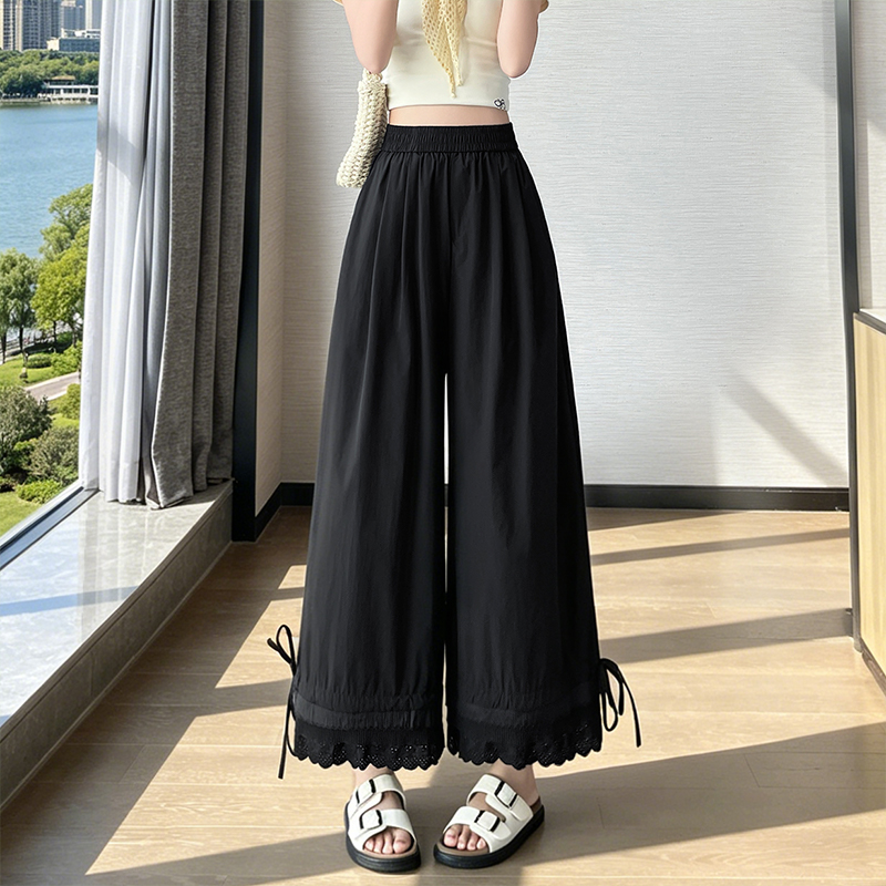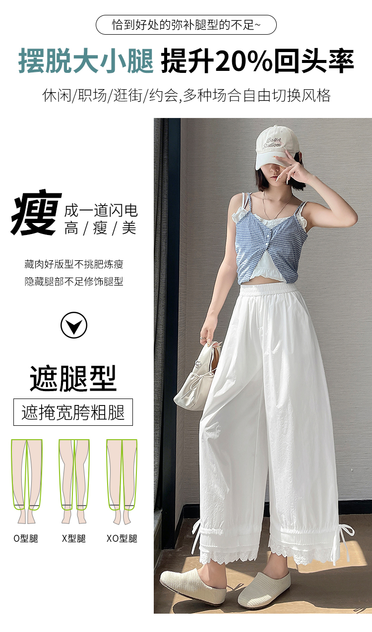 실사 화이트 얼음 실크 레이스 와이드 레깅스 바지 여름 하이웨이스트 도루 센스 루즈핏 스트레이트 9 포인트 캐주얼 꽃밭 바지