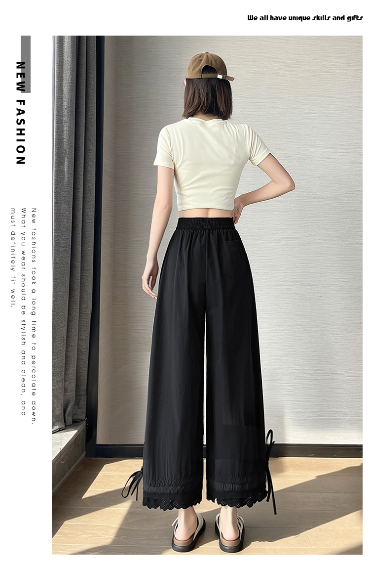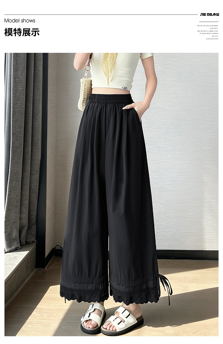 실사 레이스 방귀 커튼 와이드 레그 팬츠 여름 얇은 스타일 하이웨이스트 도루 센스 면 린넨 치마바지 루즈핏 국방 사이 슬림해 보이는 바닥 청소 바지