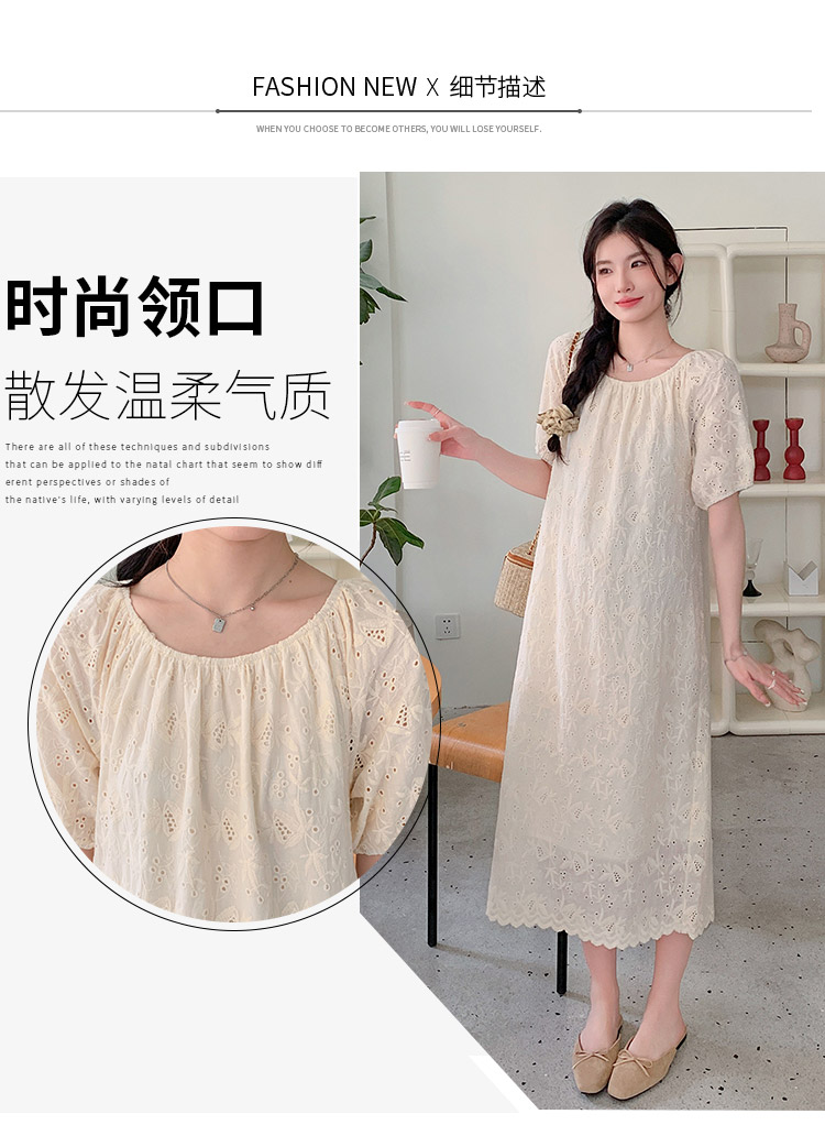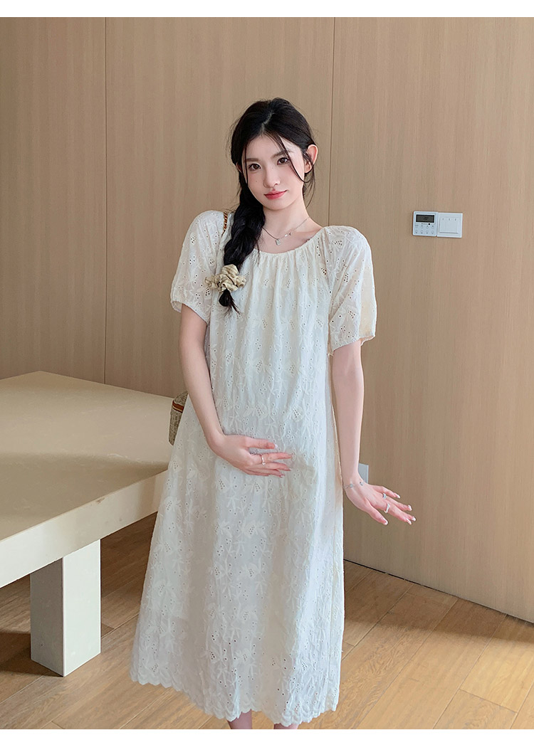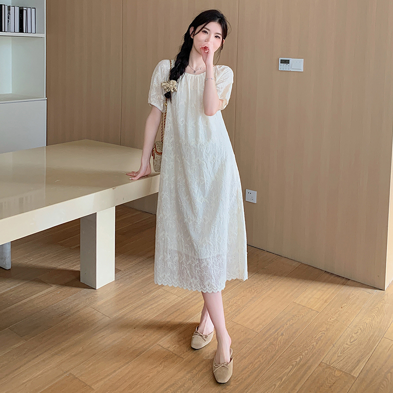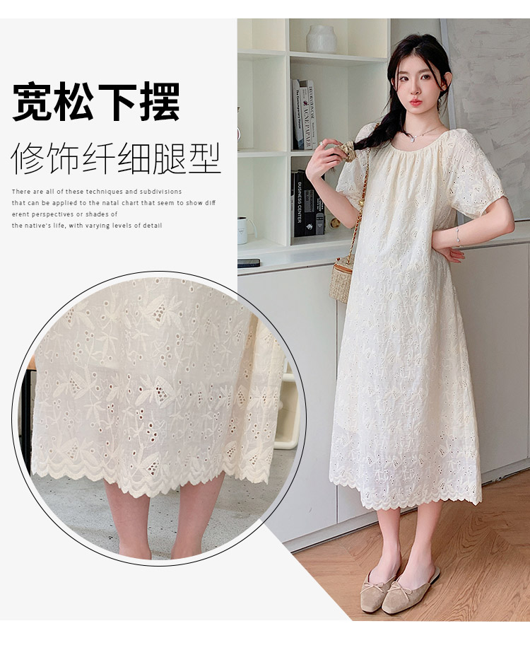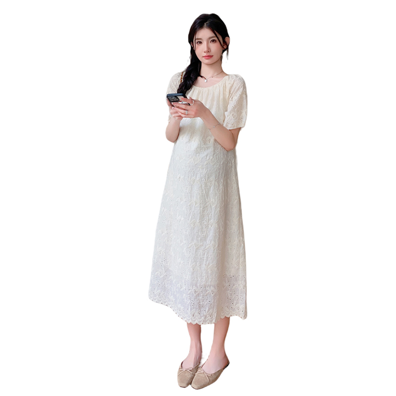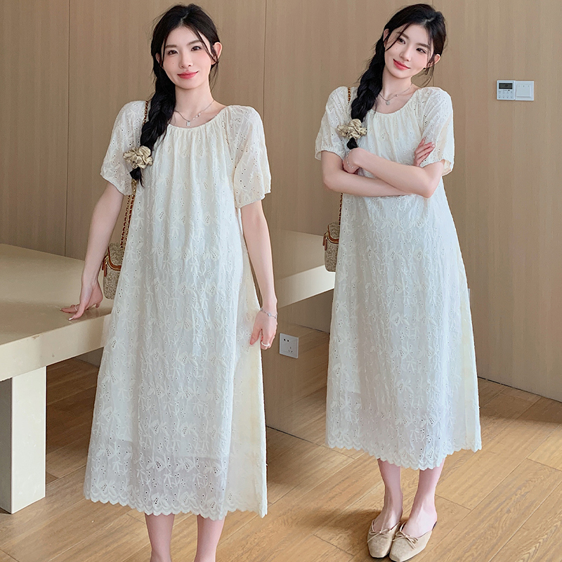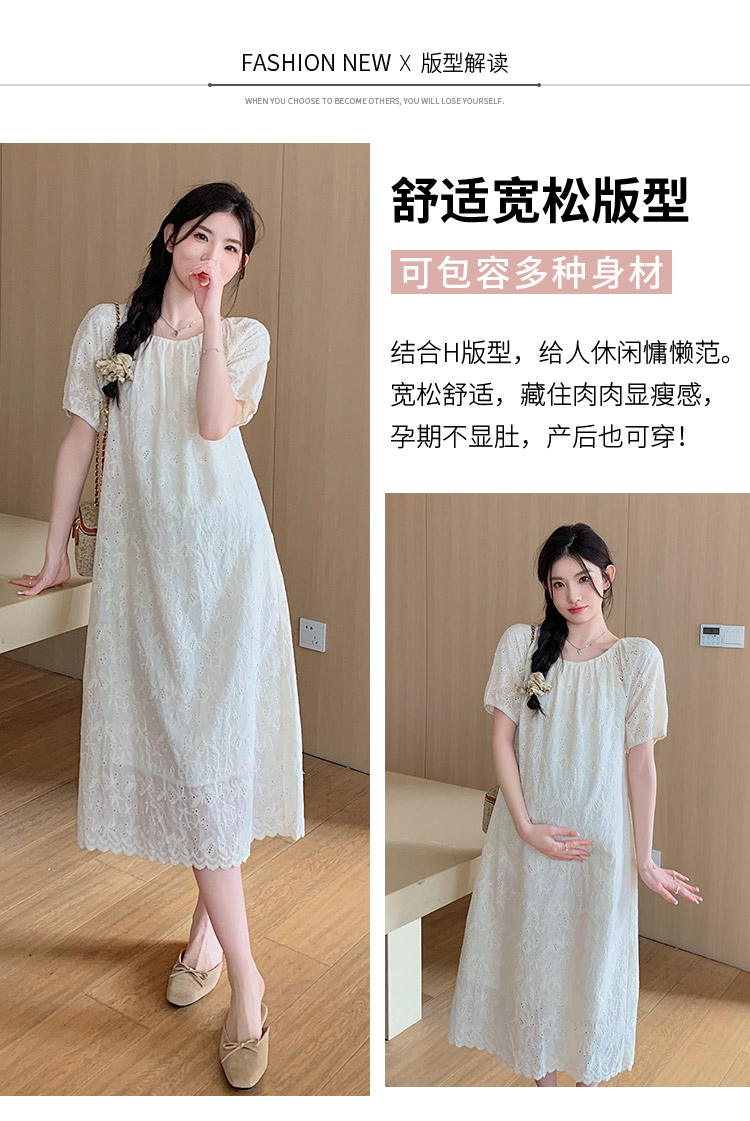 임산부 여름 새로운 패션 거품 소매 자수 드레스 트렌디 엄마 고급 센스 루즈핏 요정 품격 롱 스커트