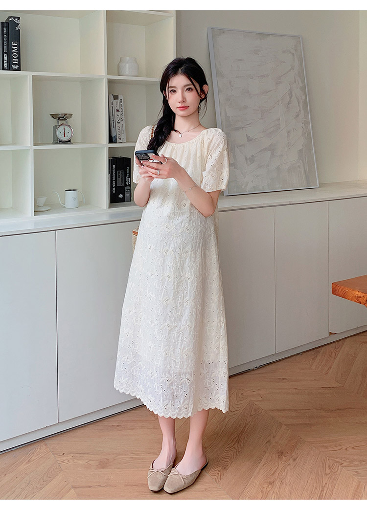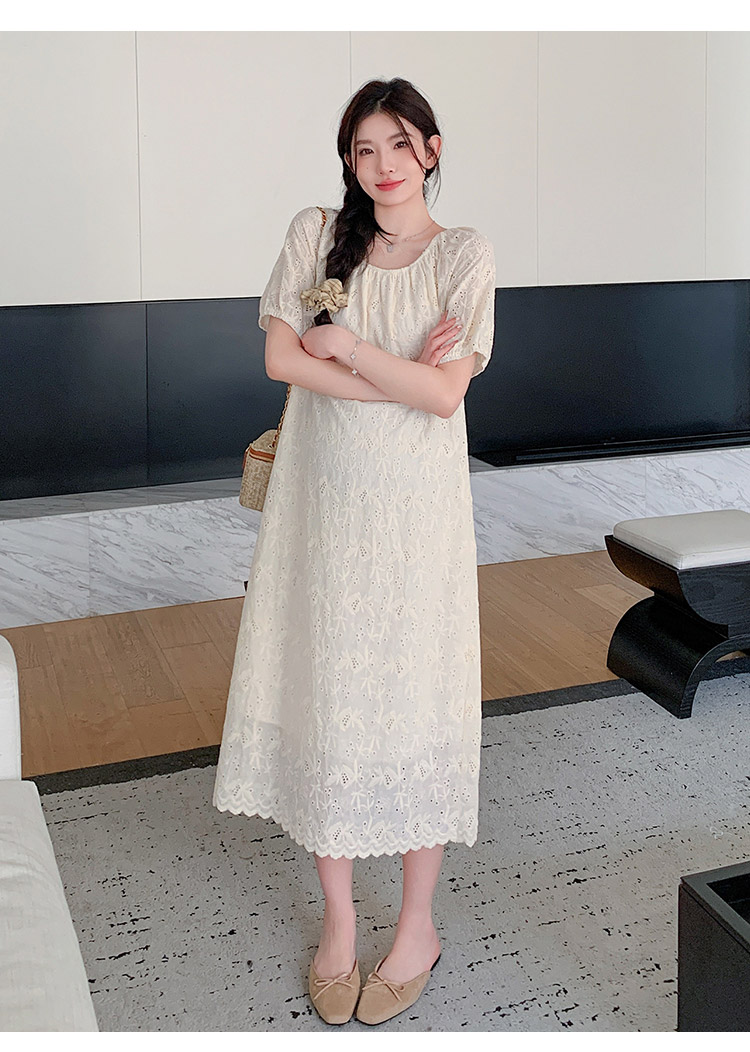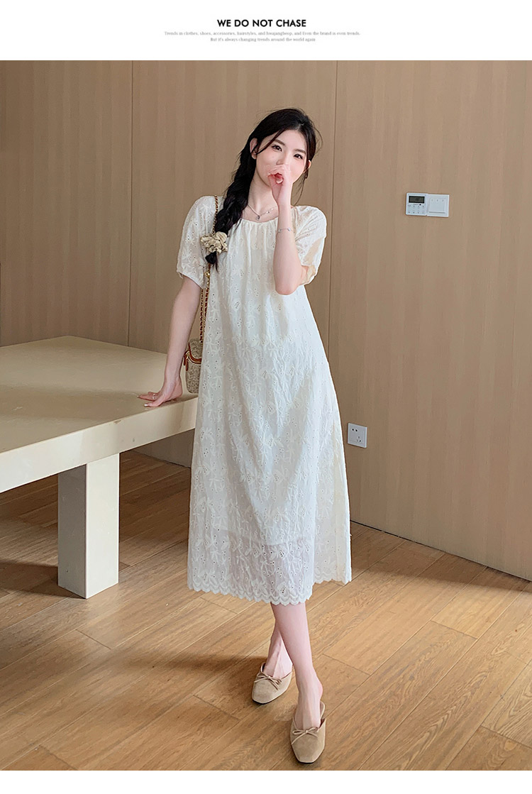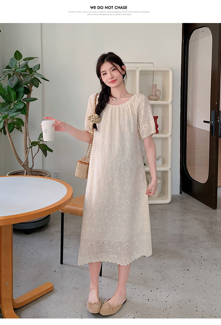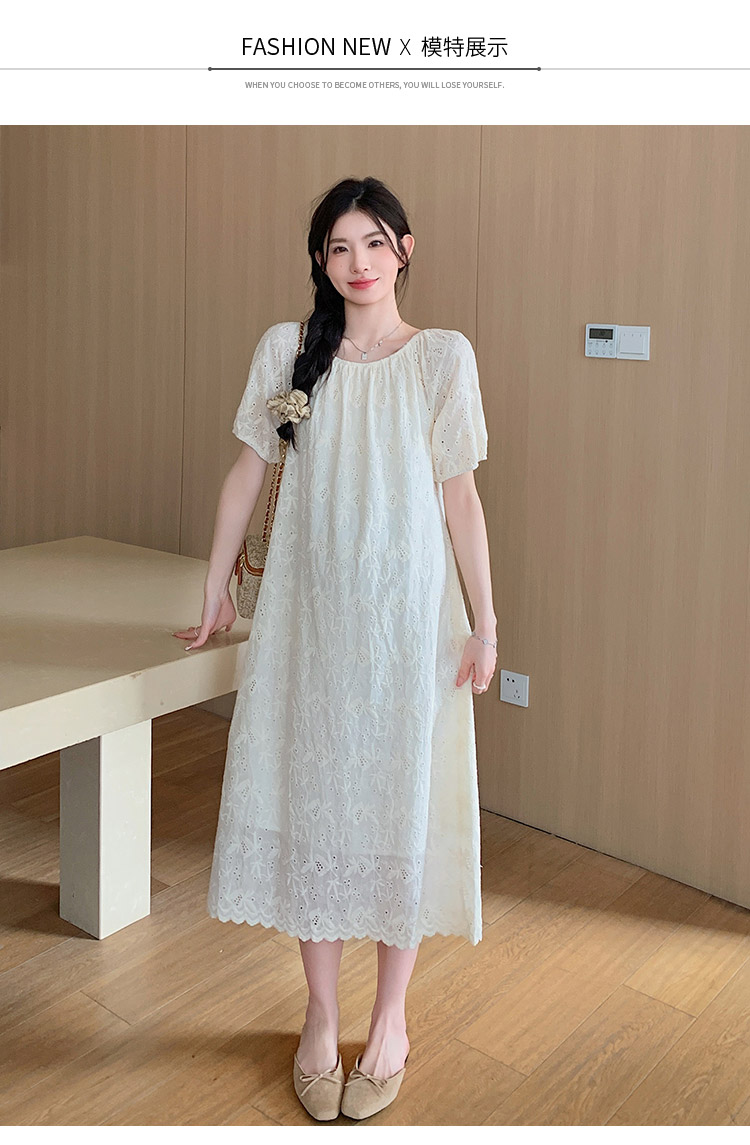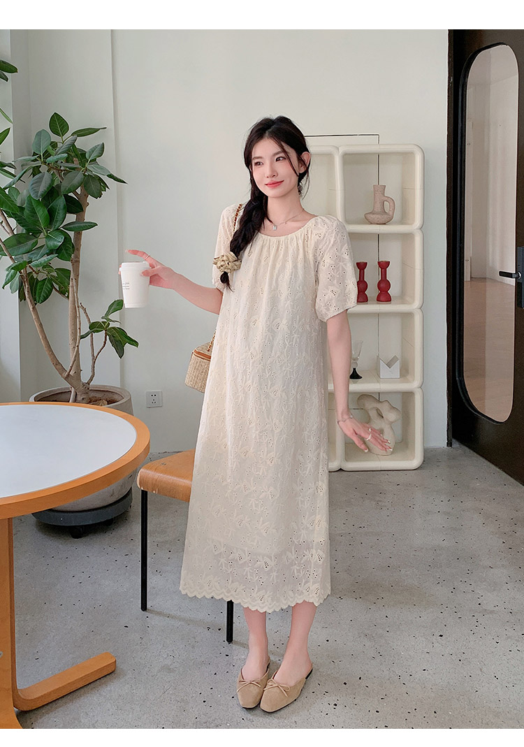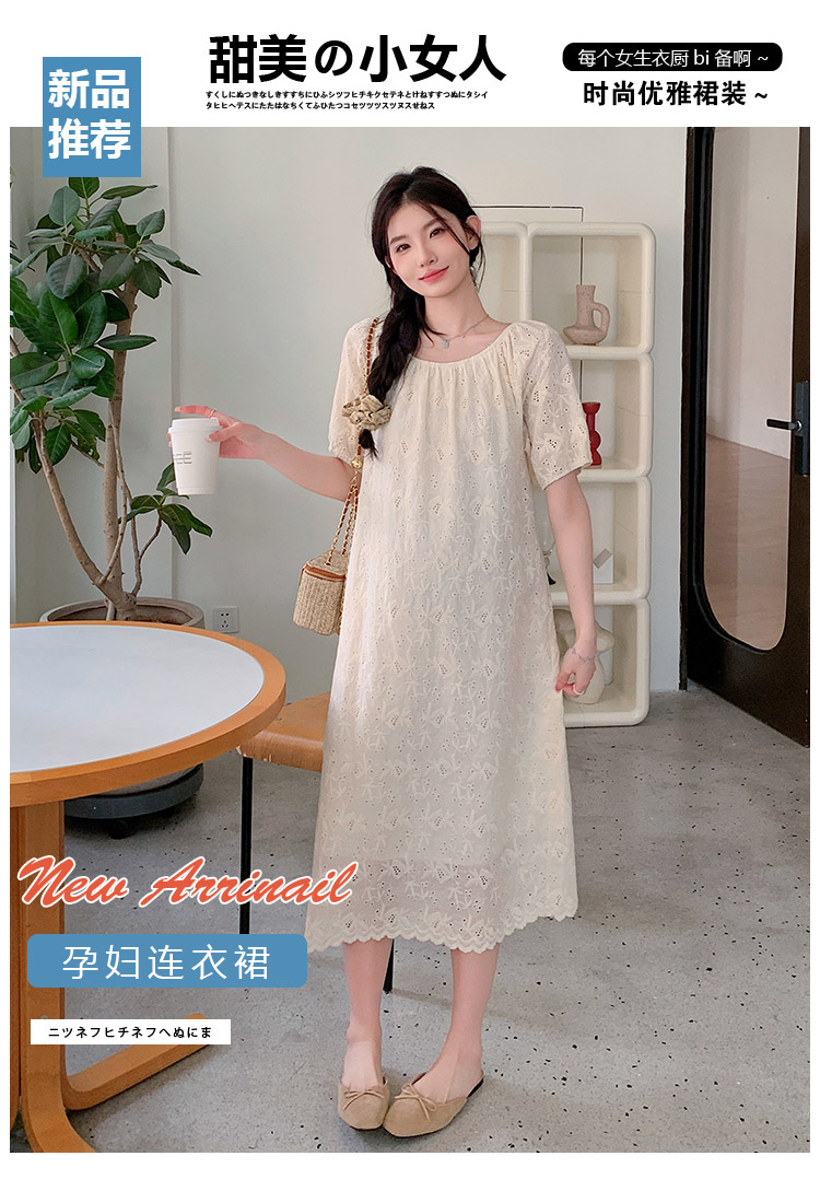 임산부 여름 새로운 패션 거품 소매 자수 드레스 트렌디 엄마 고급 센스 루즈핏 요정 품격 롱 스커트