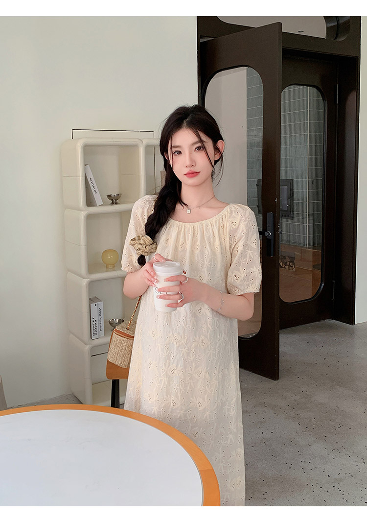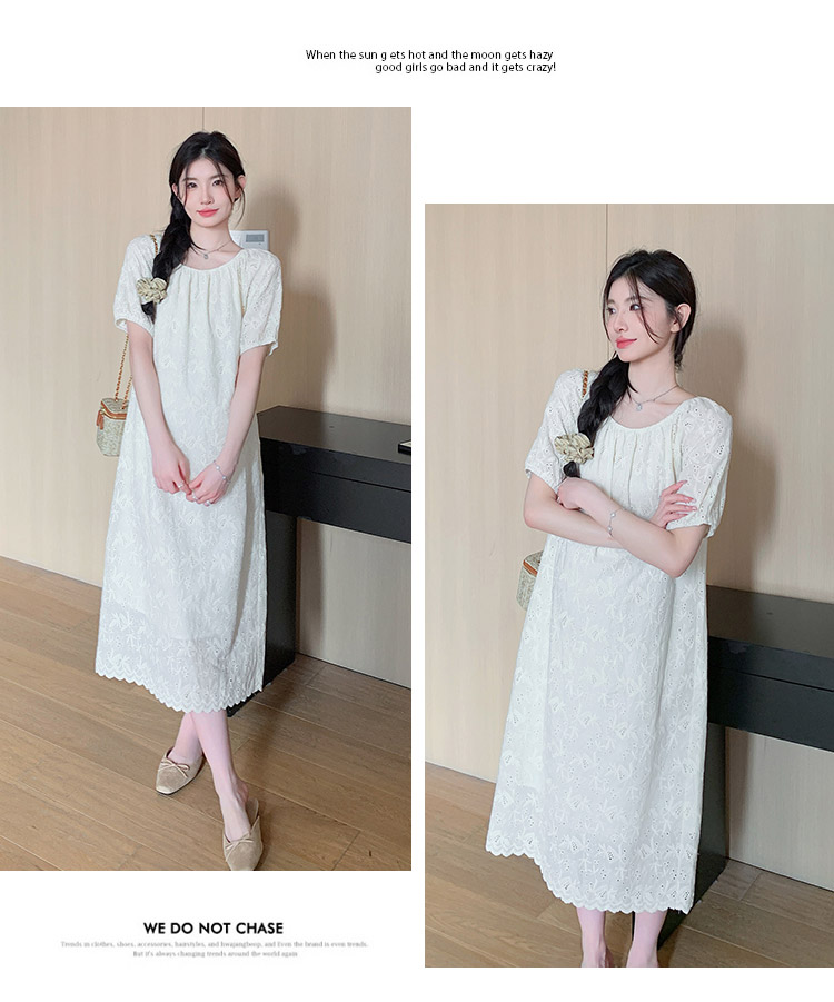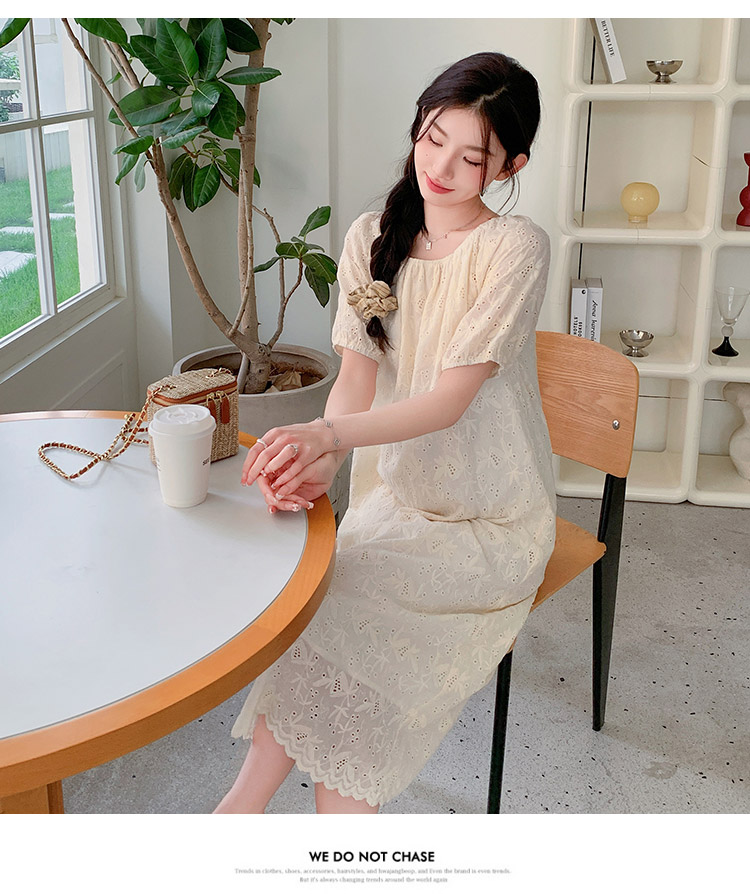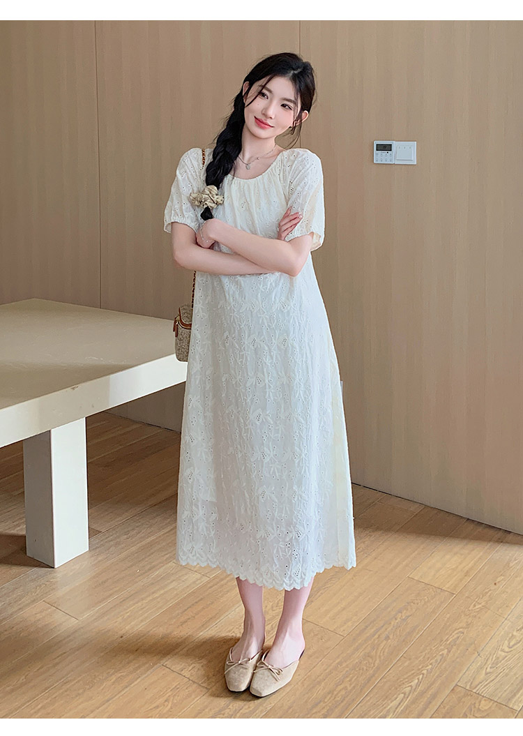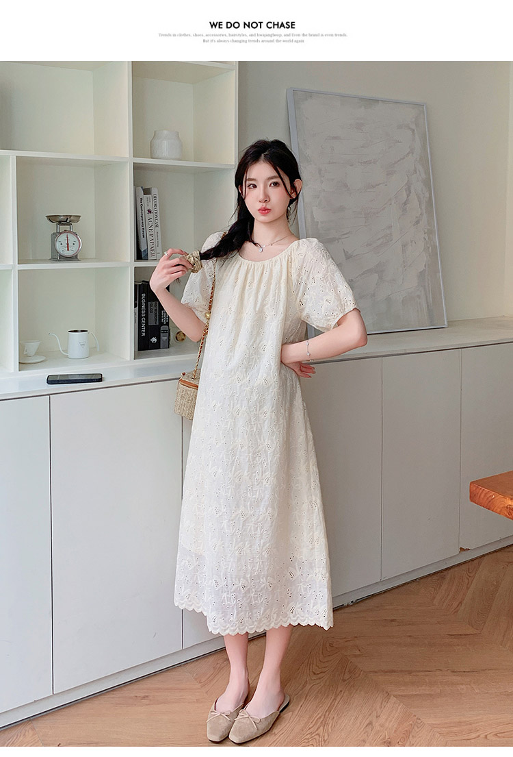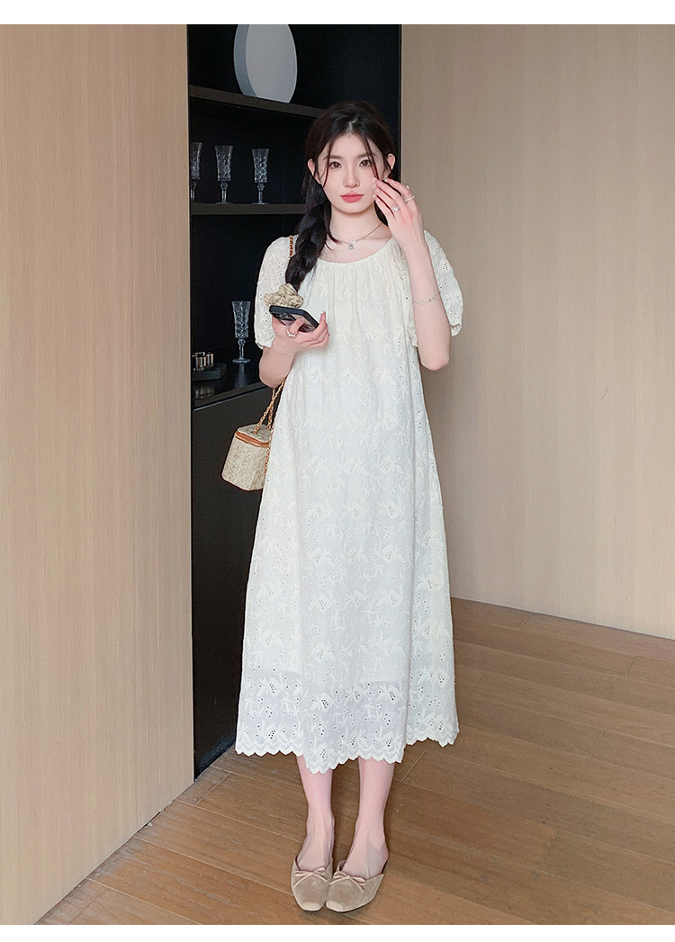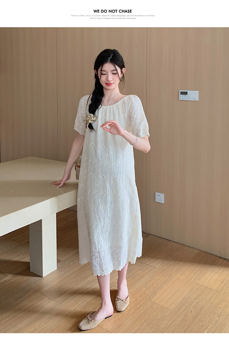임산부 여름 새로운 패션 거품 소매 자수 드레스 트렌디 엄마 고급 센스 루즈핏 요정 품격 롱 스커트