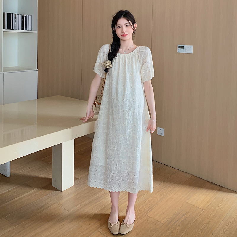 실사 임산부 여름 새로운 자수 드레스 트렌디 엄마 고급 센스 요정 연령 감소 품격 슬림해 보이는 롱 스커트