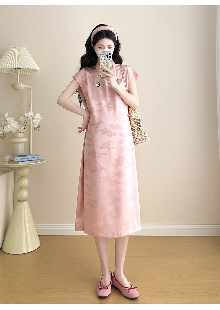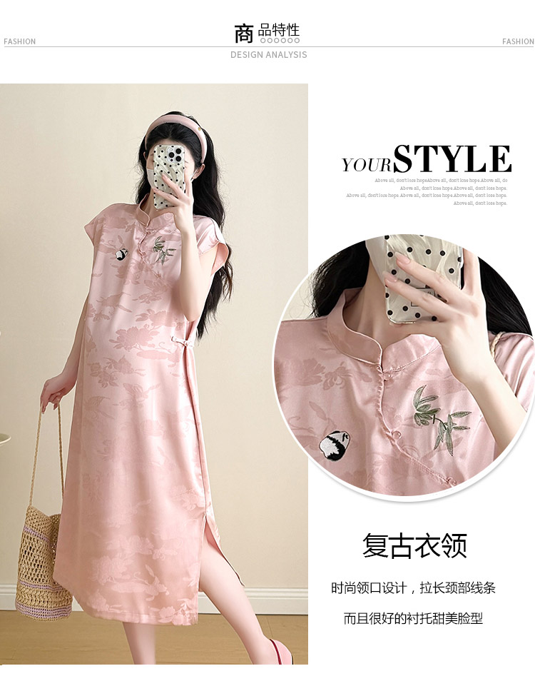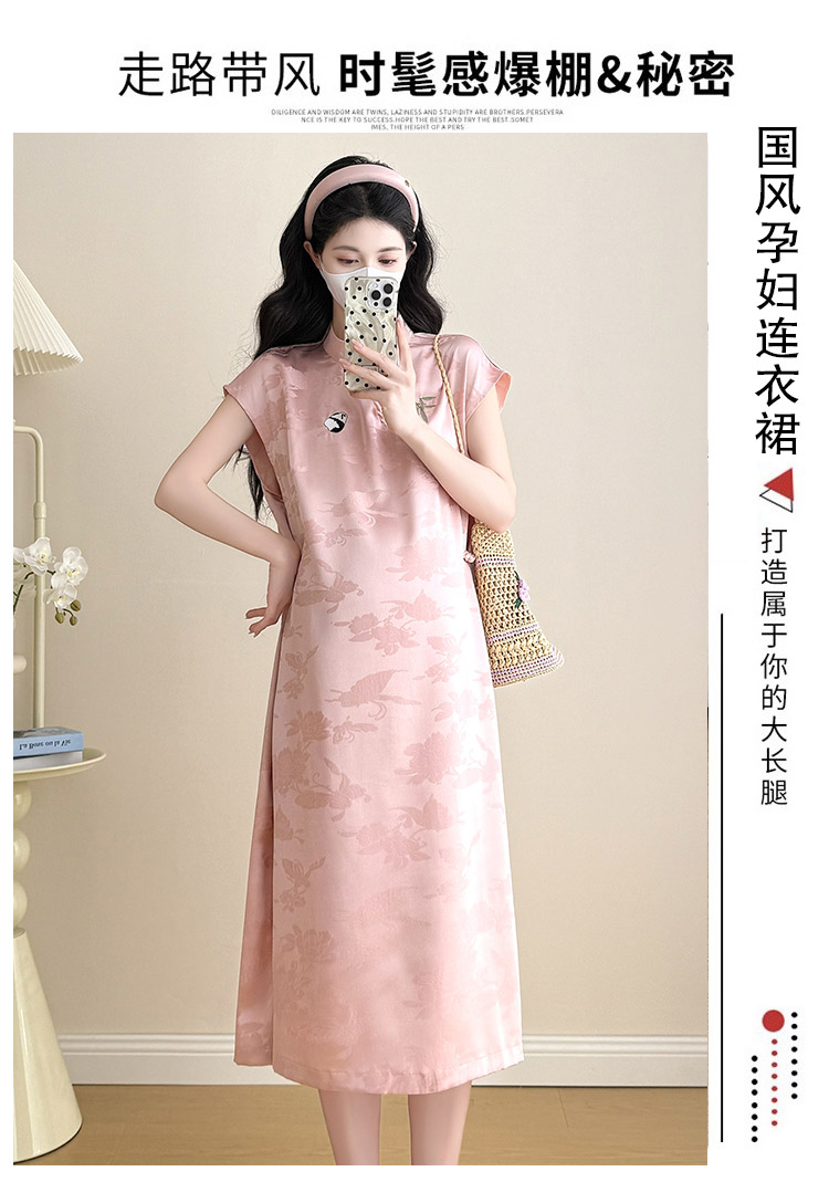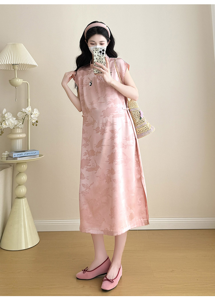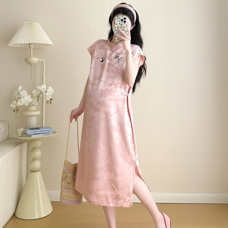 실사 임산부 여름 드레스 국풍 새로운 중식 드레스 트렌디 개선 루즈핏 슬림해 보이는 고급 센스 트임 치파오