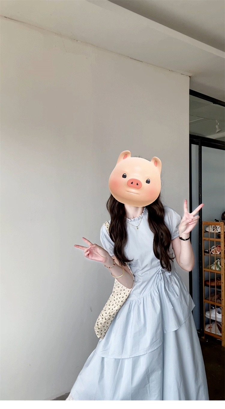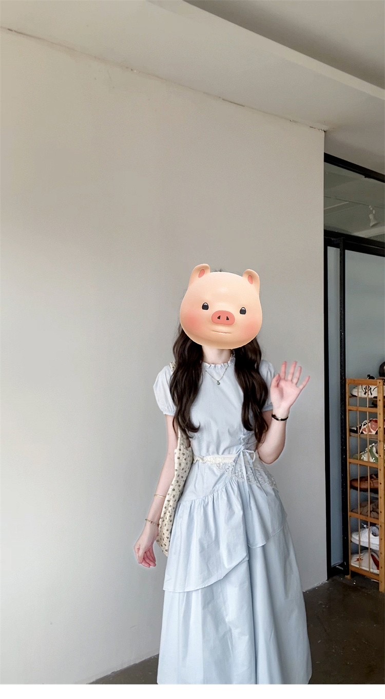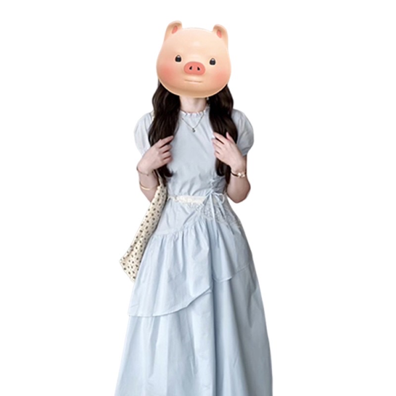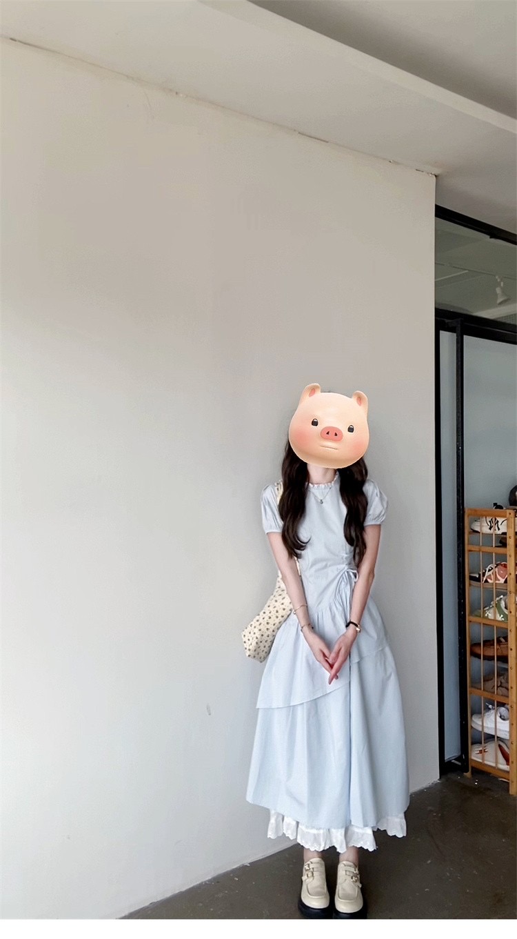 여름 2026 새로운 프랑스식 부드러운 바람 파란색 반팔 드레스 아이들 작은 키 불규칙 품격 롱 스커트