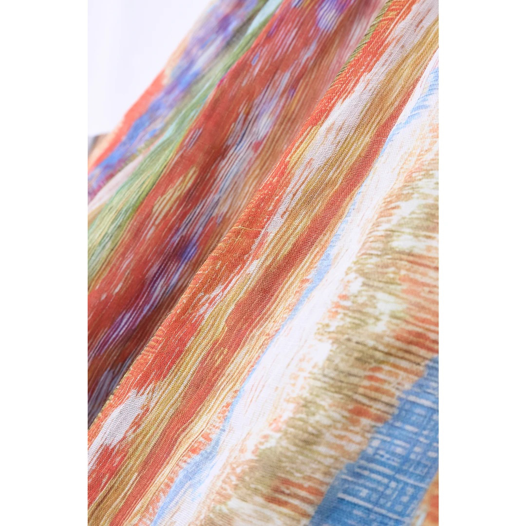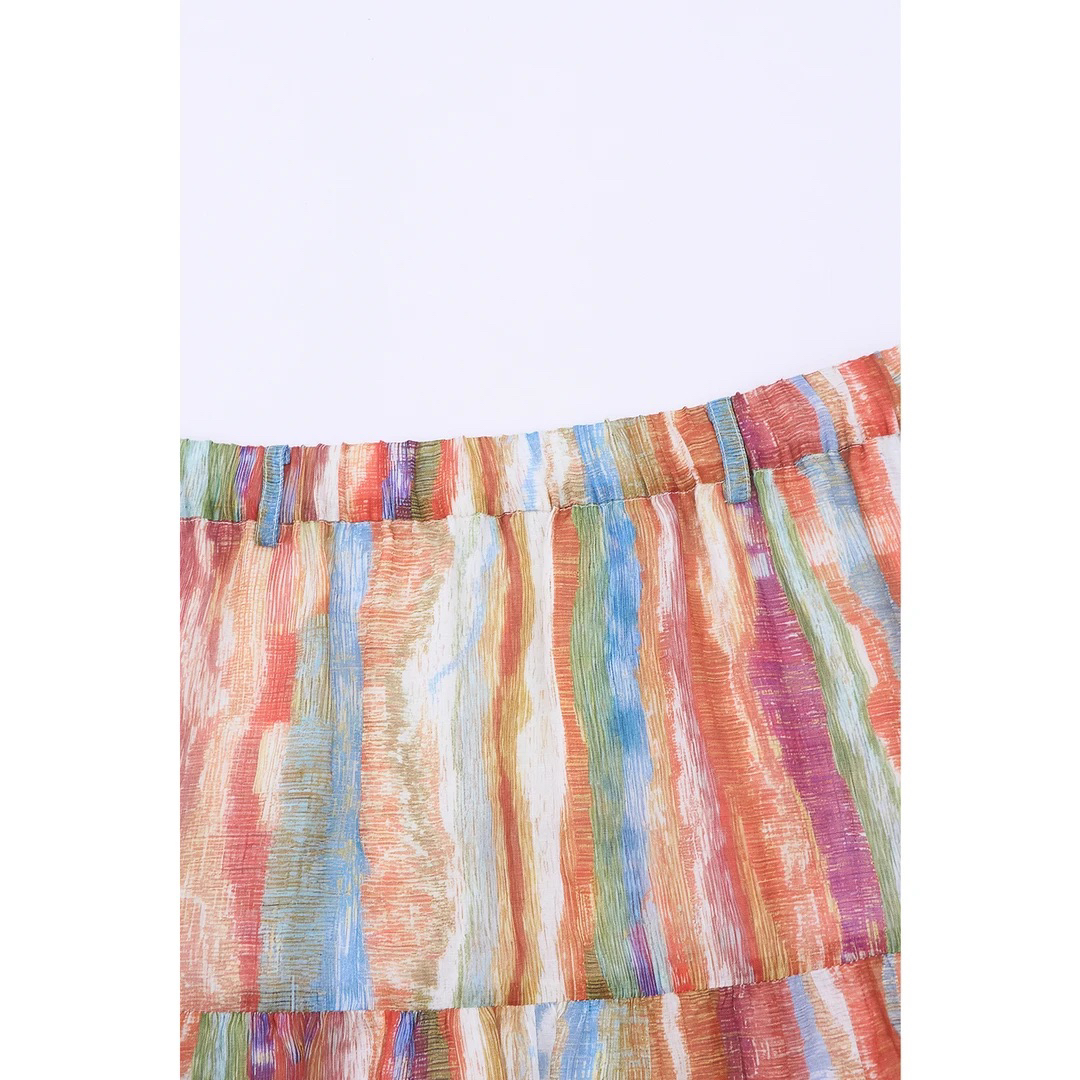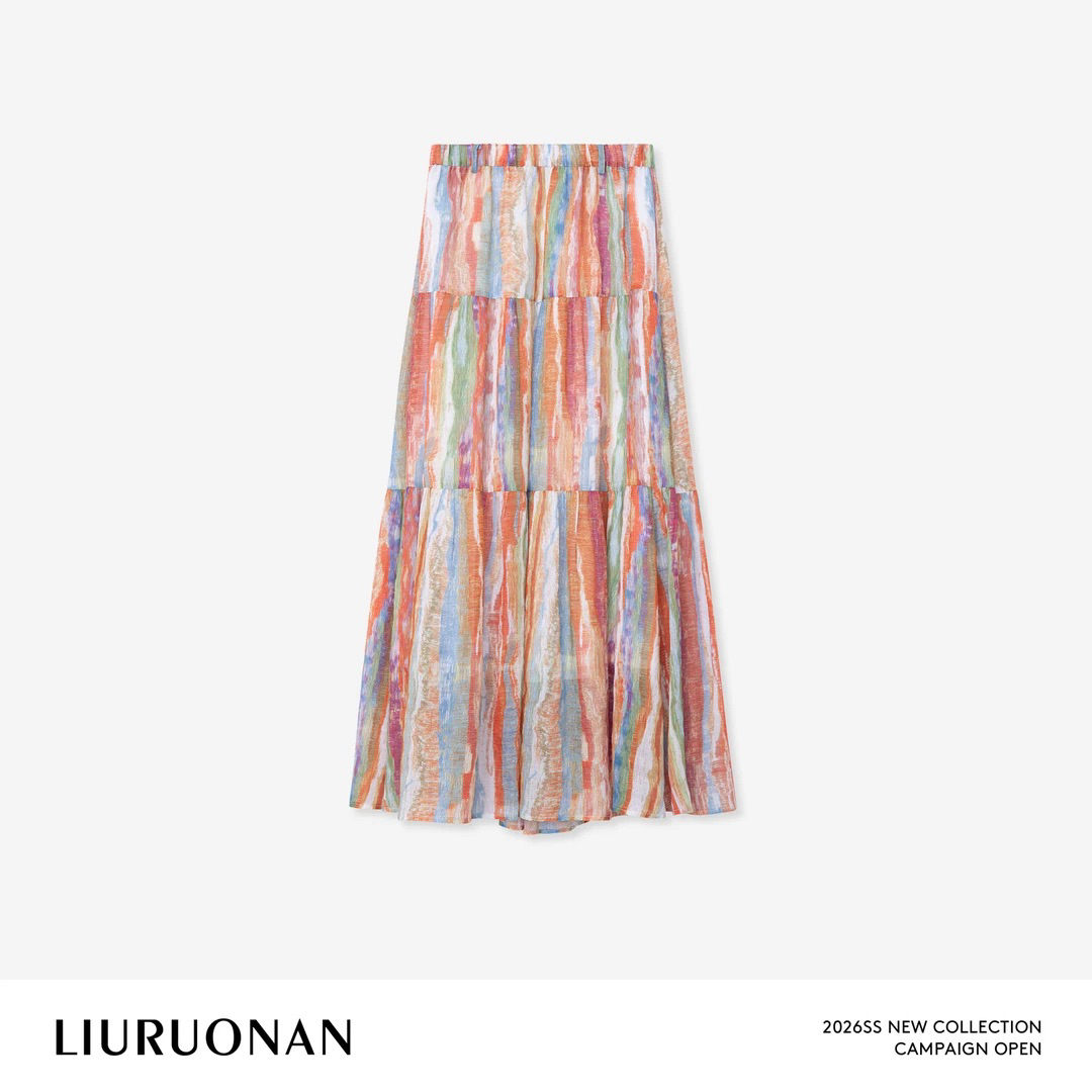 liuruonan 무지개 섬 도파민 수채화 물감 스트라이프 휴가 반신 스커트 봄 여름 루즈핏 얇은 스타일 롱 스커트