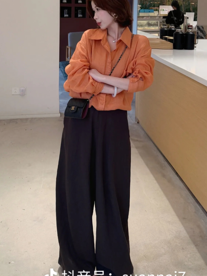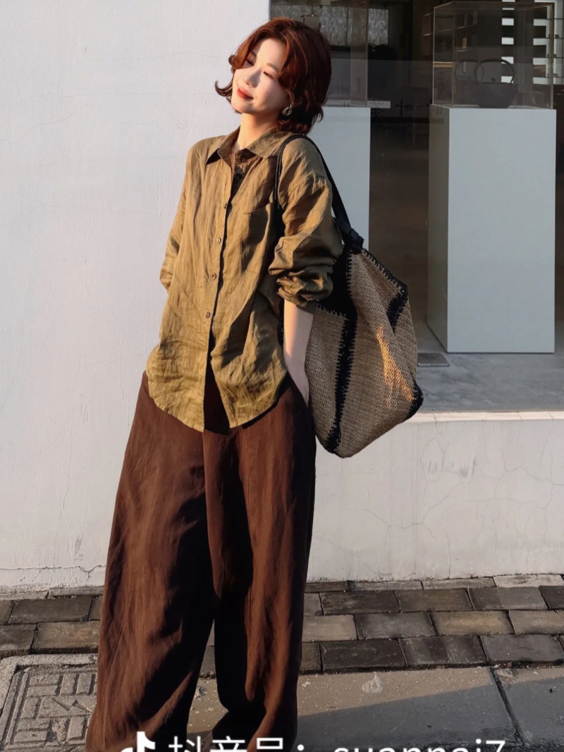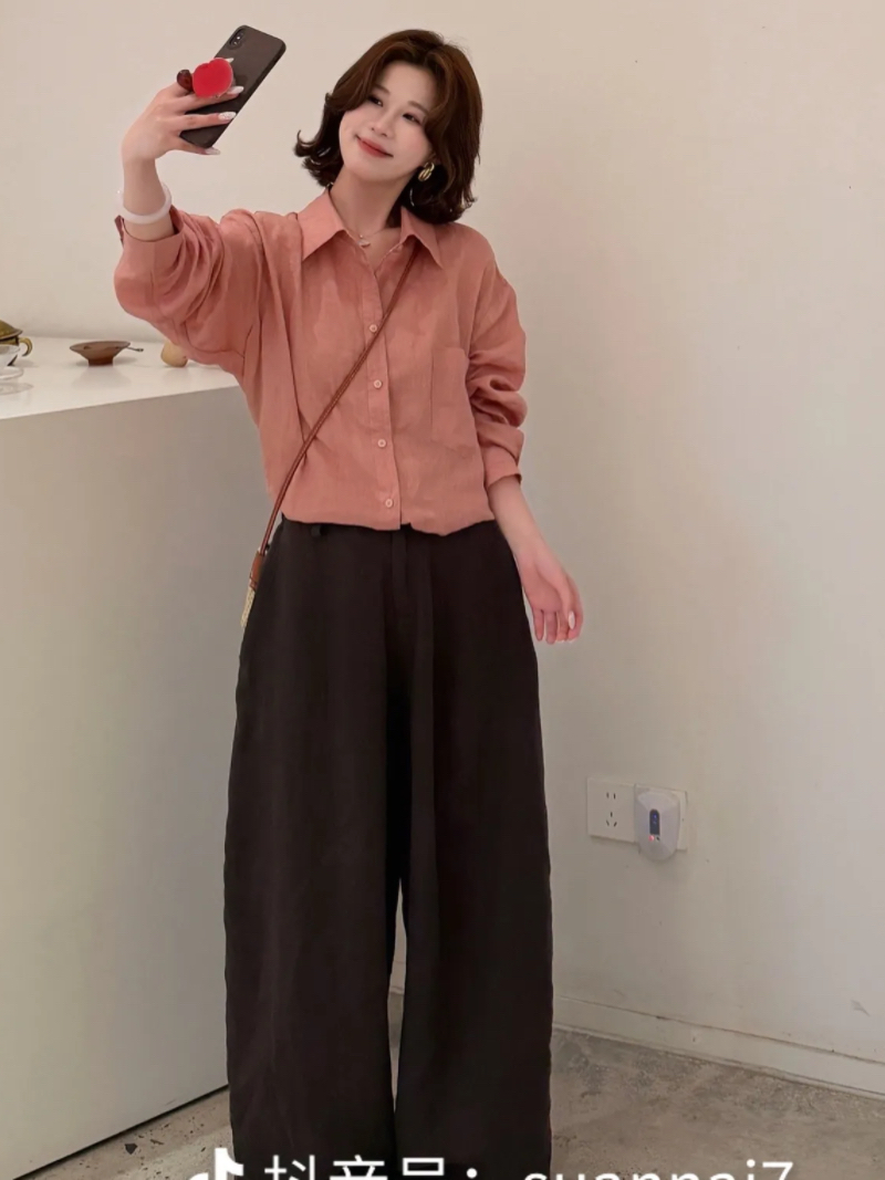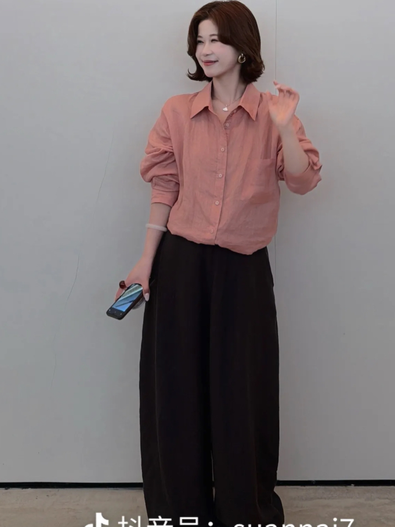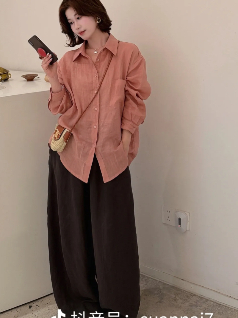 한 세대 라미 높음 포화 상태 신선함 단색 셔츠 느긋한 품격 캐주얼 자외선 차단 재킷 맨위 10 바지