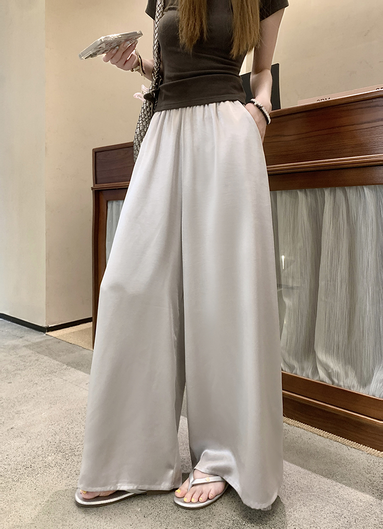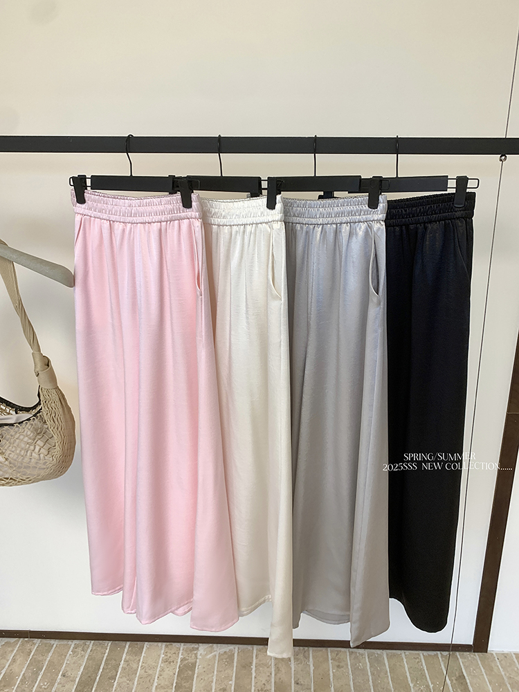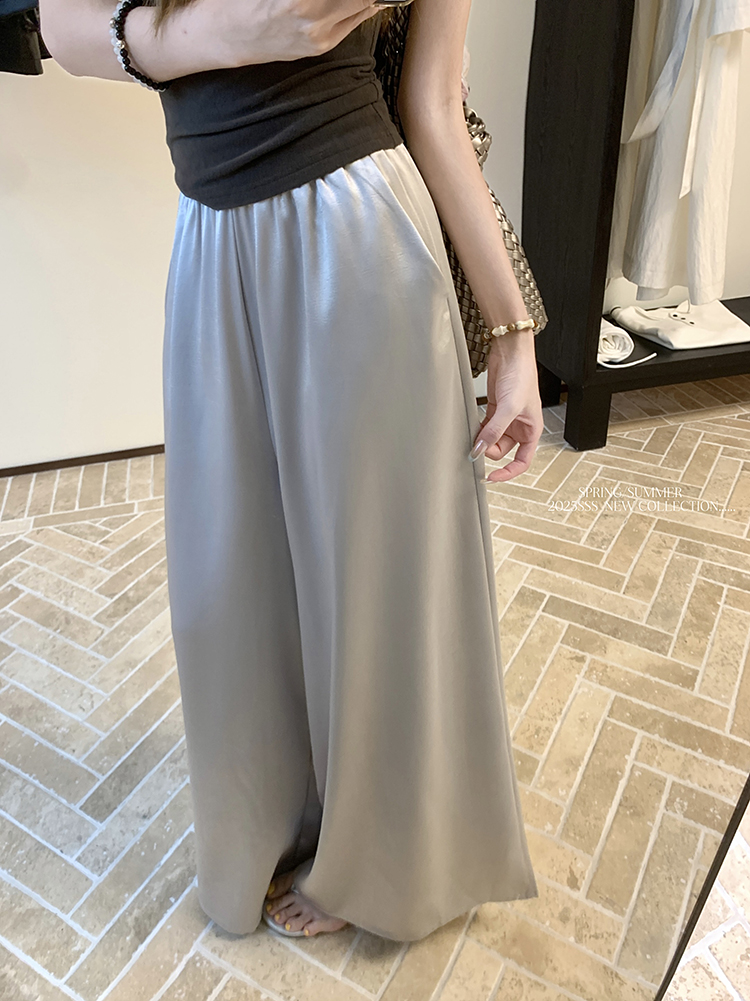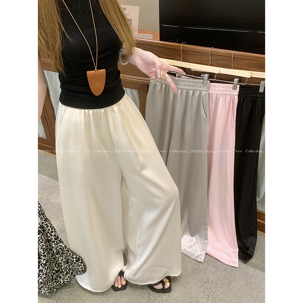 실사 2026 여름 새로운 패션 고급 센스 단색 실크 미끄러짐 새틴 도루 센스 캐주얼 넓은 다리 캐주얼 여성