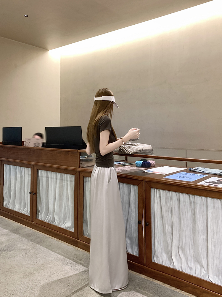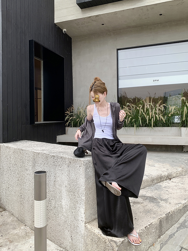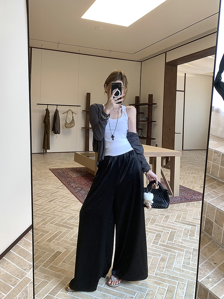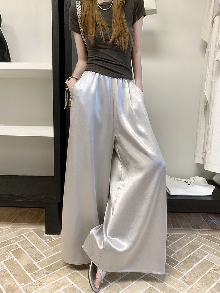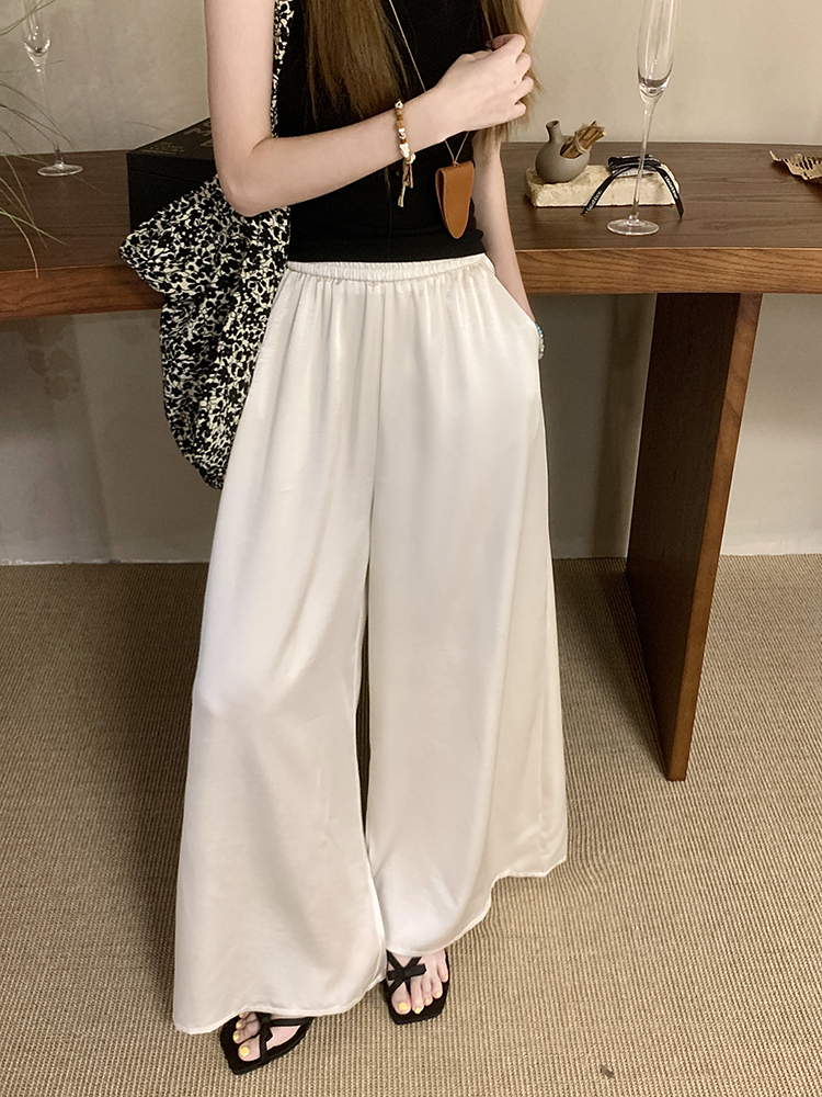 실사 2026 여름 새로운 패션 고급 센스 단색 실크 미끄러짐 새틴 도루 센스 캐주얼 넓은 다리 캐주얼 여성
