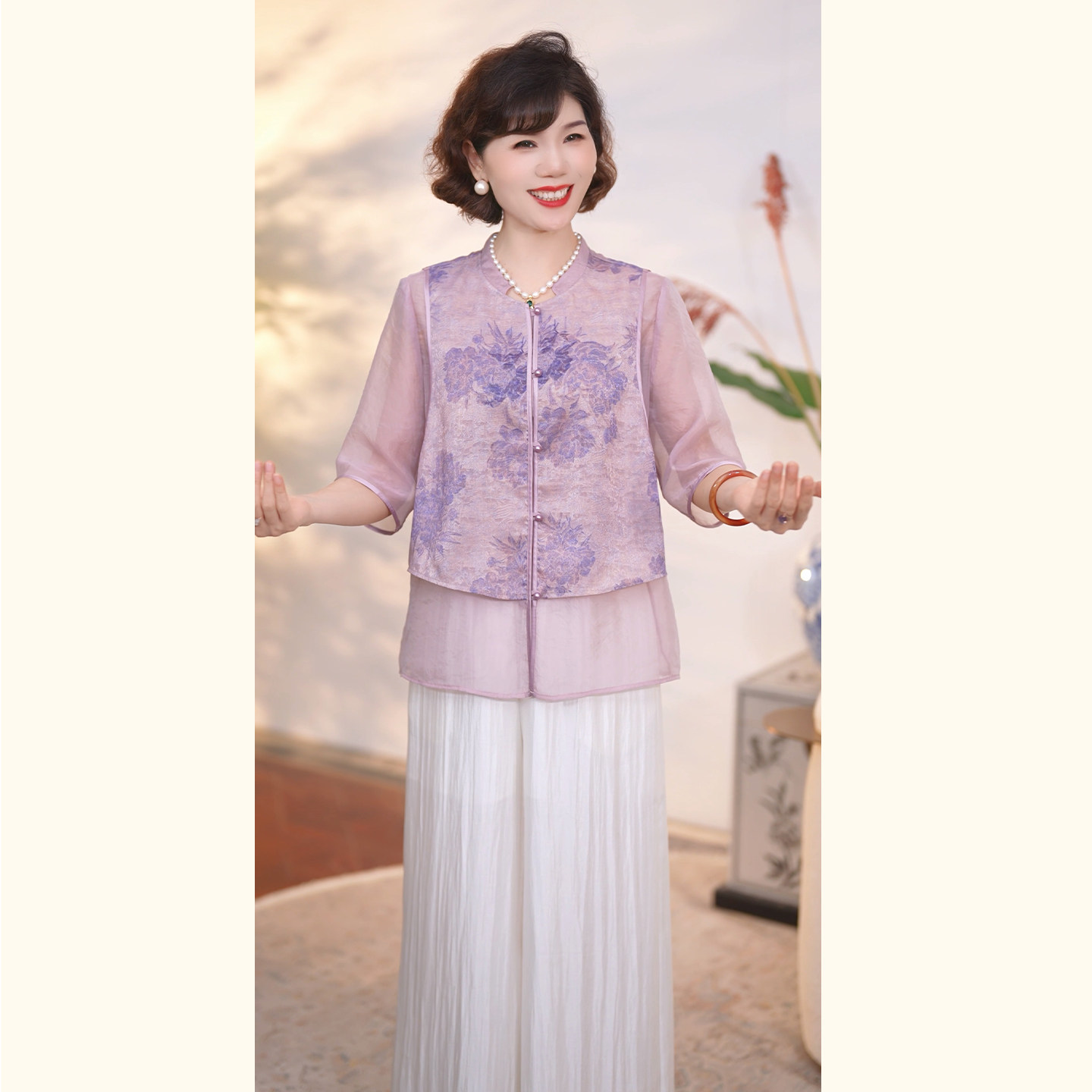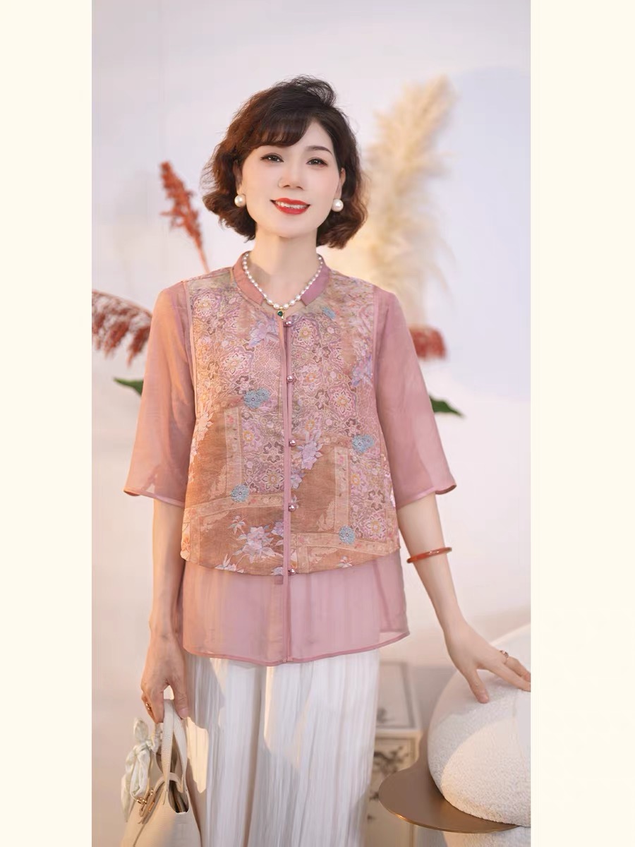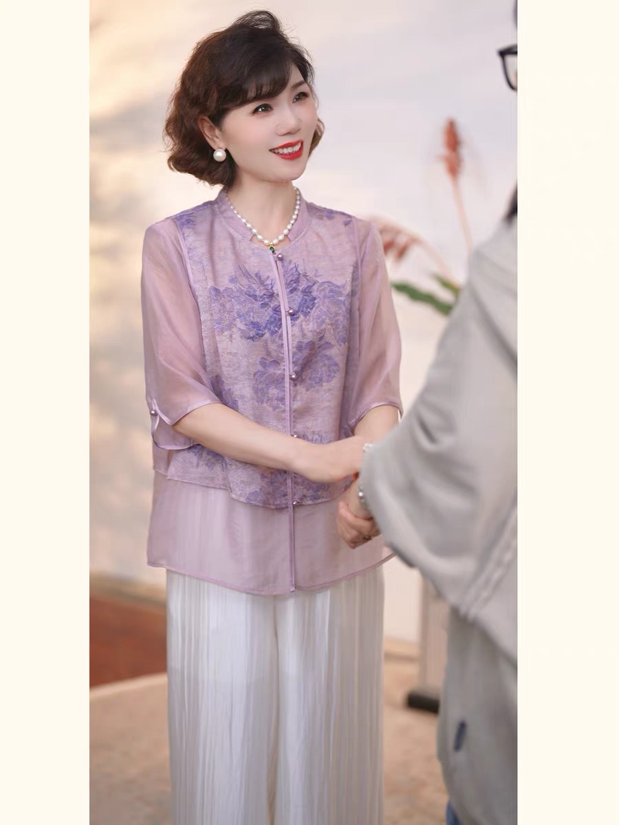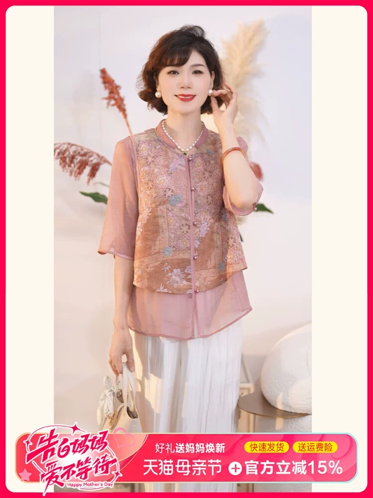 어머니의 날 옷 새로운 중식 엄마 여름 드레스 국풍 셔츠 세트 2026 새로운 외국 가스 비싼 레이디 투피스 세트
