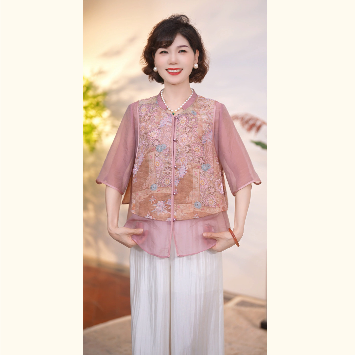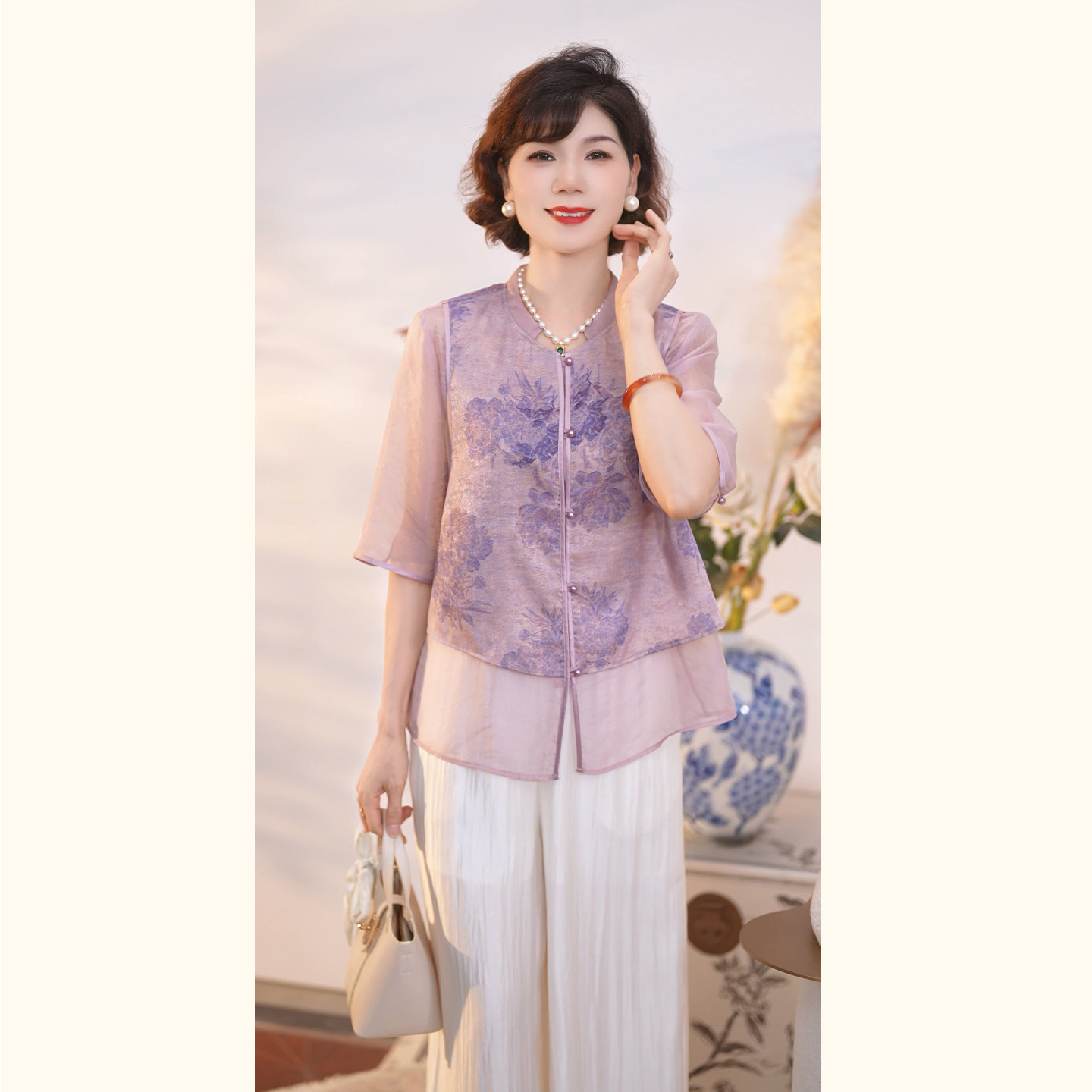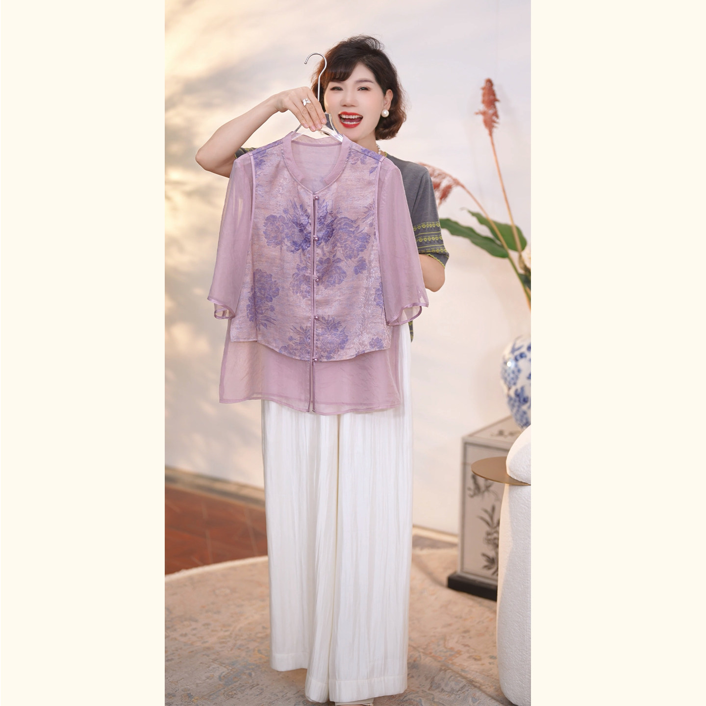 어머니의 날 옷 새로운 중식 엄마 여름 드레스 국풍 셔츠 세트 2026 새로운 외국 가스 비싼 레이디 투피스 세트