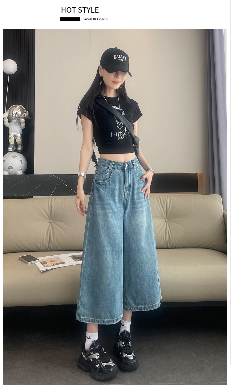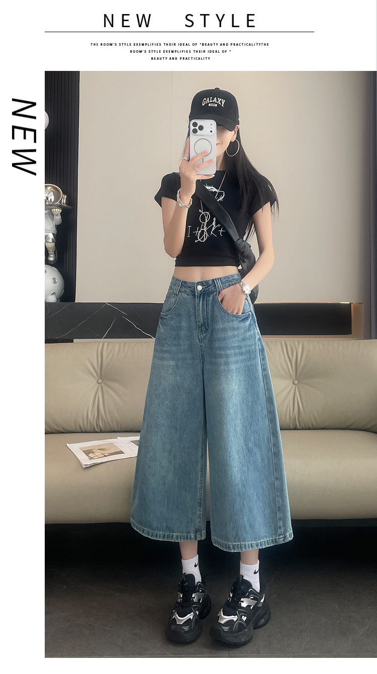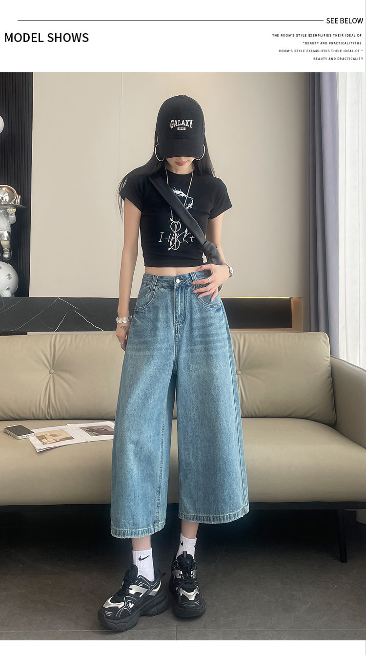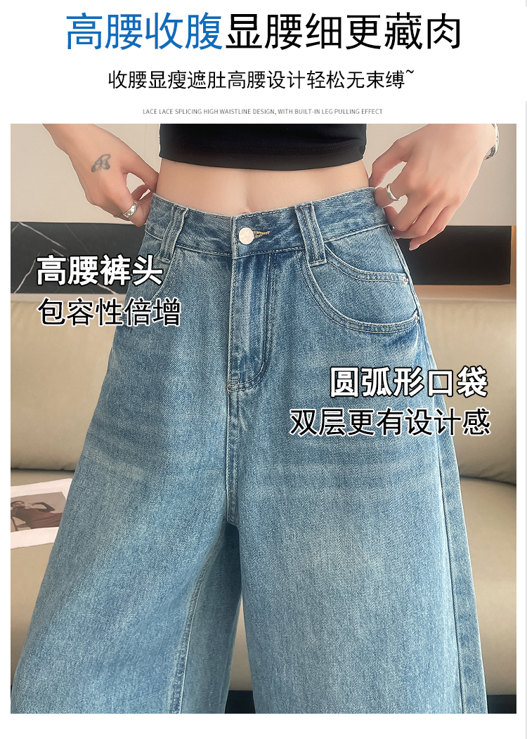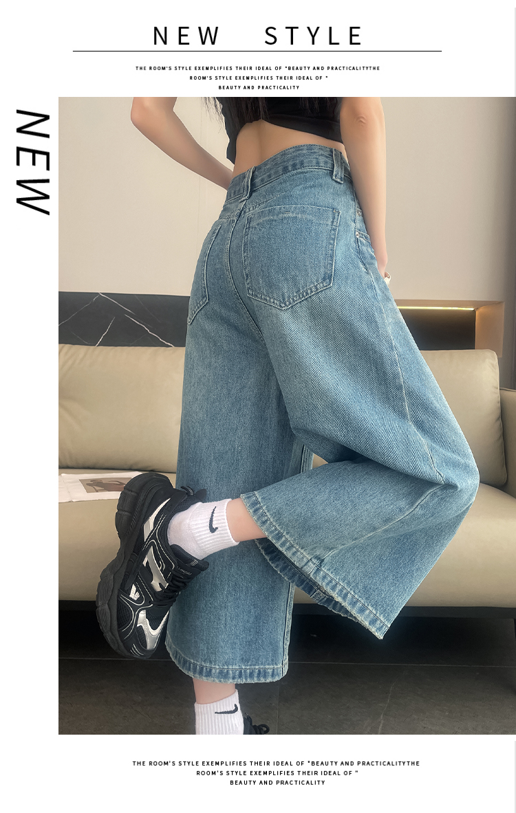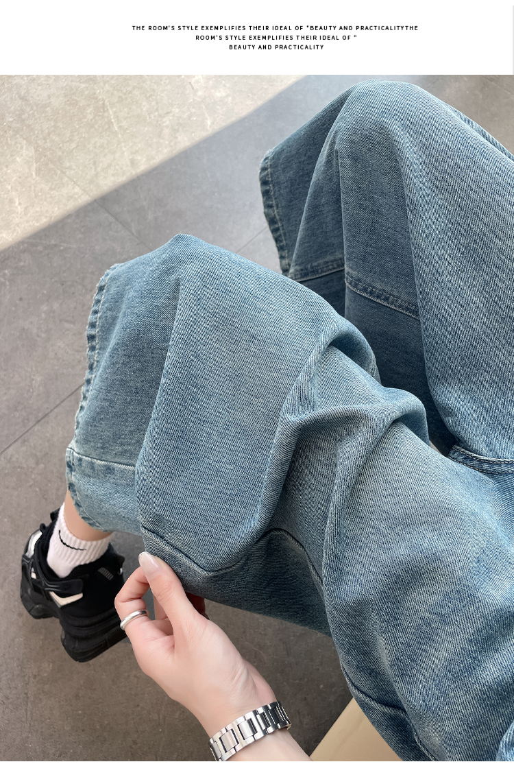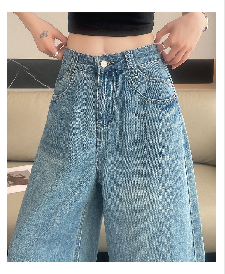 실사 아메리칸 레트로 워싱 넓은 다리 8 점 청바지 여성 새로운 하이웨이스트 슬림해 보이는 한 마디 스트레이트 8 점 바지