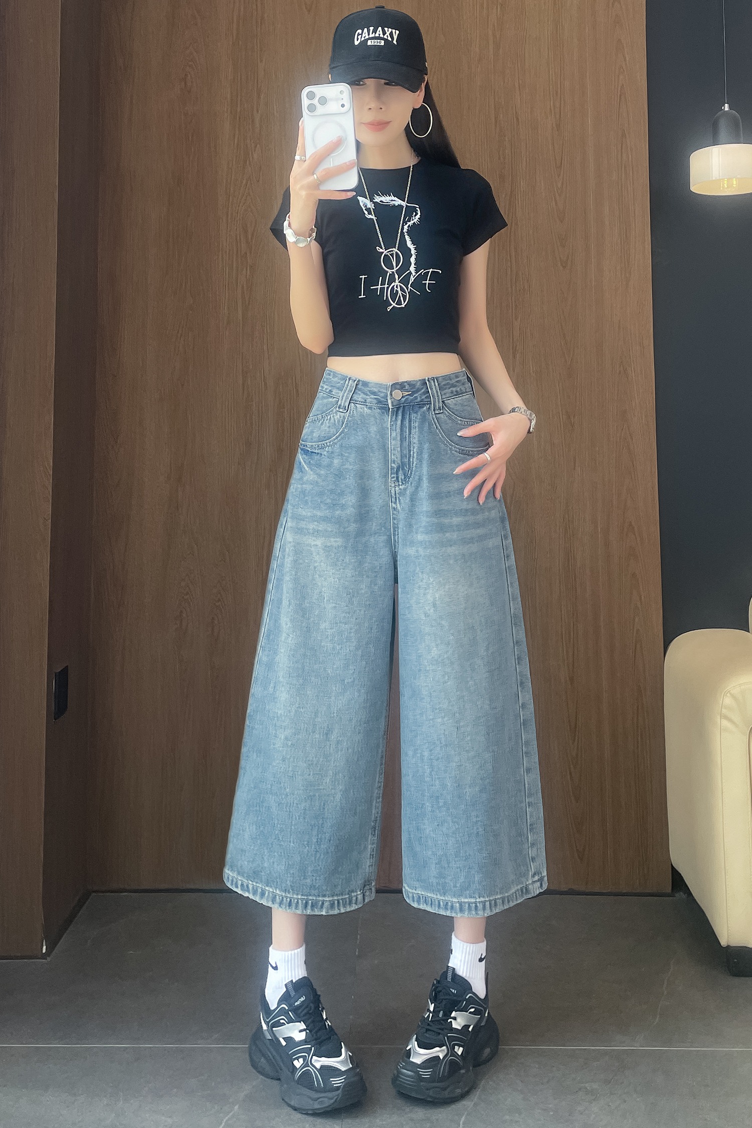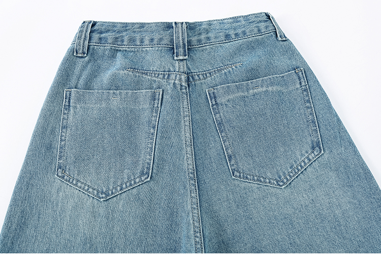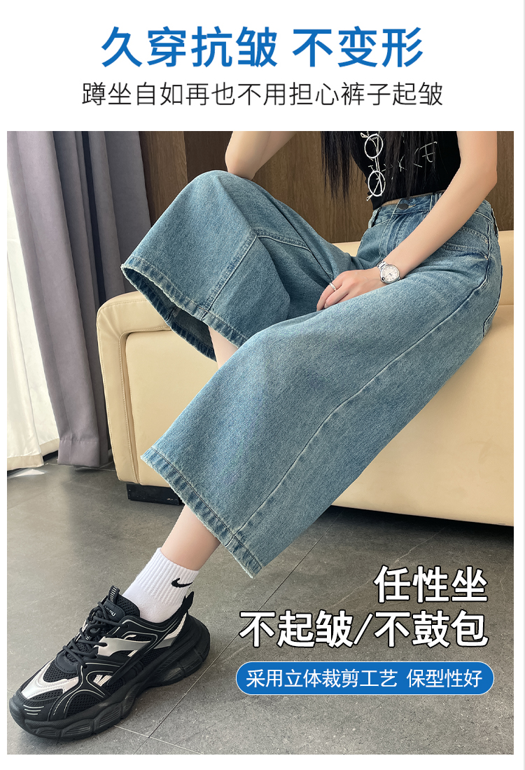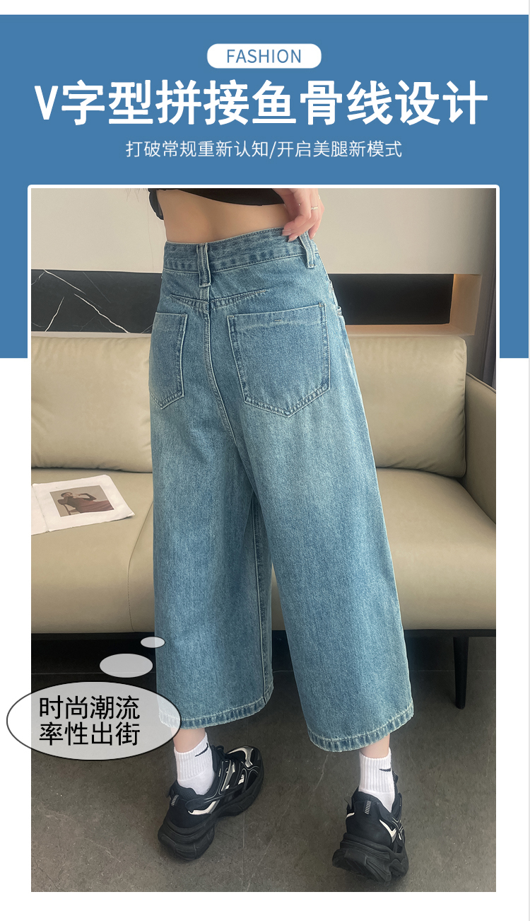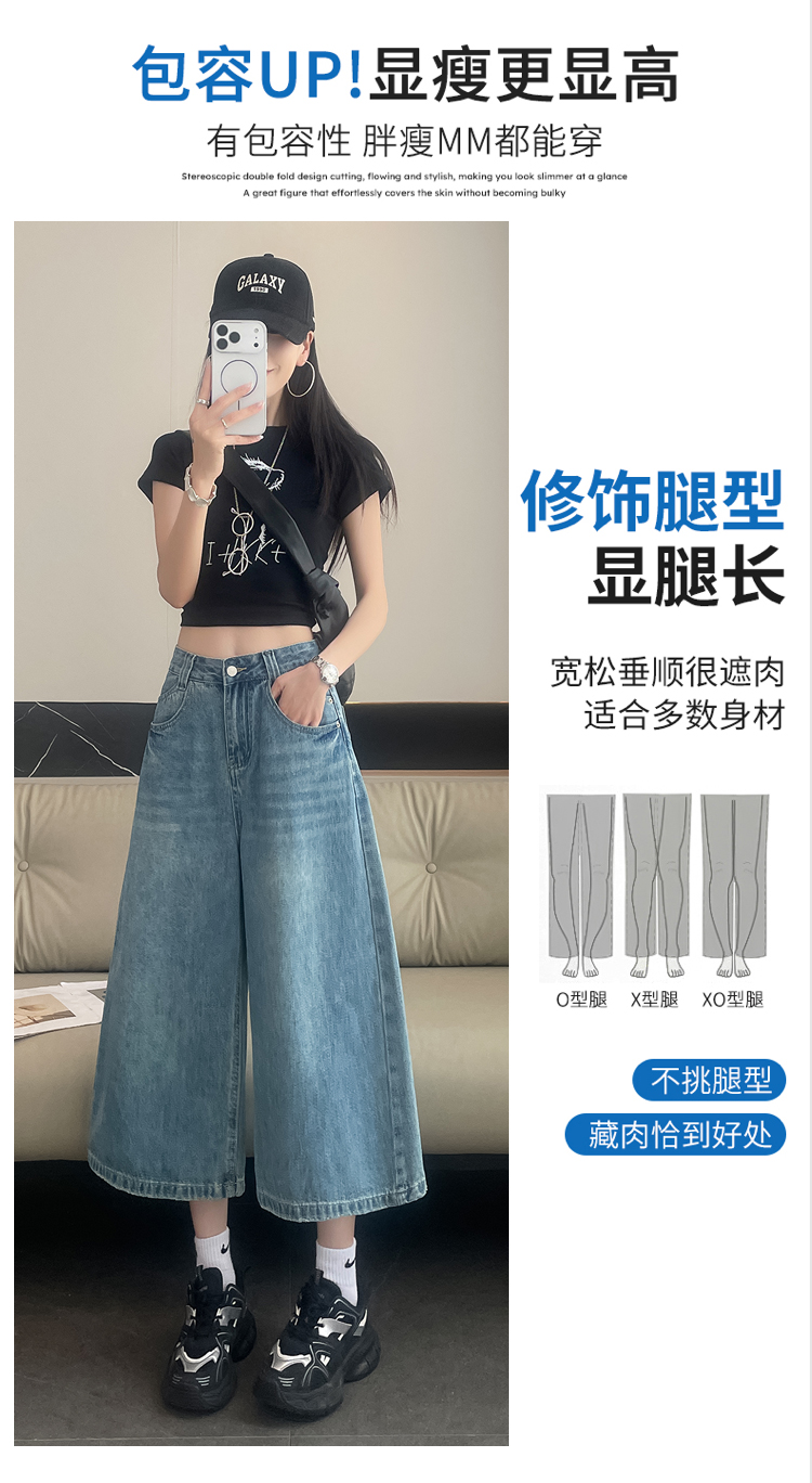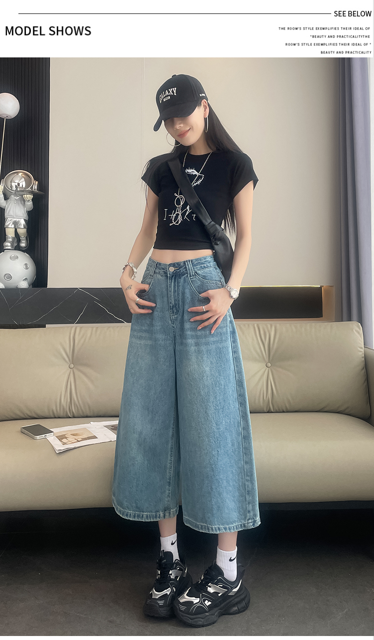 실사 아메리칸 레트로 워싱 넓은 다리 8 점 청바지 여성 새로운 하이웨이스트 슬림해 보이는 한 마디 스트레이트 8 점 바지
