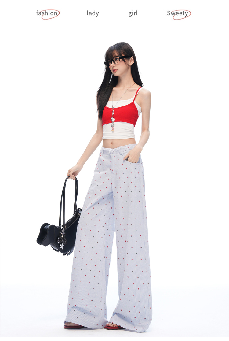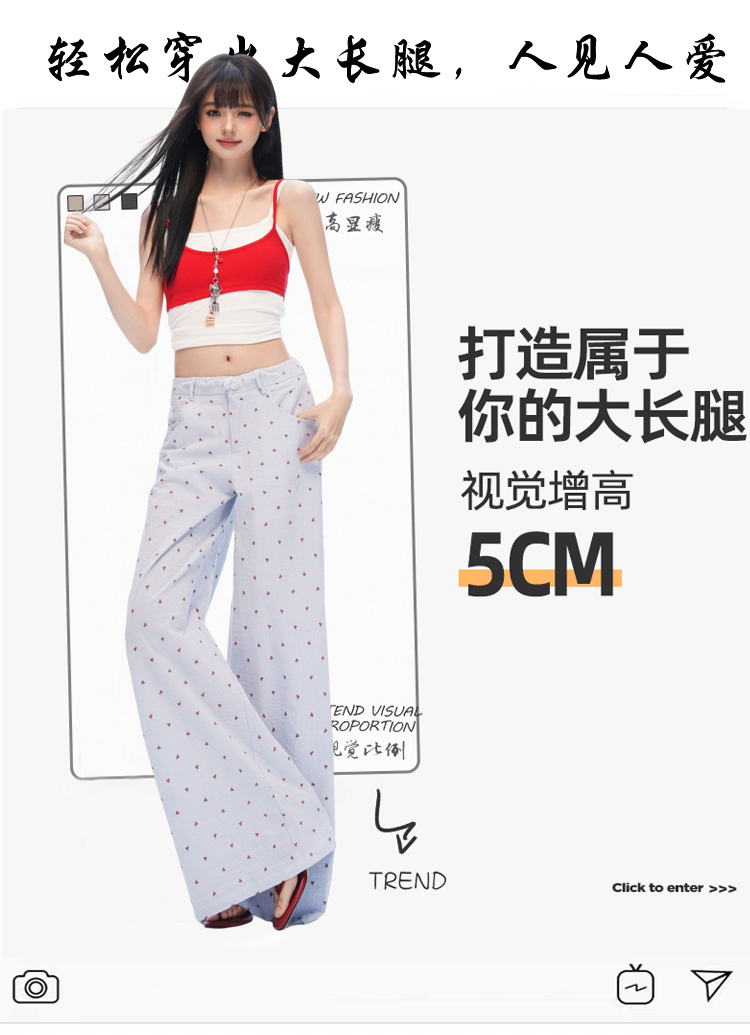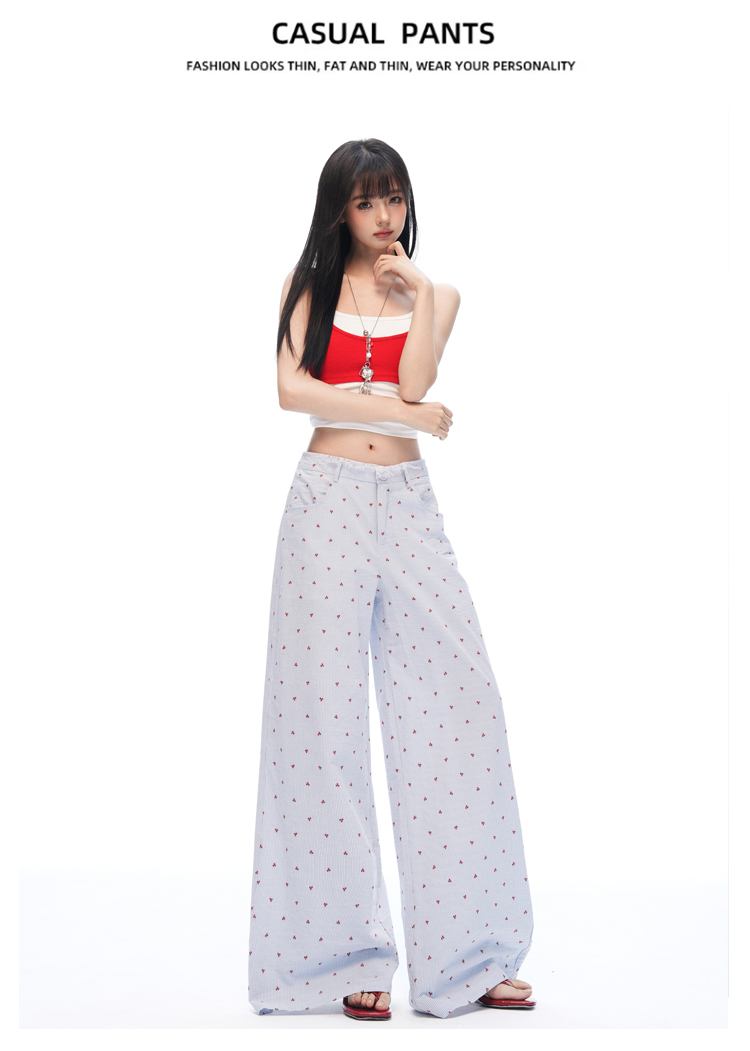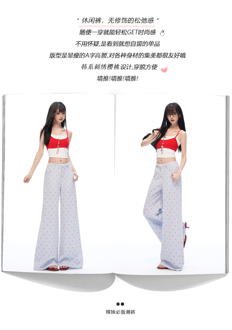 실사 새로운 아메리칸 디자인 센스 작은 키 캐주얼 여름 부드러운 얇은 분할선 루즈핏 와이드 레그 팬츠
