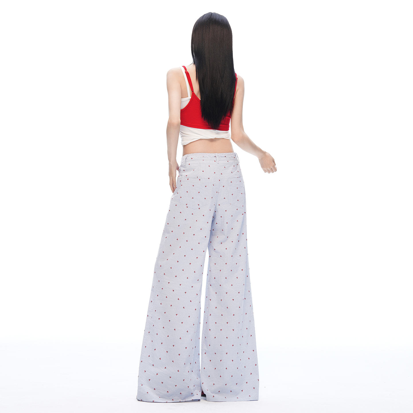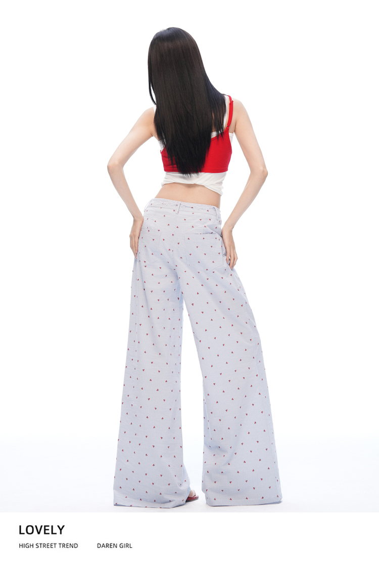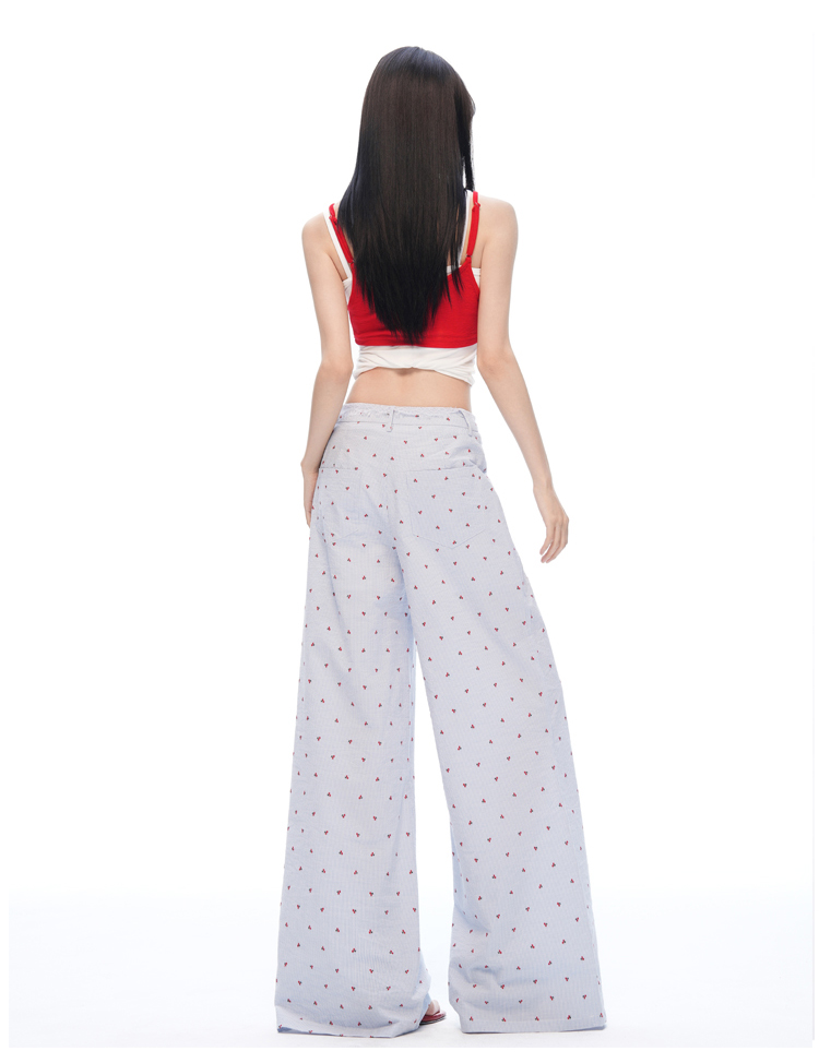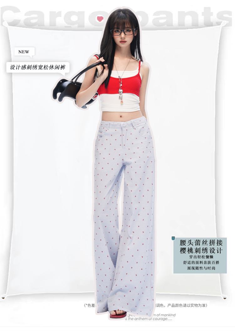 실사 새로운 아메리칸 디자인 센스 작은 키 캐주얼 여름 부드러운 얇은 분할선 루즈핏 와이드 레그 팬츠