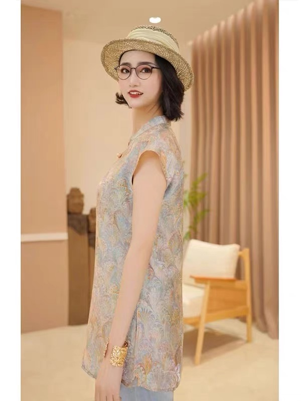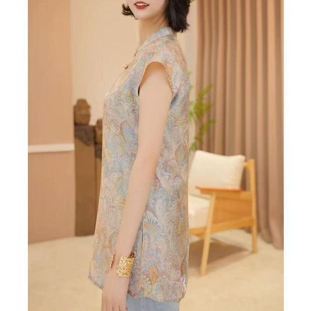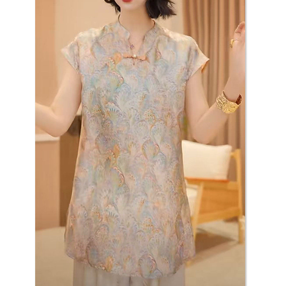 칭다이 새로운 중식 스탠드 칼라 비스듬한 襟 맨위 2026 여름 얇고 가벼운 통기성 편안한 맨위 작은 셔츠