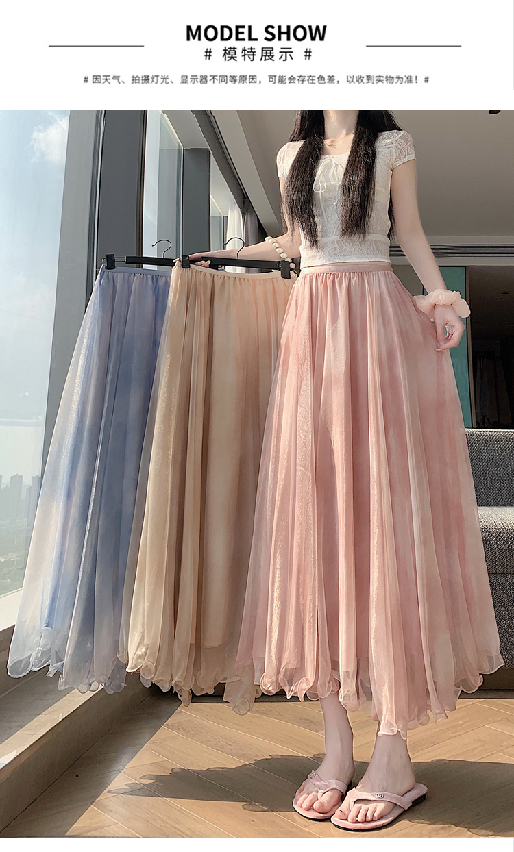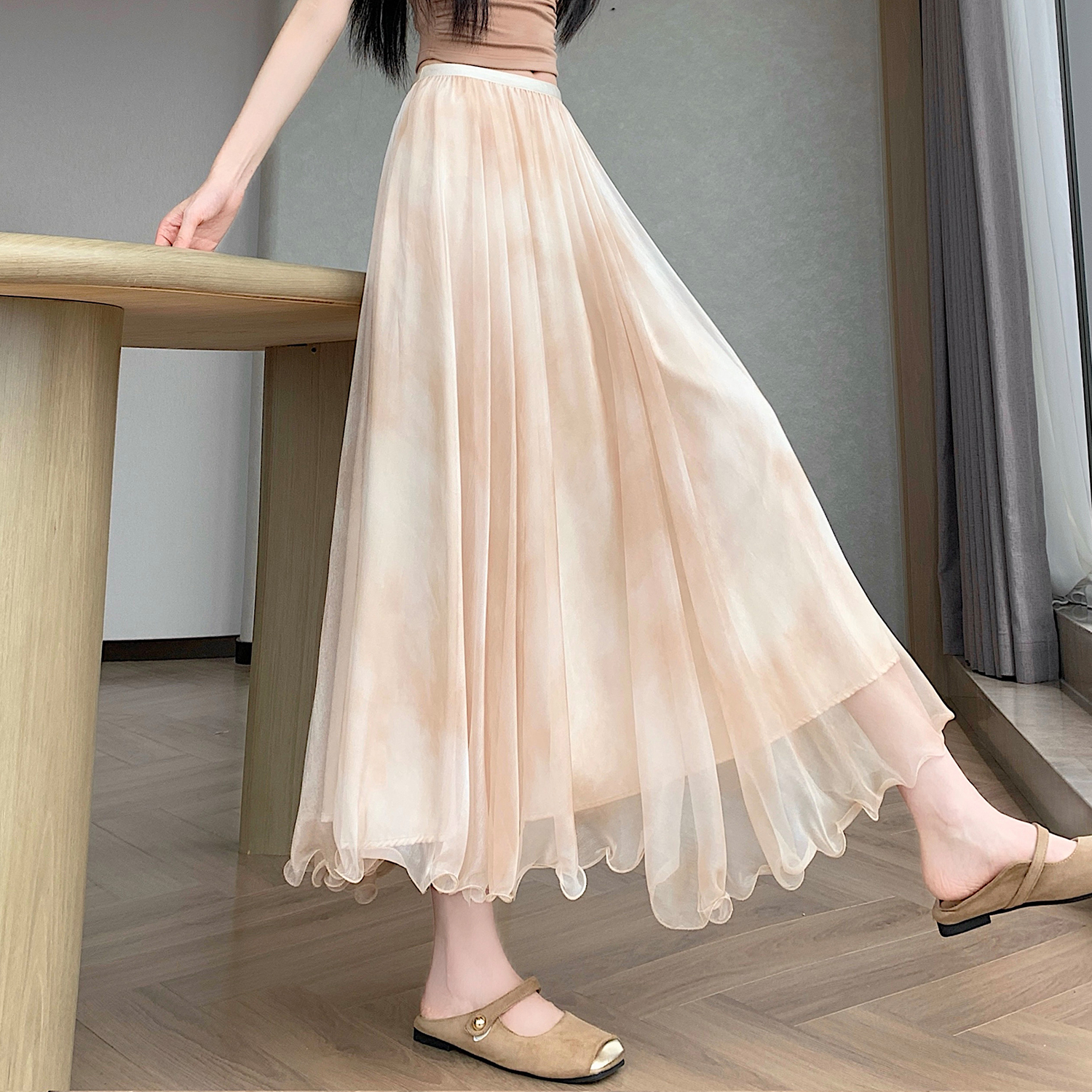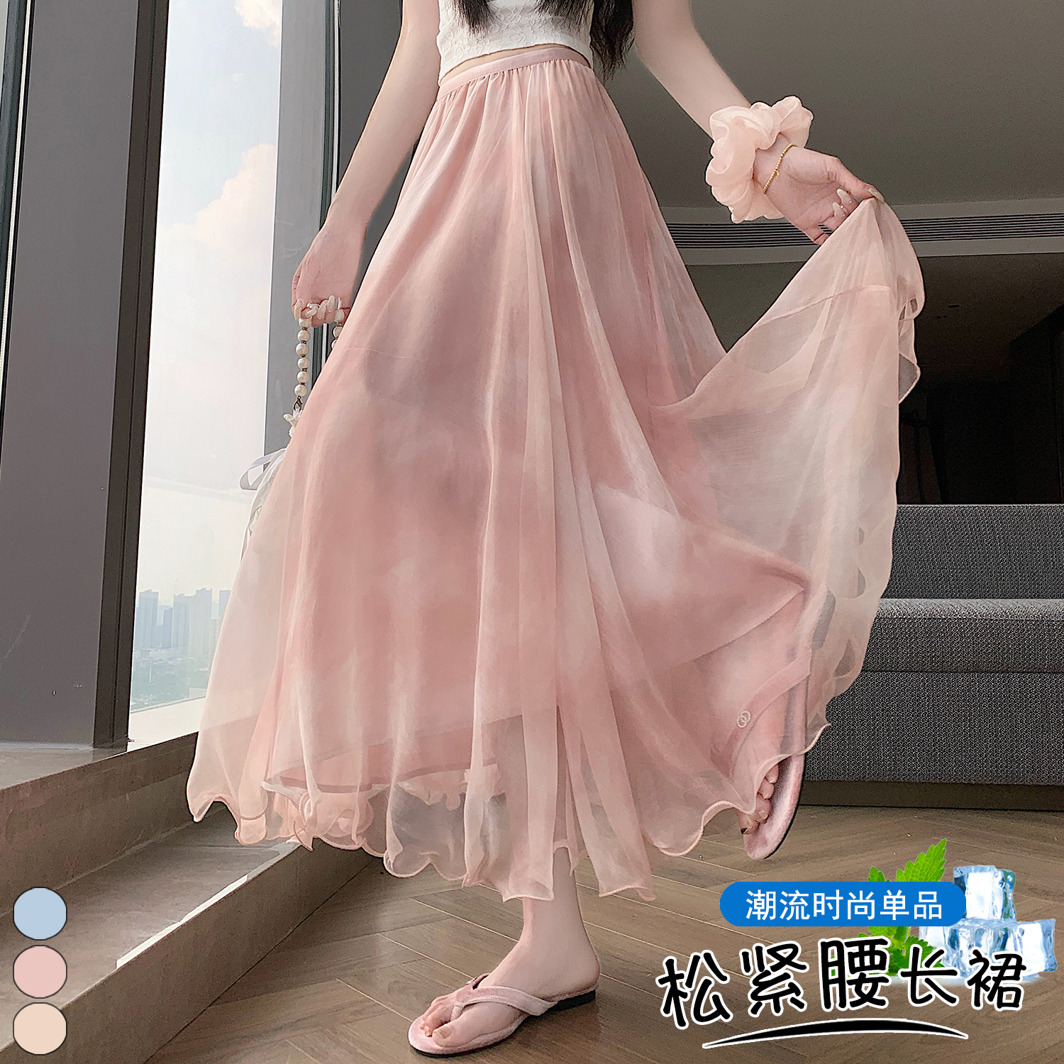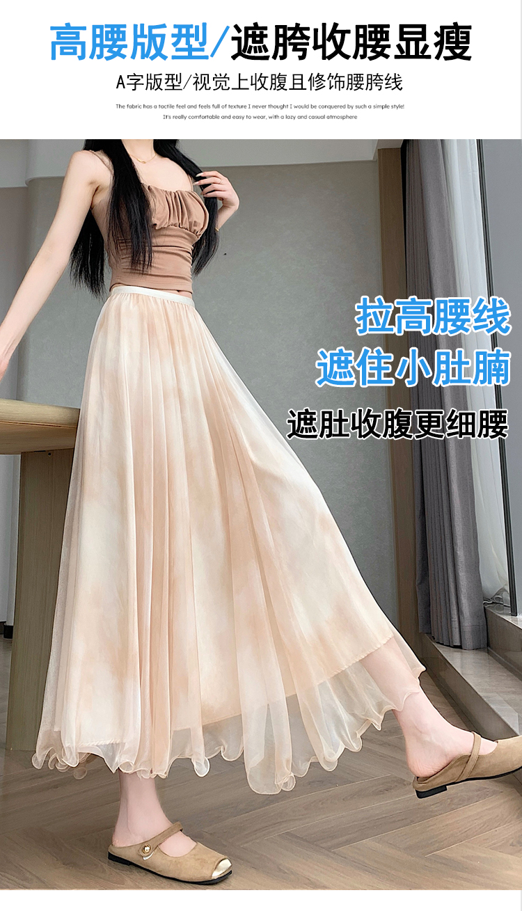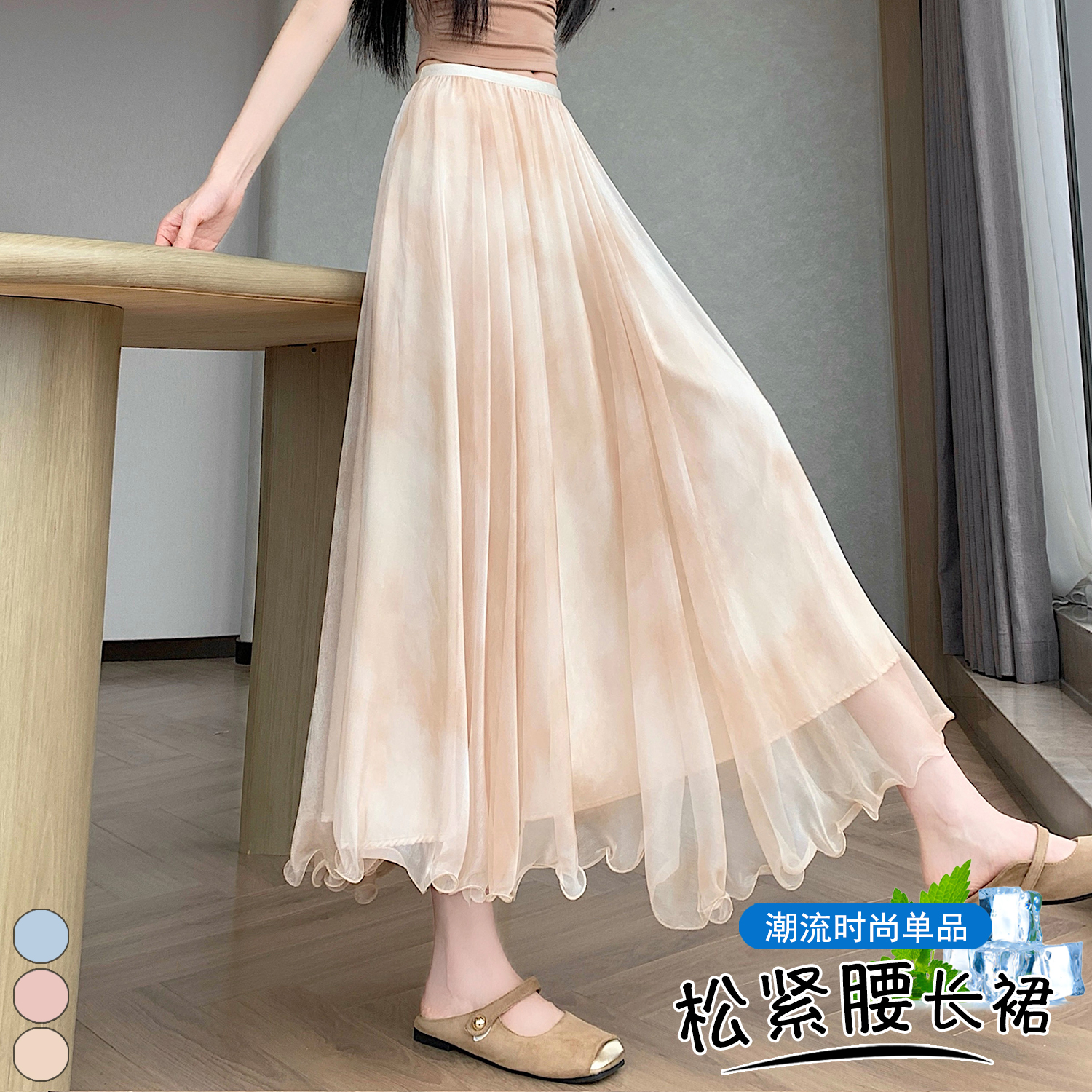 실사 프랑스식 헤일로 염색 깃발 실 롱 스커트 여성 여름 새로운 루즈핏 슬림해 보이는 반신 스커트 도루 가을 센스 플리츠 한 마디